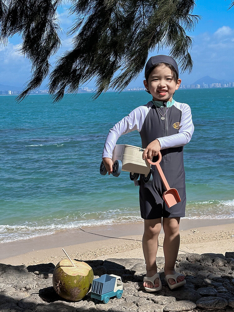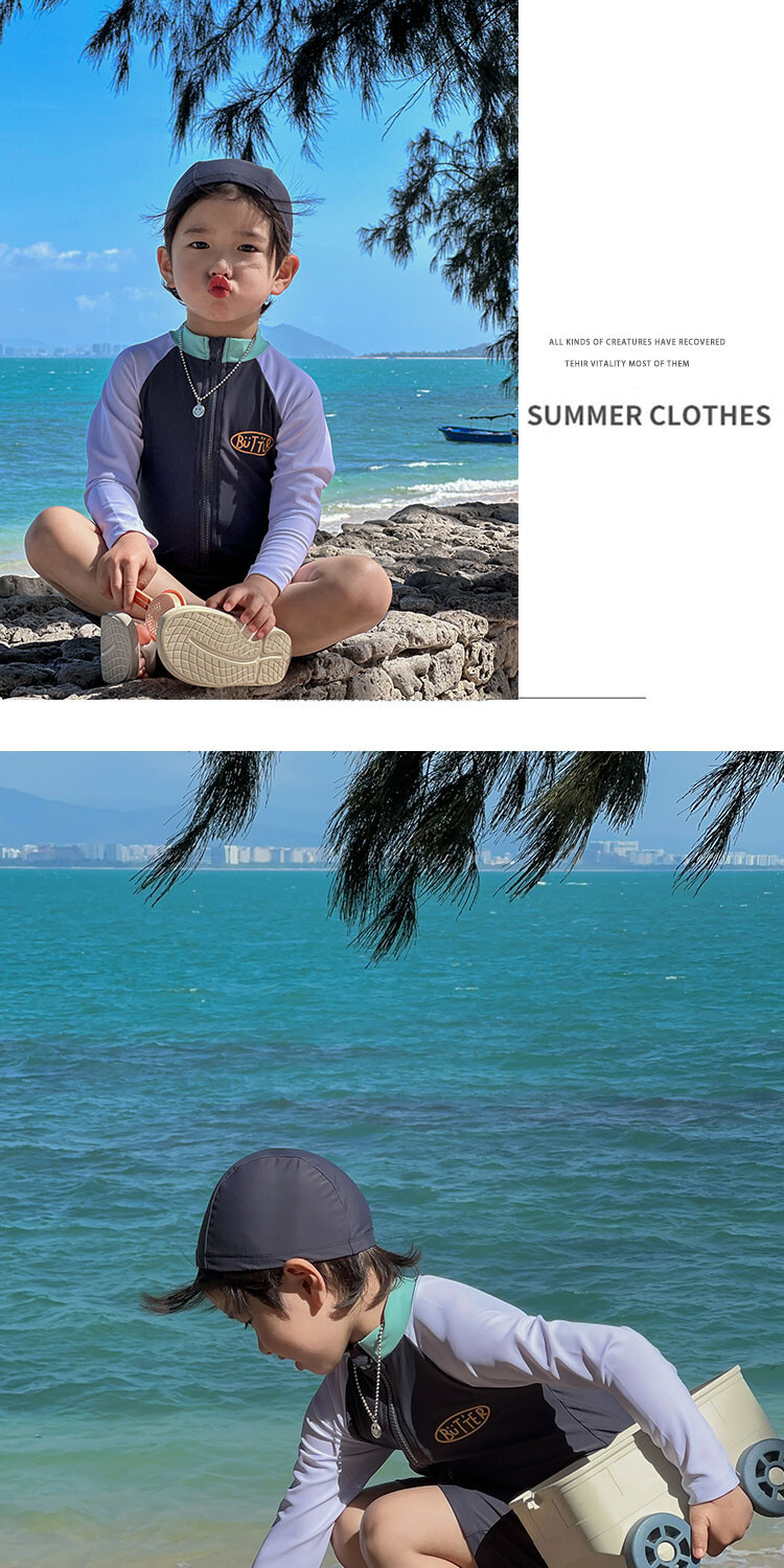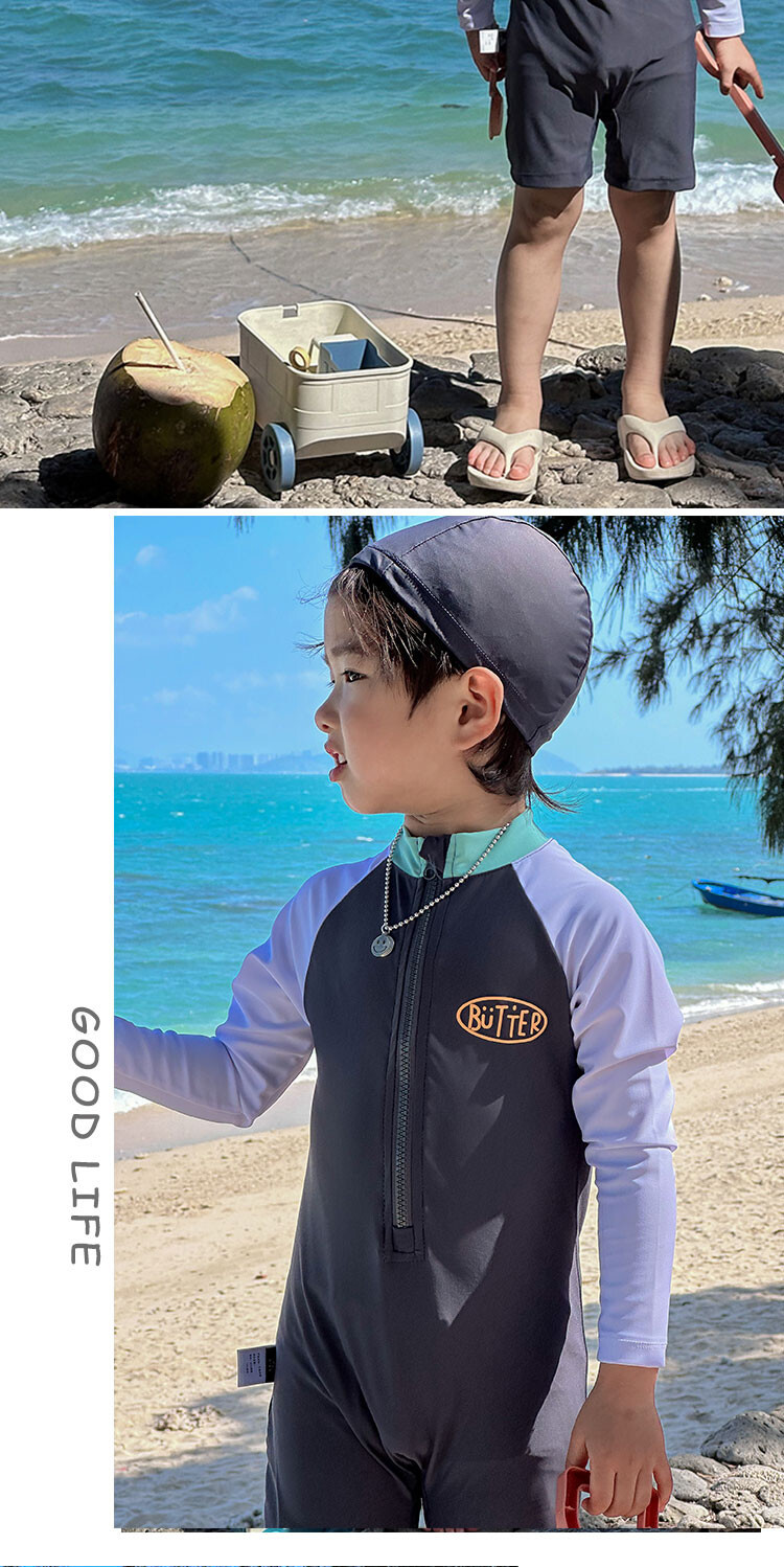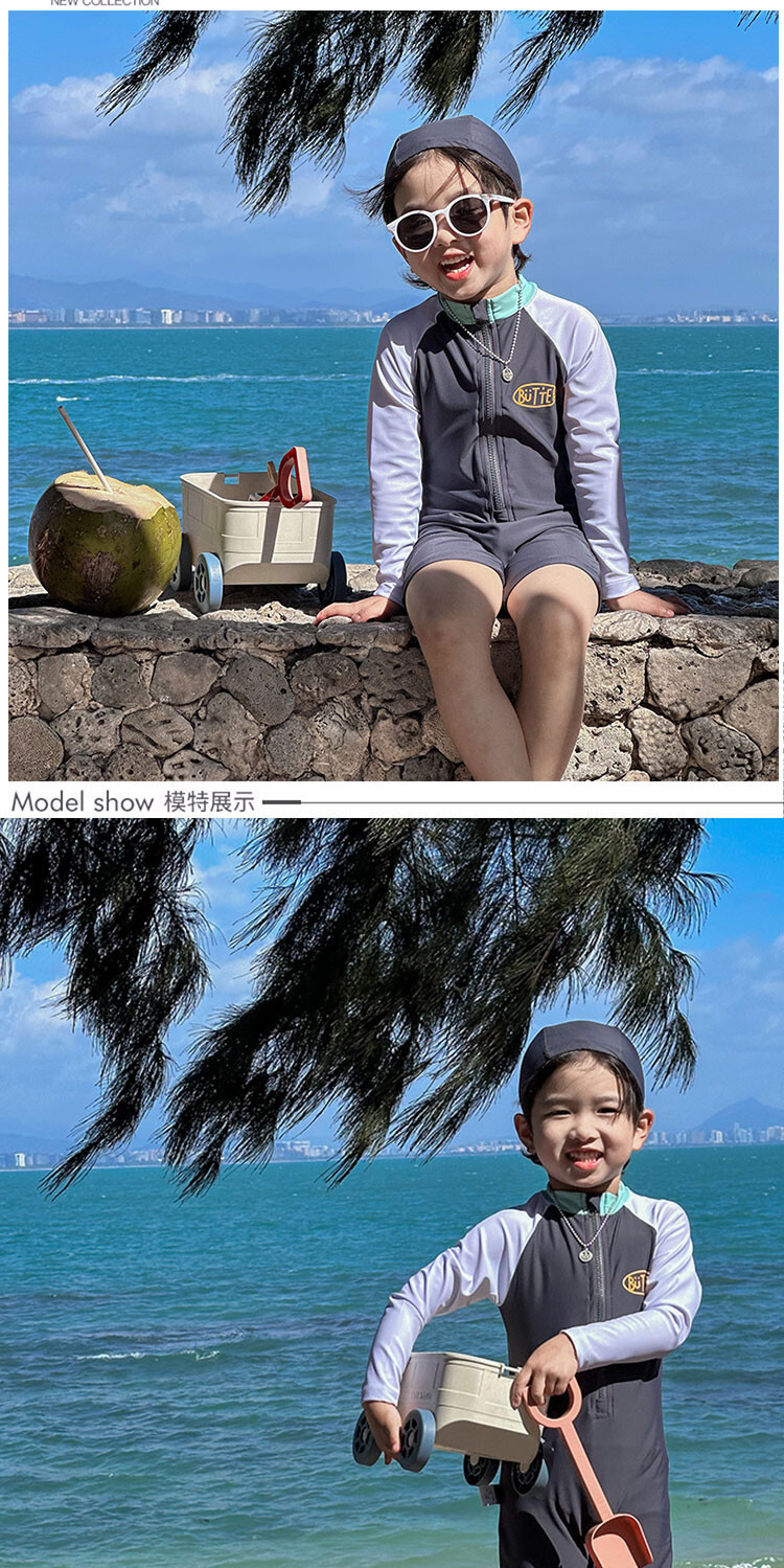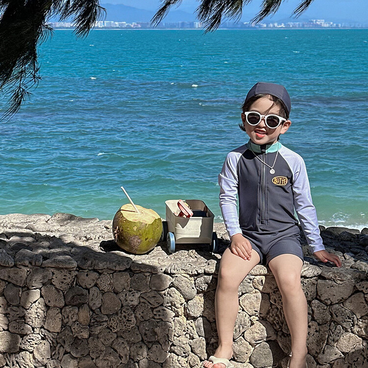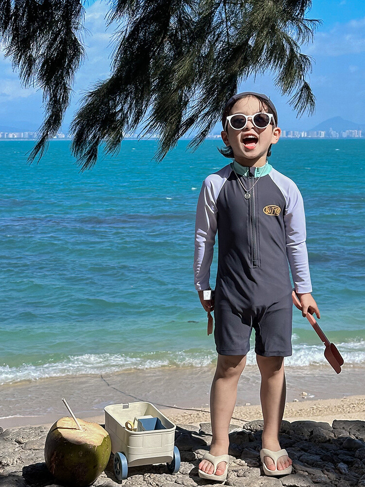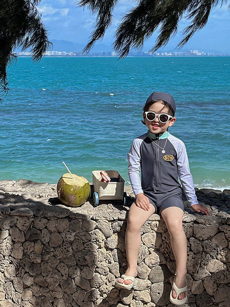 2024 새로운 어린이 수영복 소년 소녀 아기 원피스 긴 소매 태양 보호 수영복 어린이 해변 휴가 수영복스토어 가기