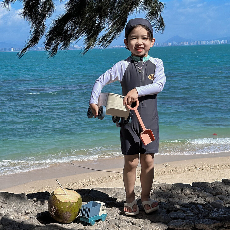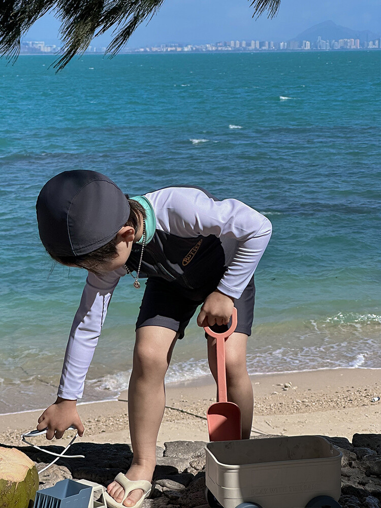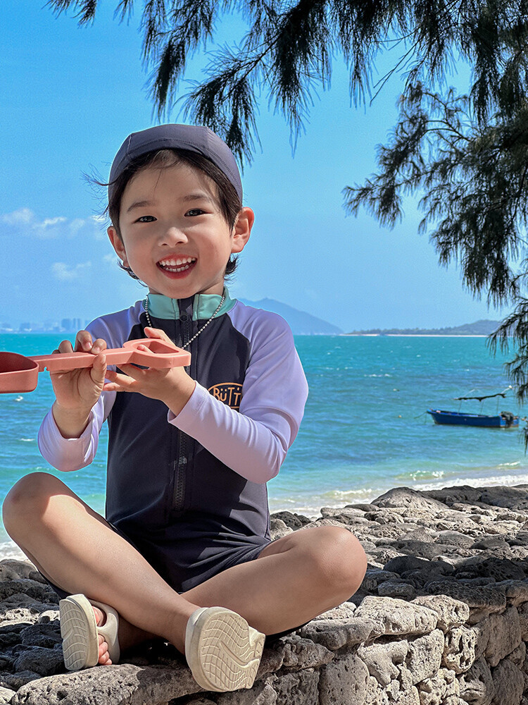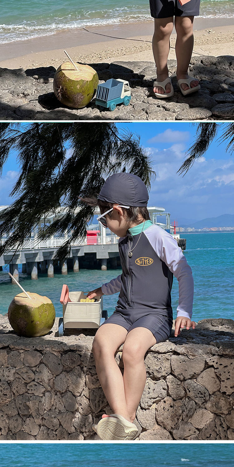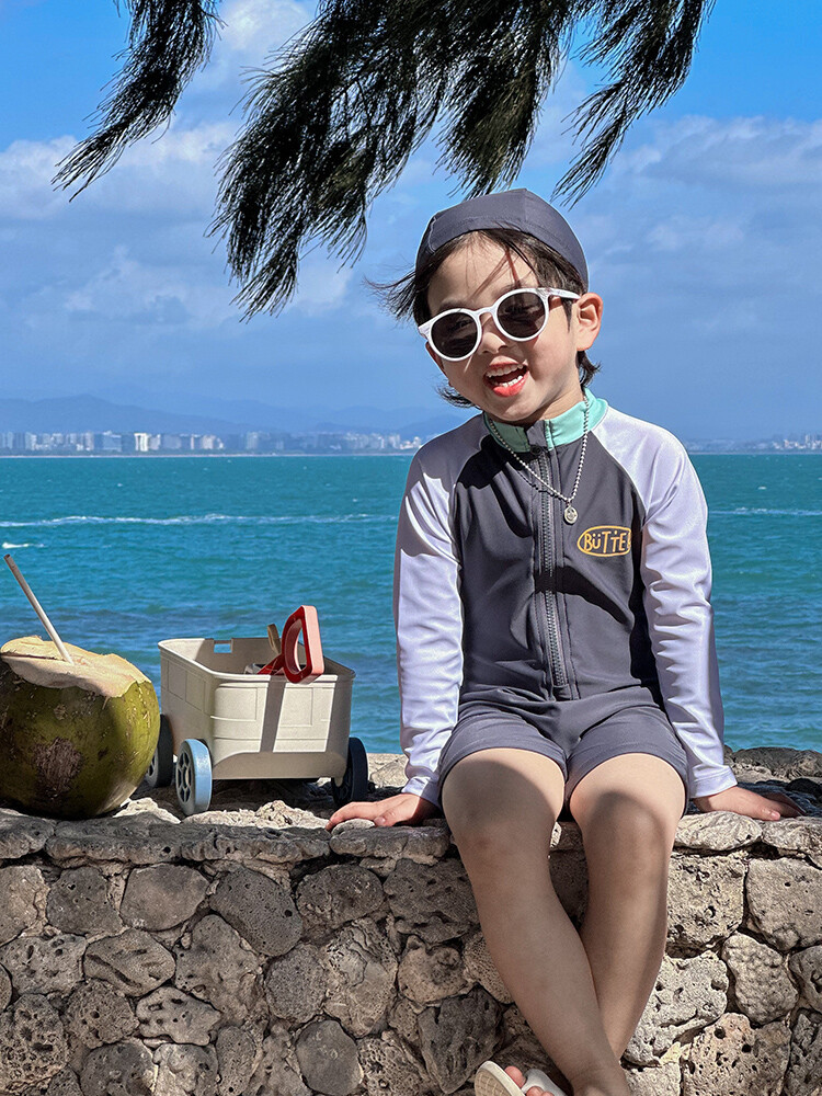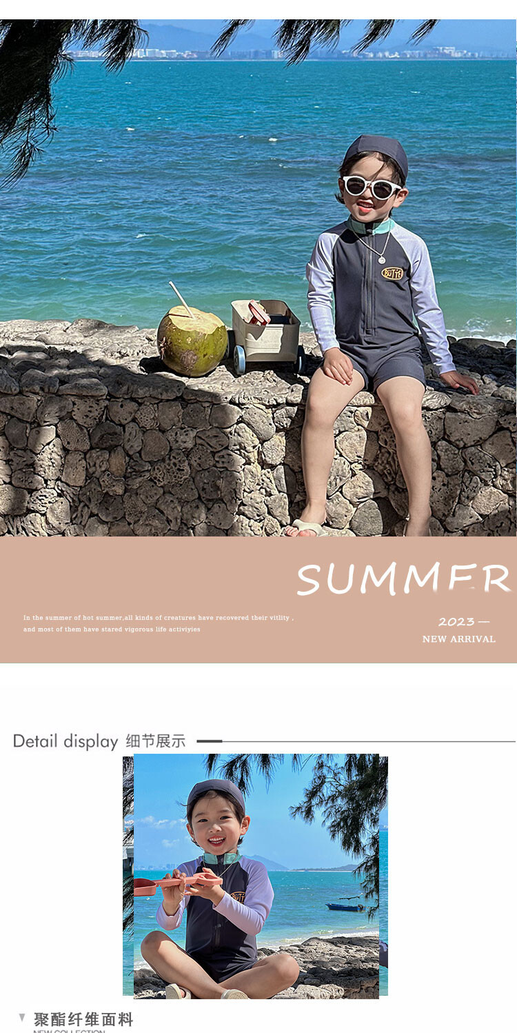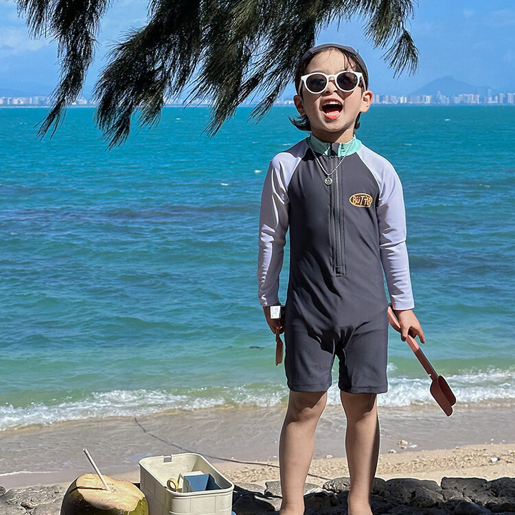 2024 새로운 어린이 수영복 소년 소녀 아기 원피스 긴 소매 태양 보호 수영복 어린이 해변 휴가 수영복스토어 가기