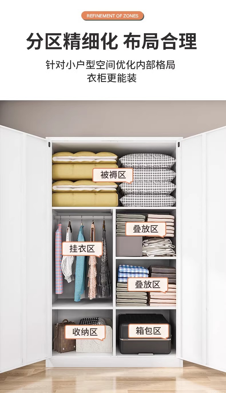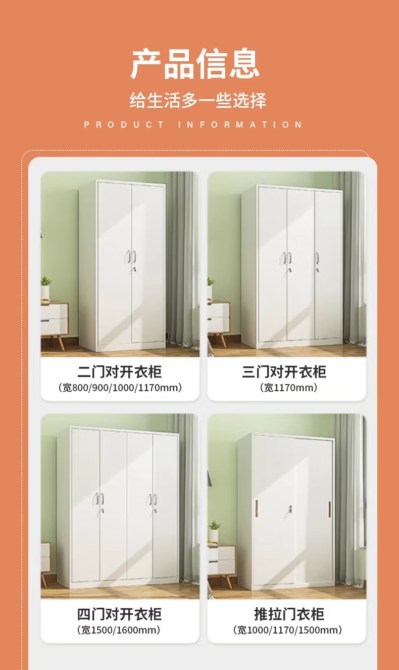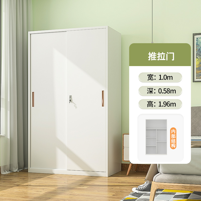 钢制家用卧室衣柜现代简约收纳柜经济型推拉门更衣柜出租房储物柜