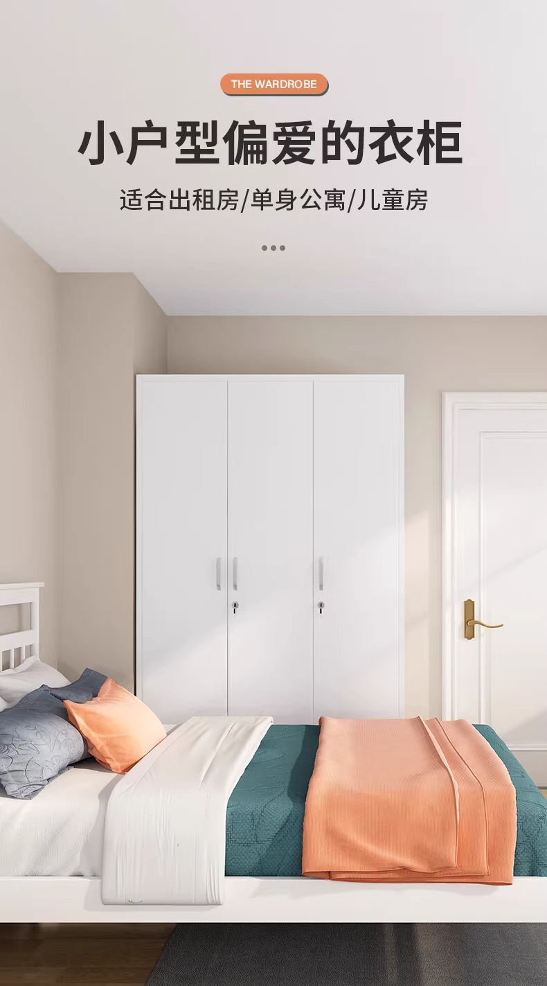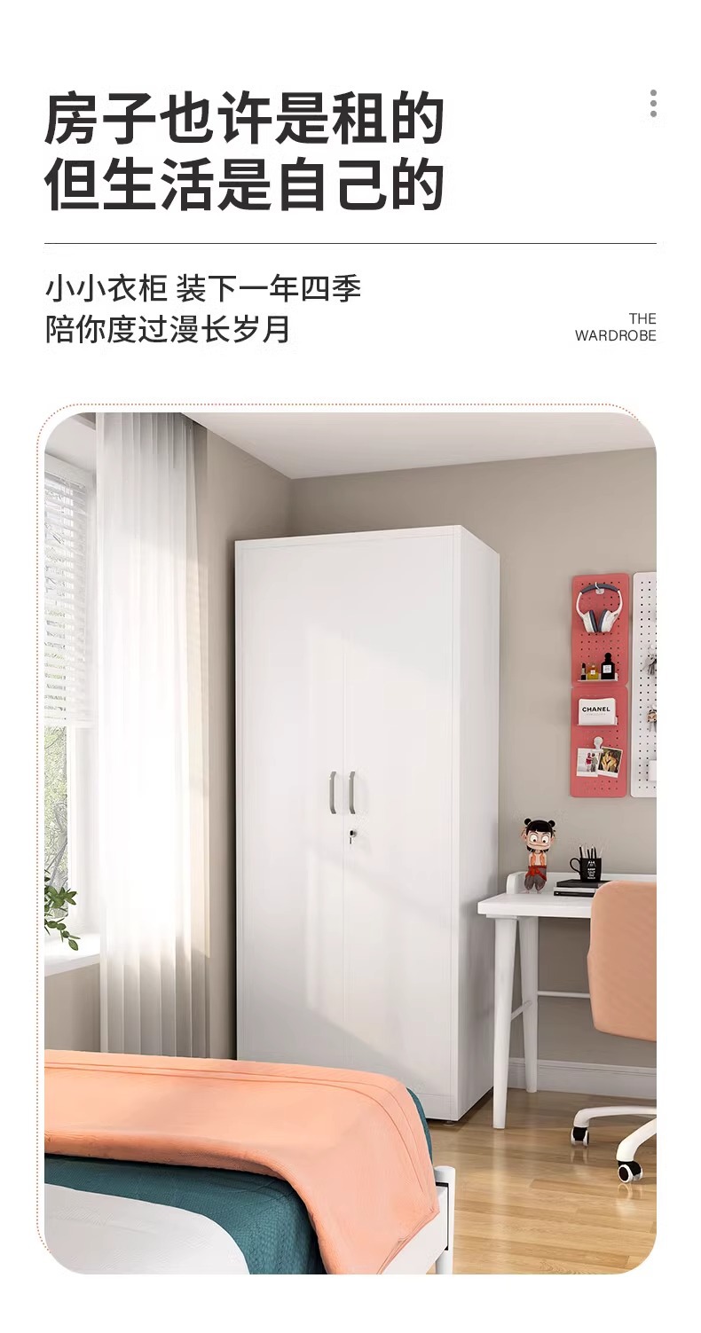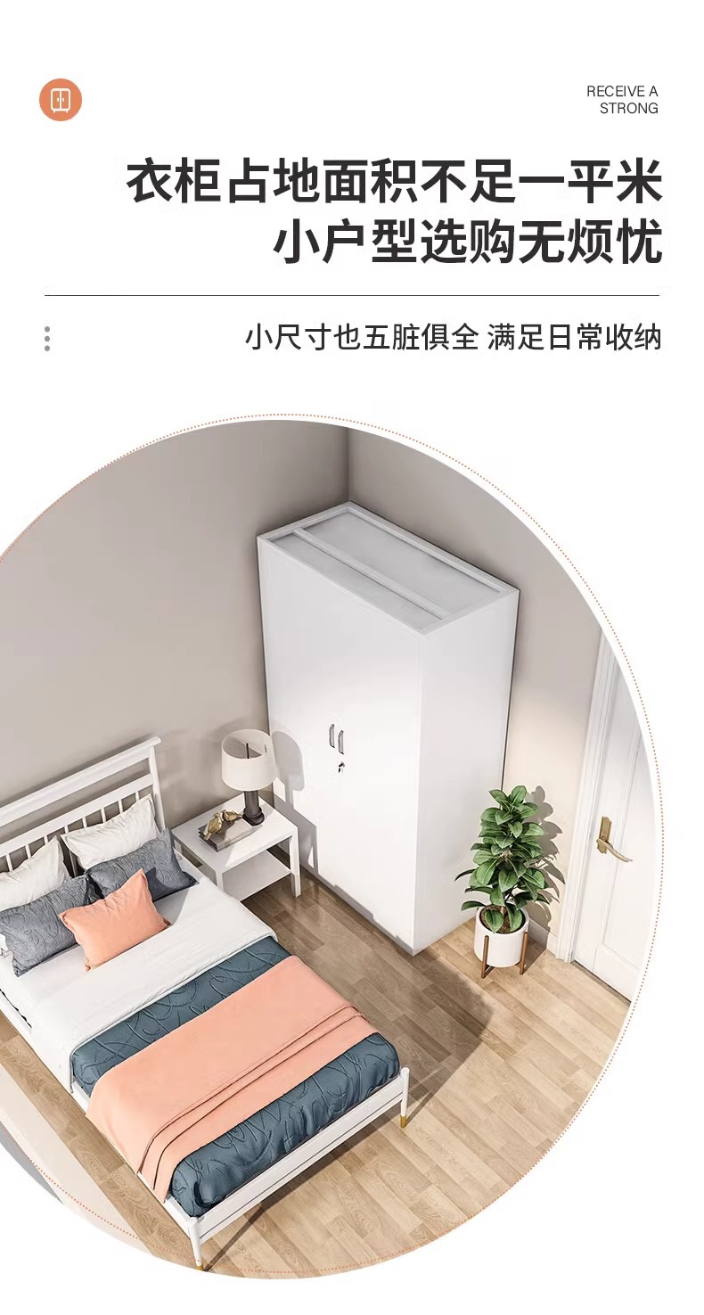 钢制家用卧室衣柜现代简约收纳柜经济型推拉门更衣柜出租房储物柜