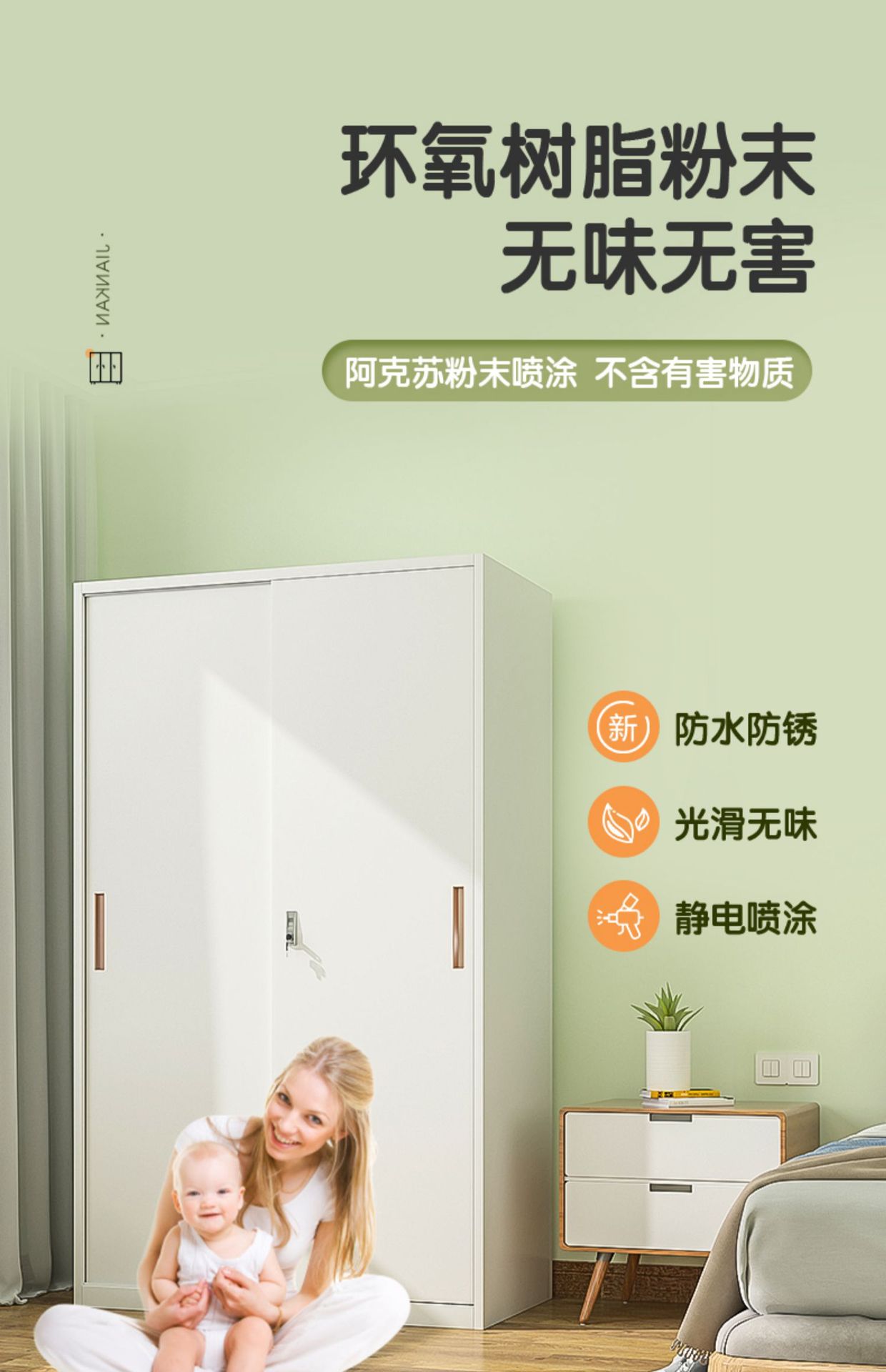 스틸 가정용 침실 옷장 현대 미니멀리스트 스토리지 캐비닛 경제적 인 슬라이딩 도어 옷장 대여 사물함