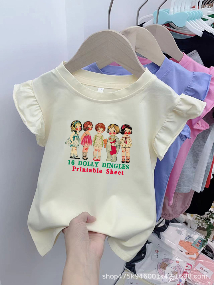 국경 간 인기있는 아동면 주름 라운드 넥 탑 한국 스타일 여름 유행 얇은 작은 비행 소매 티셔츠스토어 가기
