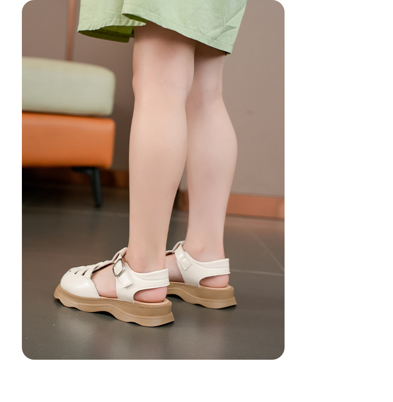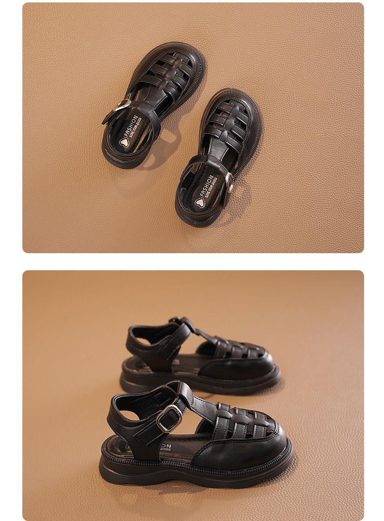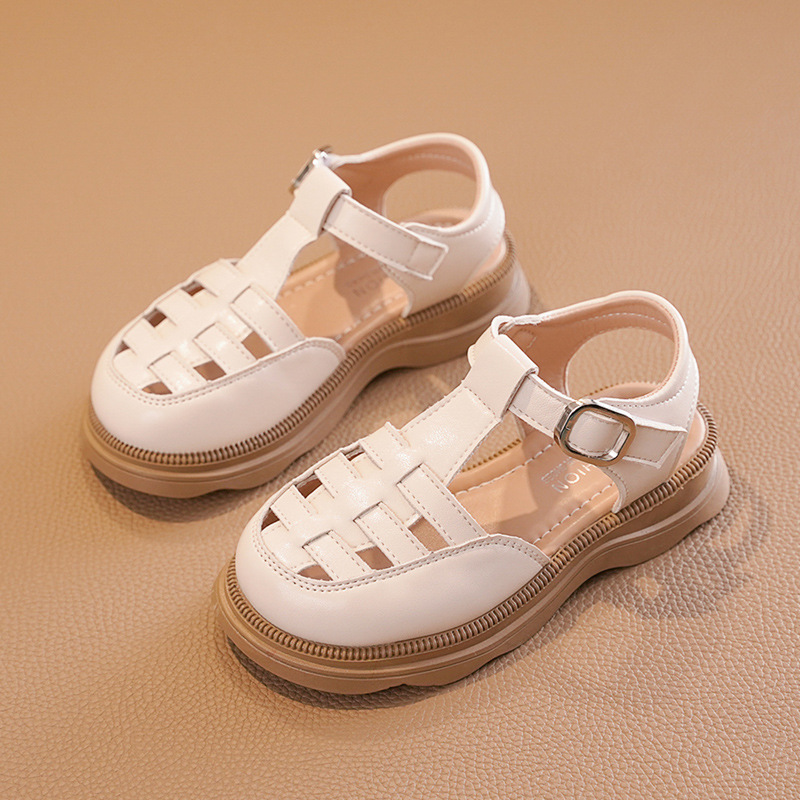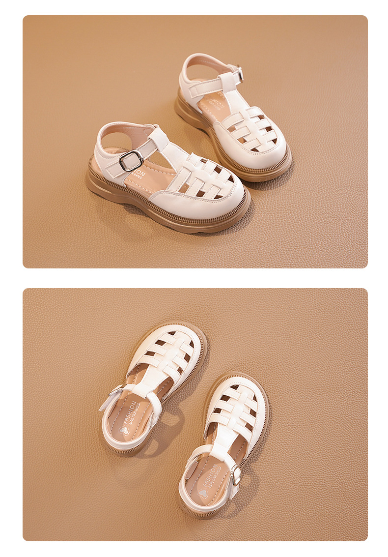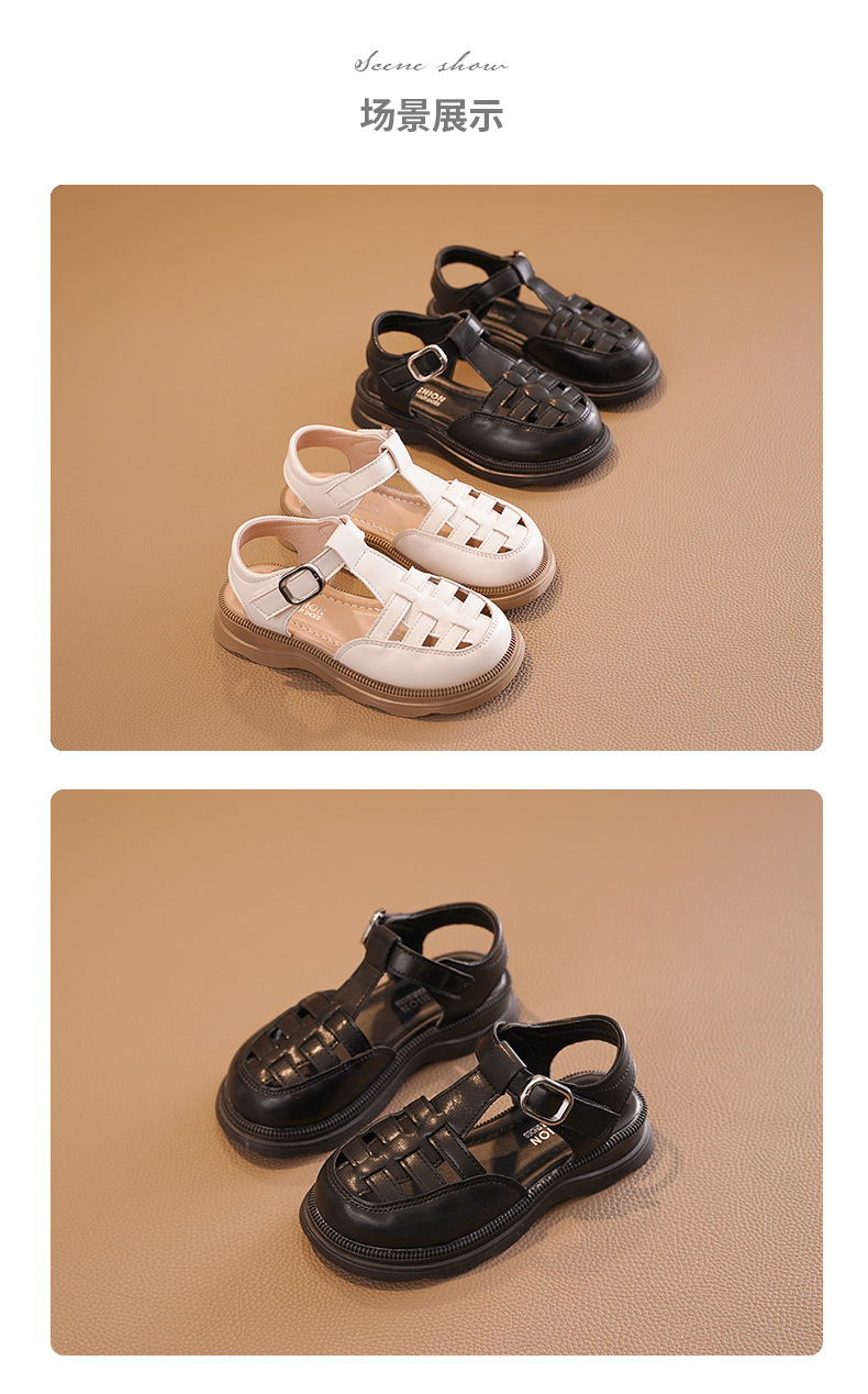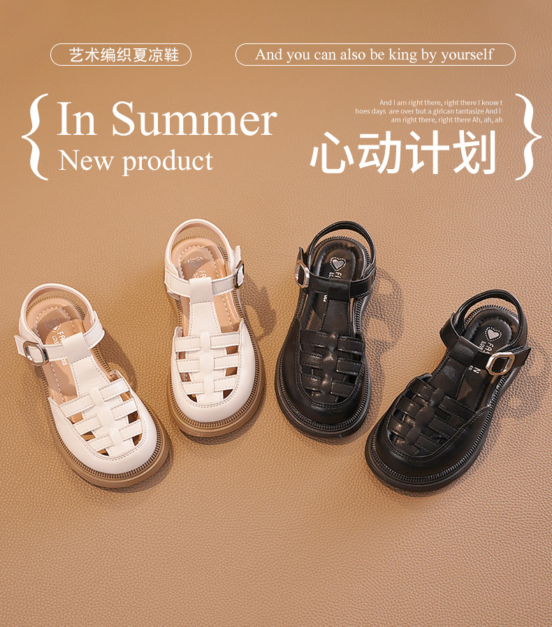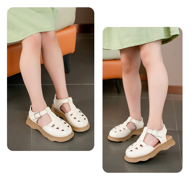 소녀 로마 하프 샌들 2024 여름 새로운 중형 및 대형 어린이 미끄럼 방지 비치 슈즈 어린이 통기성 학생 신발 단층 신발스토어 가기