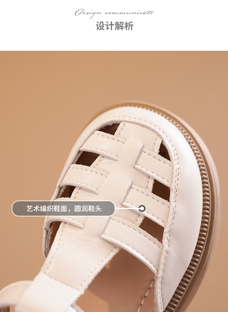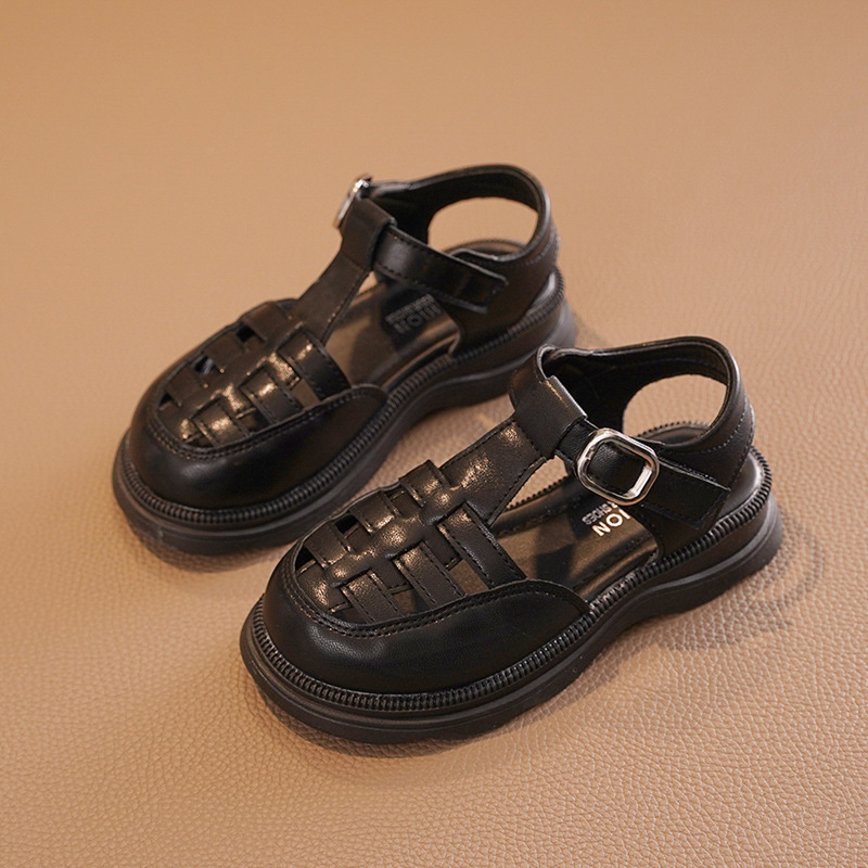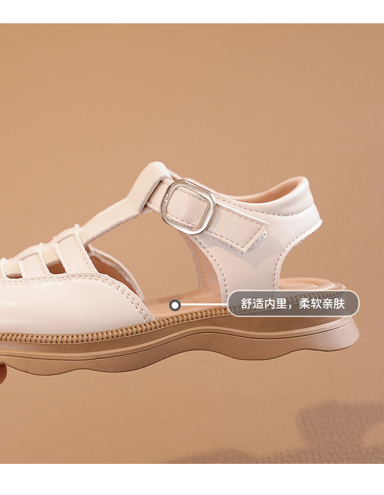 소녀 로마 하프 샌들 2024 여름 새로운 중형 및 대형 어린이 미끄럼 방지 비치 슈즈 어린이 통기성 학생 신발 단층 신발