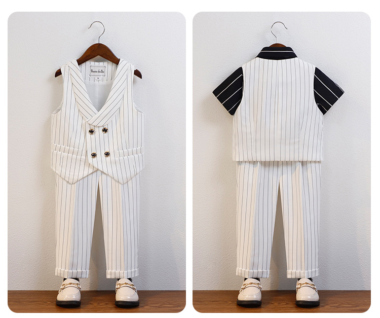 • 5 피스 조끼 세트 (반팔 셔츠 조끼 + 바지 나비 넥타이 + 코사이지)