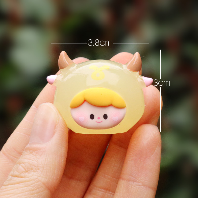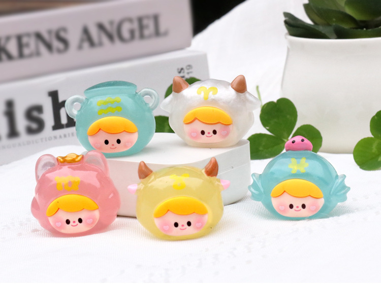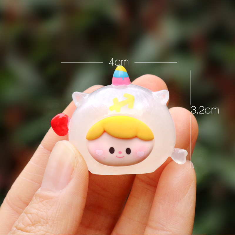 빛나는 투명 만화 조디악 별자리 라운드 롤 귀여운 DIY 수지 3 차원 인형 데스크탑 작은 장식품