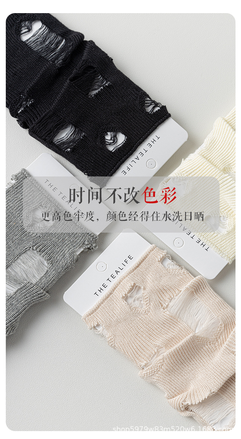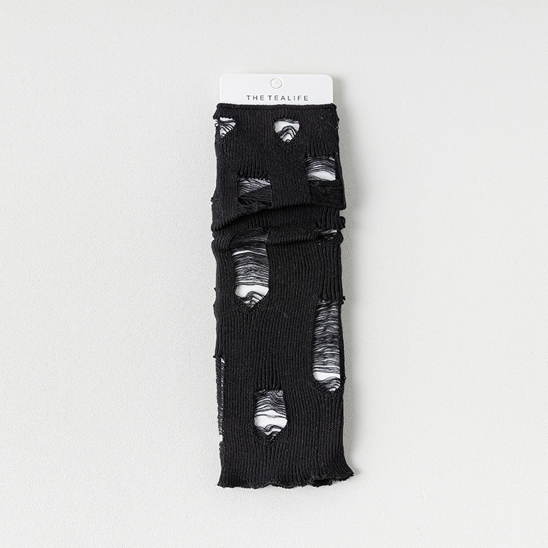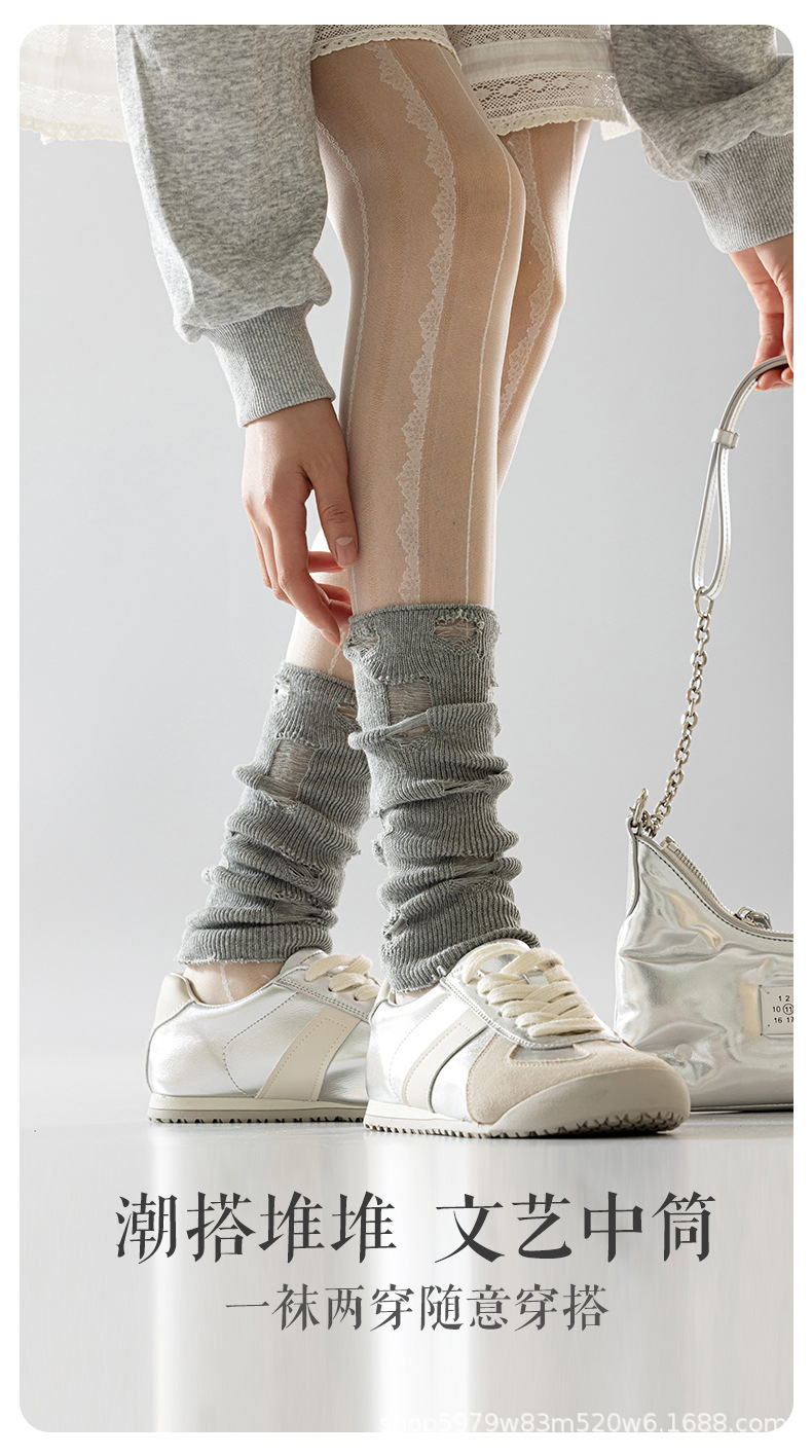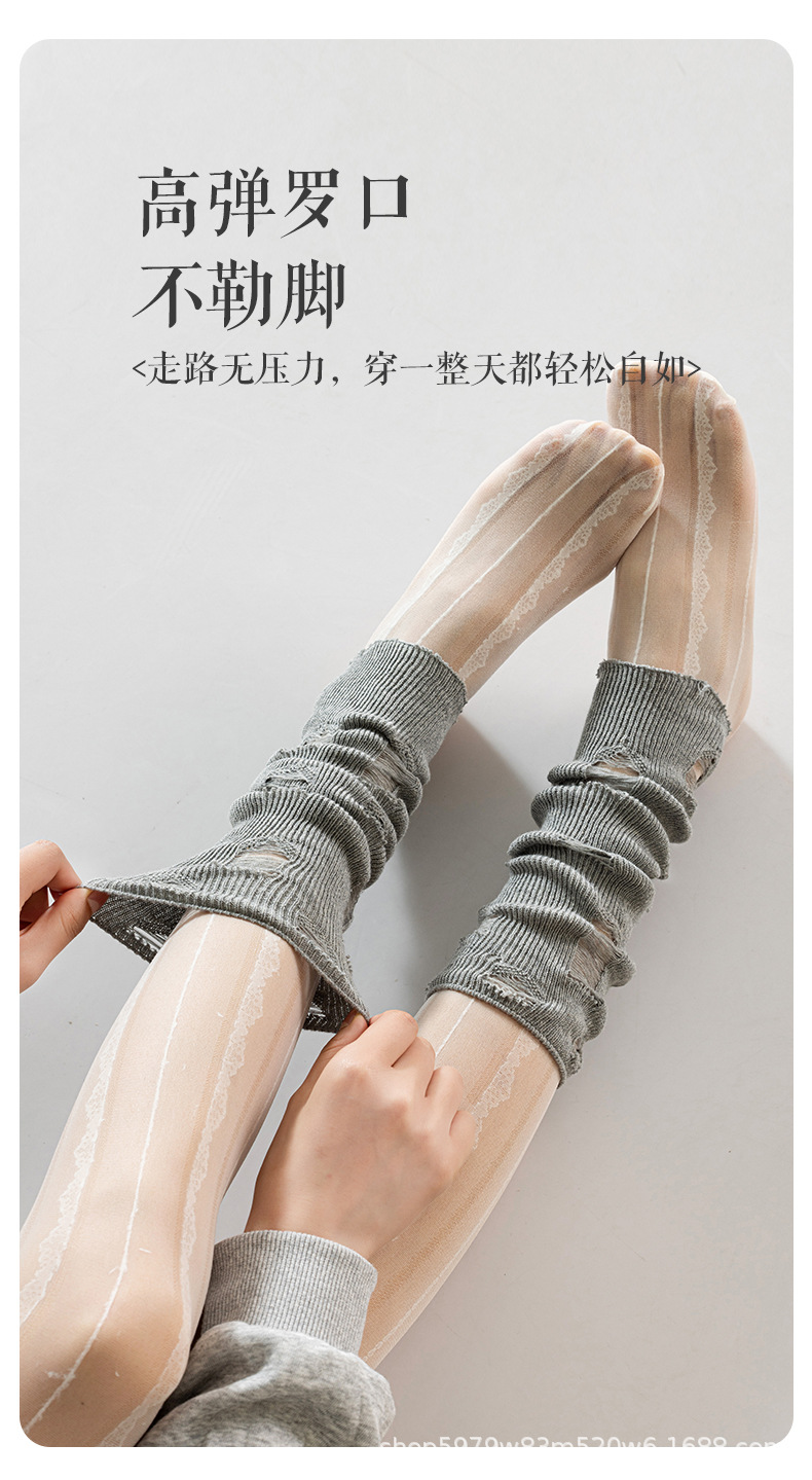 더미 양말 봄과 가을 뜨거운 소녀 니트 트렌디 한 찢어진 스타킹 여름면 얇은 통기성 흰색 중간 종아리 길이 양말스토어 가기