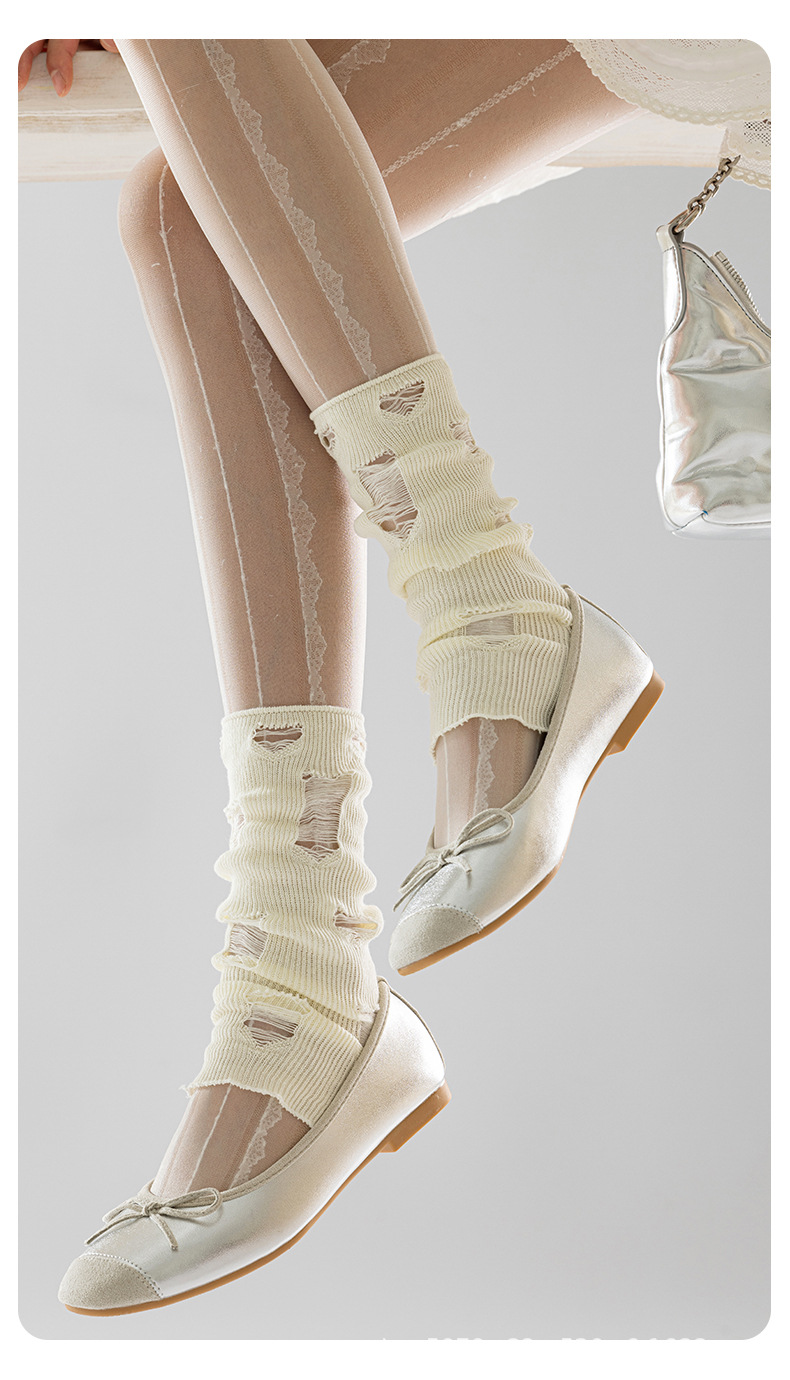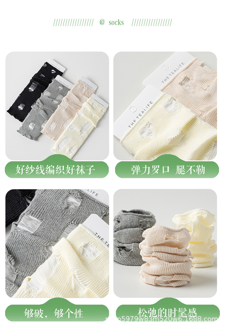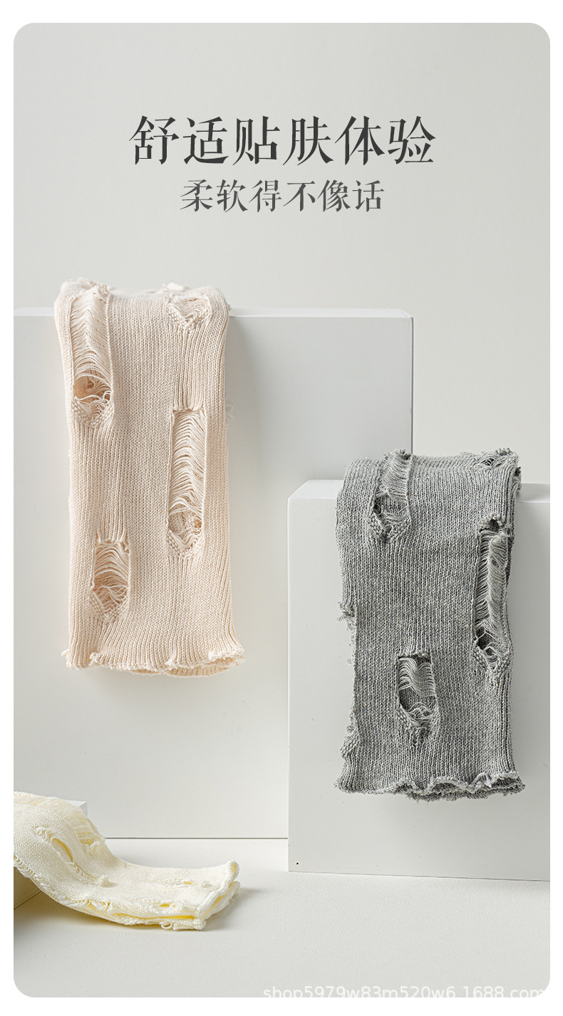 더미 양말 봄과 가을 뜨거운 소녀 니트 트렌디 한 찢어진 스타킹 여름면 얇은 통기성 흰색 중간 종아리 길이 양말스토어 가기