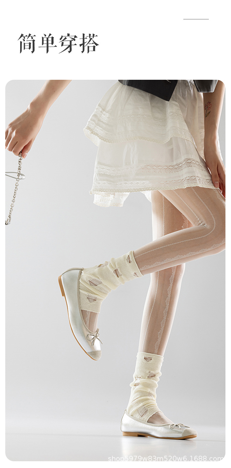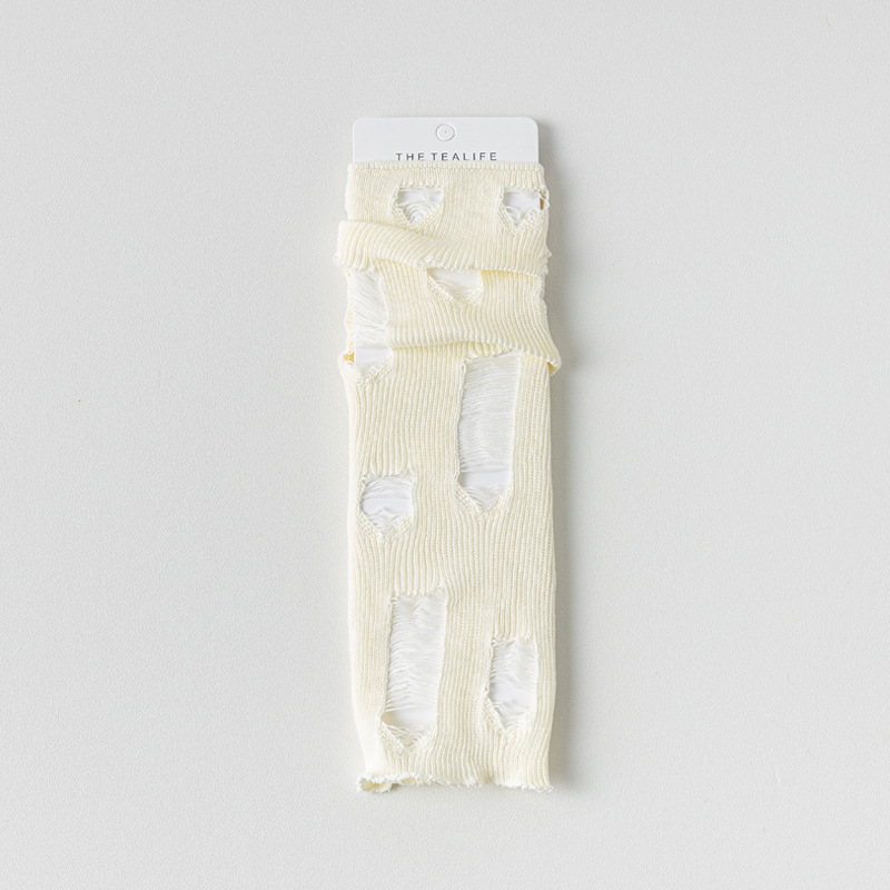 더미 양말 봄과 가을 뜨거운 소녀 니트 트렌디 한 찢어진 스타킹 여름면 얇은 통기성 흰색 중간 종아리 길이 양말