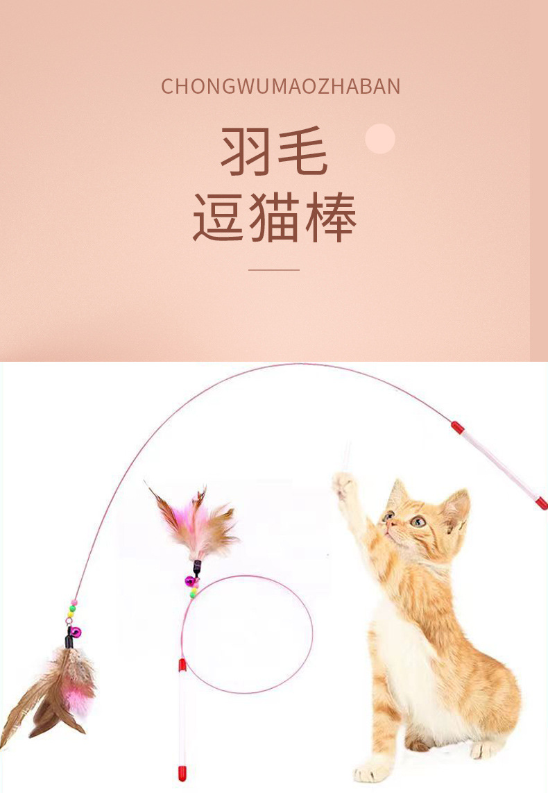 공장 공급 강철 와이어 긴 막대 깃털 재미있는 고양이 스틱 고양이 장난감 자기 안녕 재미있는 고양이 스틱 벨 깃털 애완 동물 도매스토어 가기