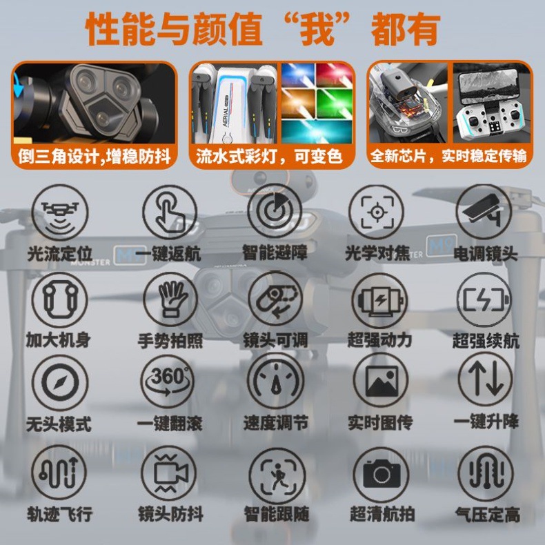 • 포지셔닝 광학 줌 야간 투어 조명 장애물 회피 듀얼 카메라 ESC 후속 조치 블랙