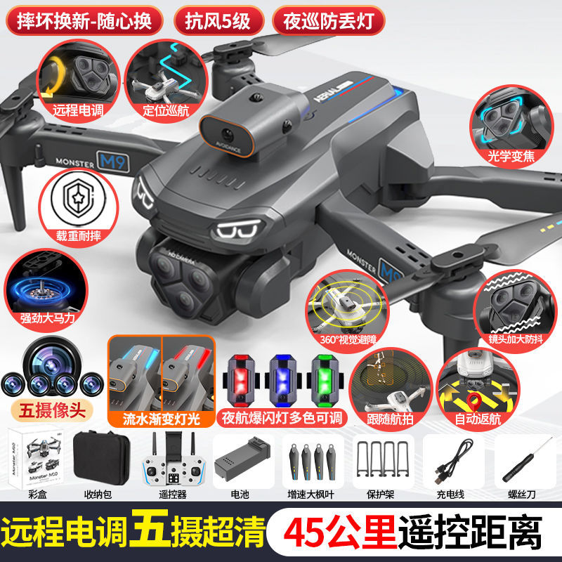 • ❤포지셔닝 광학 줌 야간 투어 조명 장애물 회피 5개 카메라 ESC 후속 조치 블랙