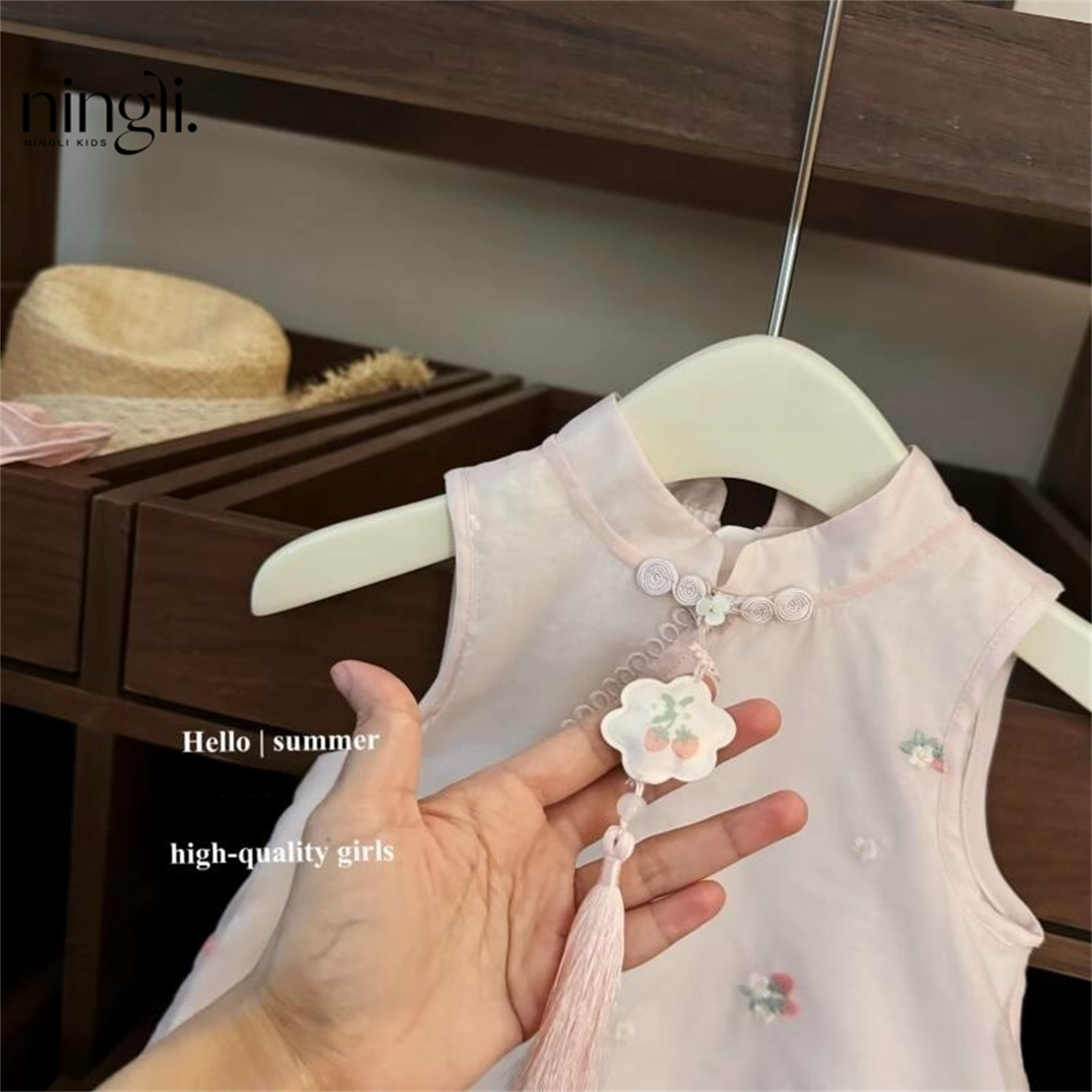 Ningli 소녀 여름 정장 25 새로운 아기 중국 스타일 민소매 치파오 스커트 여름 패션 중국 스타일 투피스 세트
