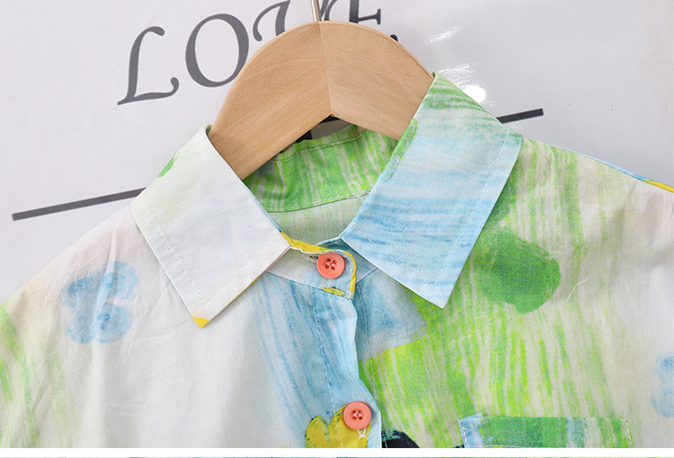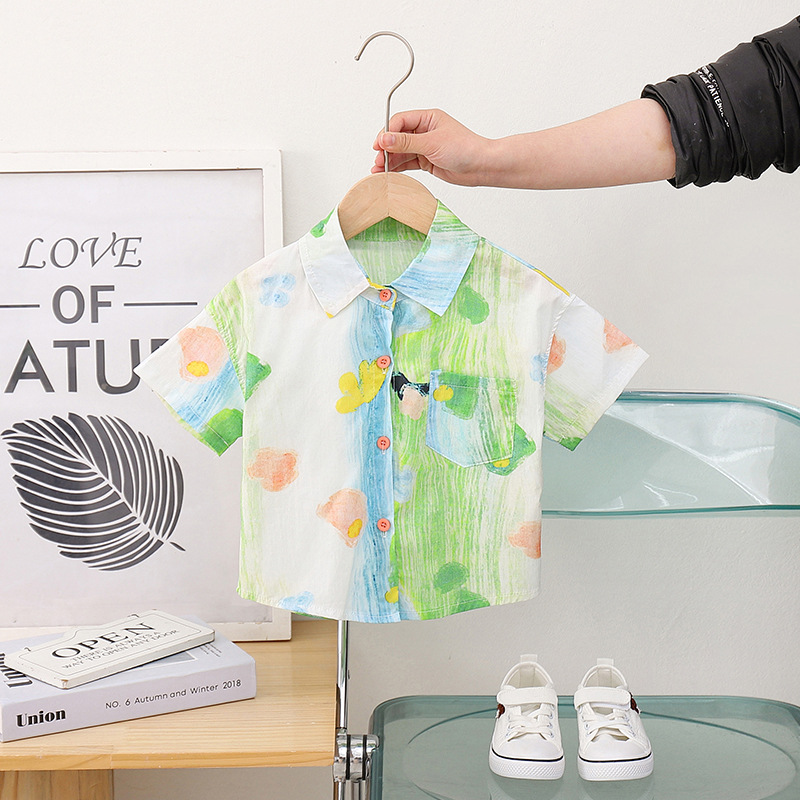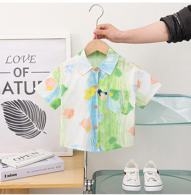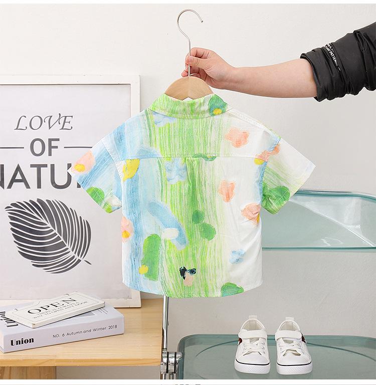 새로운 아동복 어린이 유화 반팔 꽃 셔츠 새로운 홍콩 스타일 루안 잘 생긴 소년의 세트 아기 캐주얼 꽃 셔츠스토어 가기