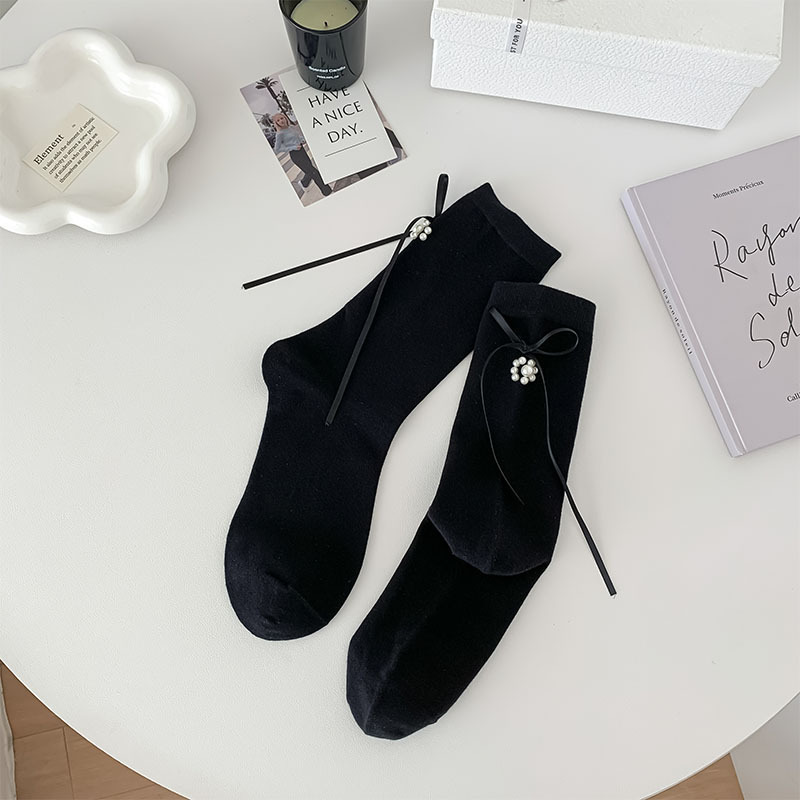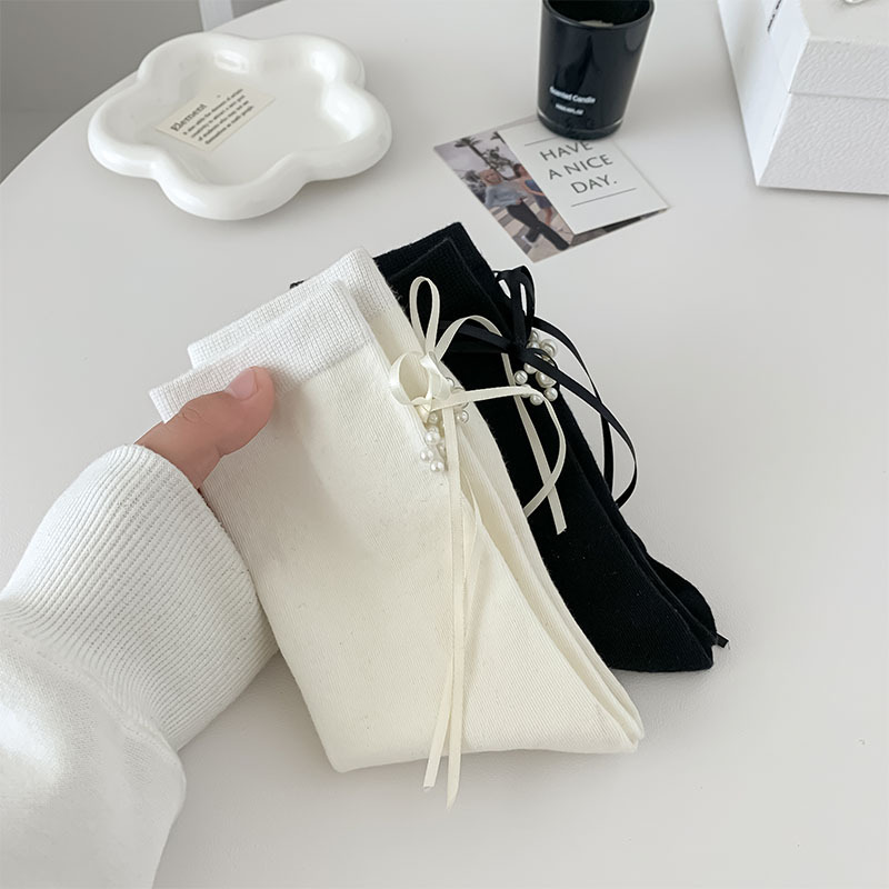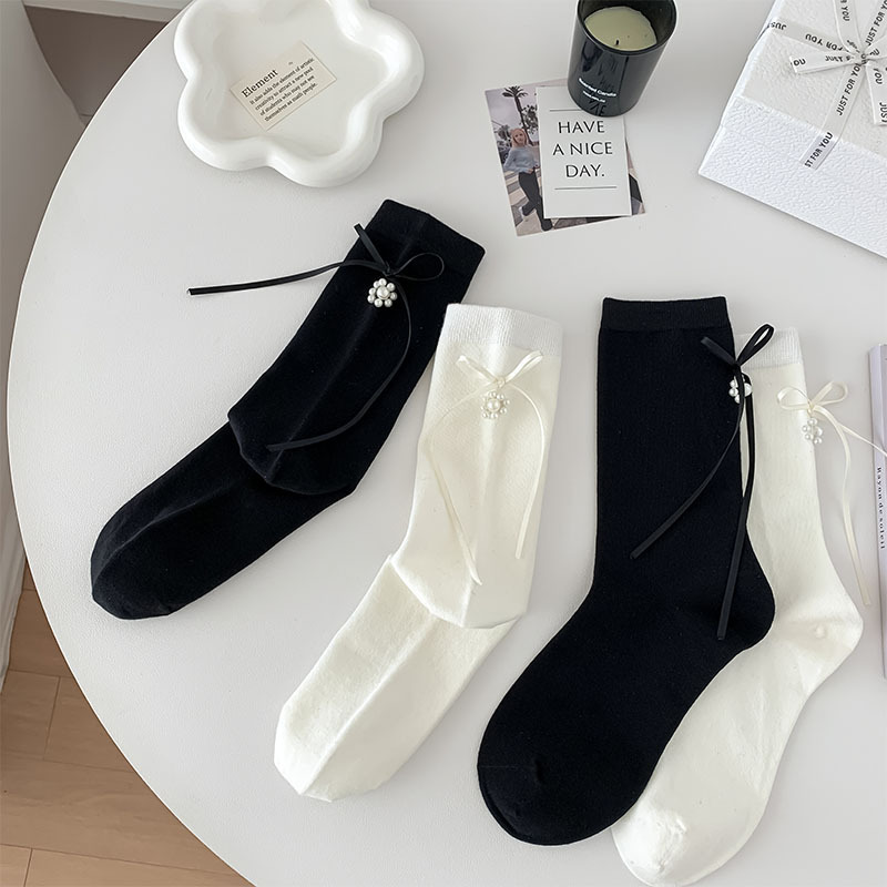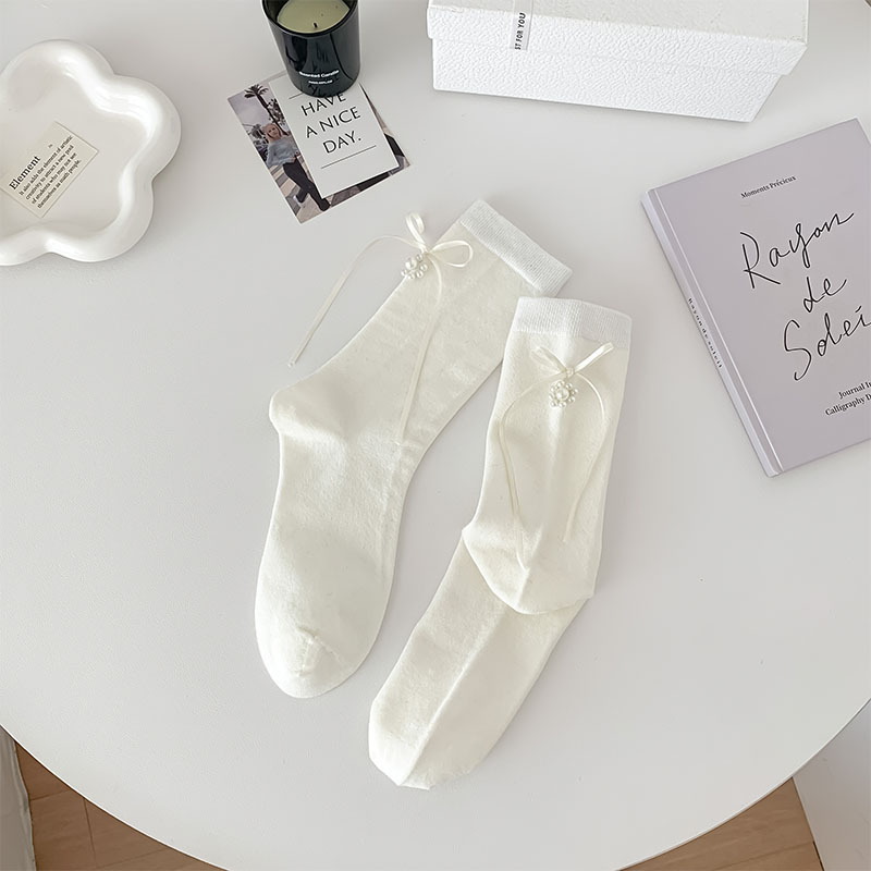 로리타 힐 진주 활 양말 여성의 귀여운 소녀 스타일 중반 송아지 양말 봄과 여름 메리 제인 더미 양말스토어 가기