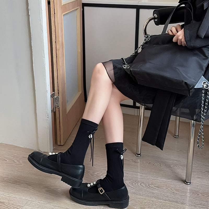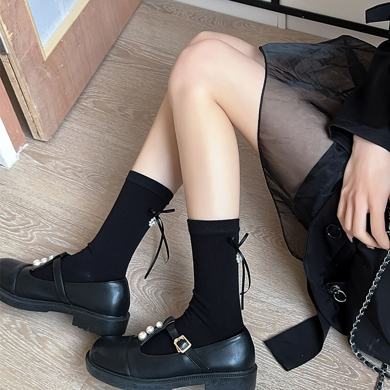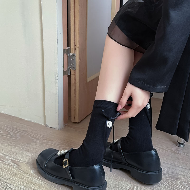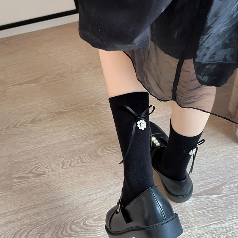 로리타 힐 진주 활 양말 여성의 귀여운 소녀 스타일 중반 송아지 양말 봄과 여름 메리 제인 더미 양말