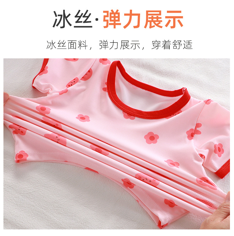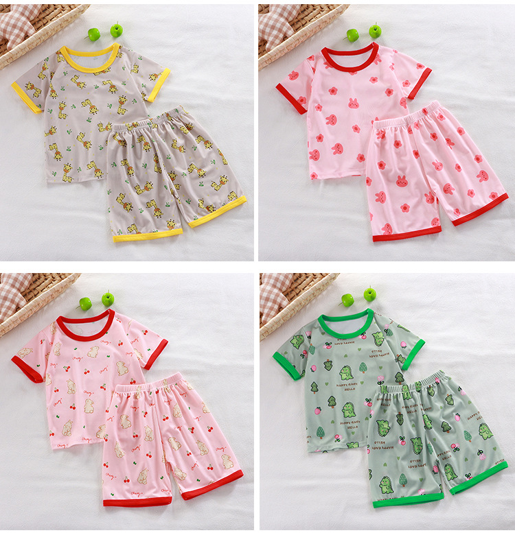 아동 반팔 반바지 세트 2024 여름 남아 여아 얇은 아이스 실크 티셔츠 투피스 세트 아동복 도매 유아복