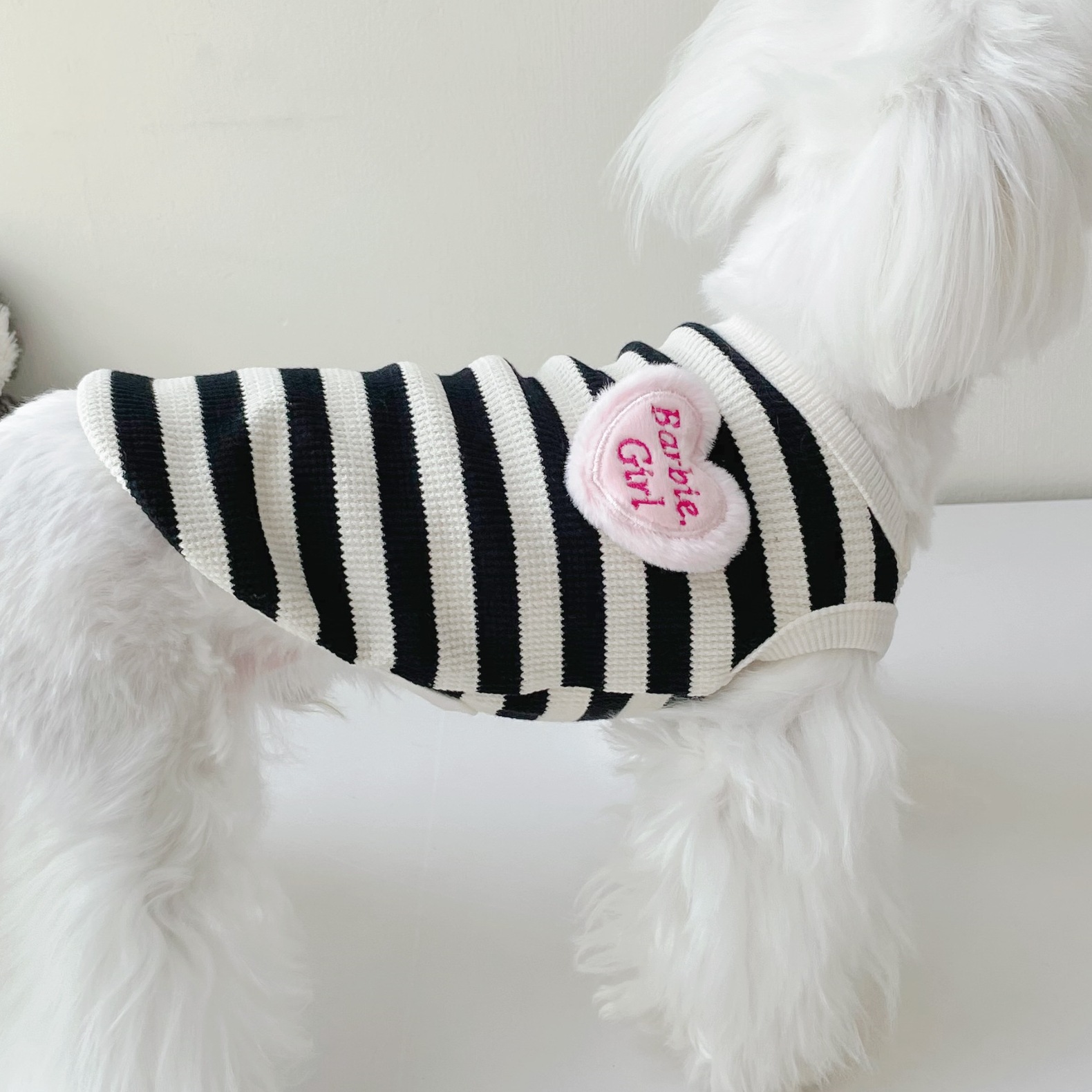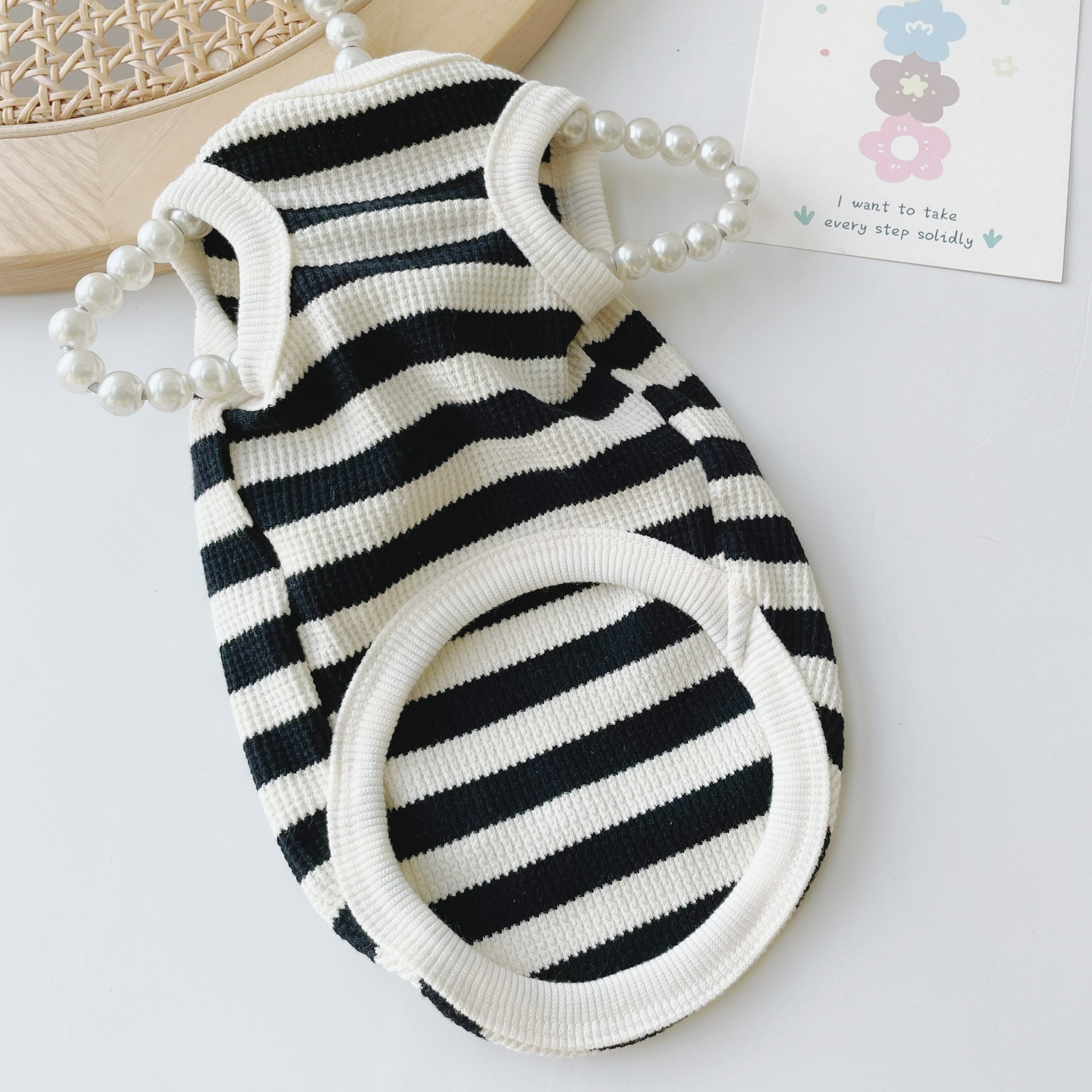 코튼 와플 스트라이프 바닥 셔츠 애완 동물 강아지 고양이 옷 조끼 국경 간 일본과 한국 24 봄과 여름 새로운스토어 가기