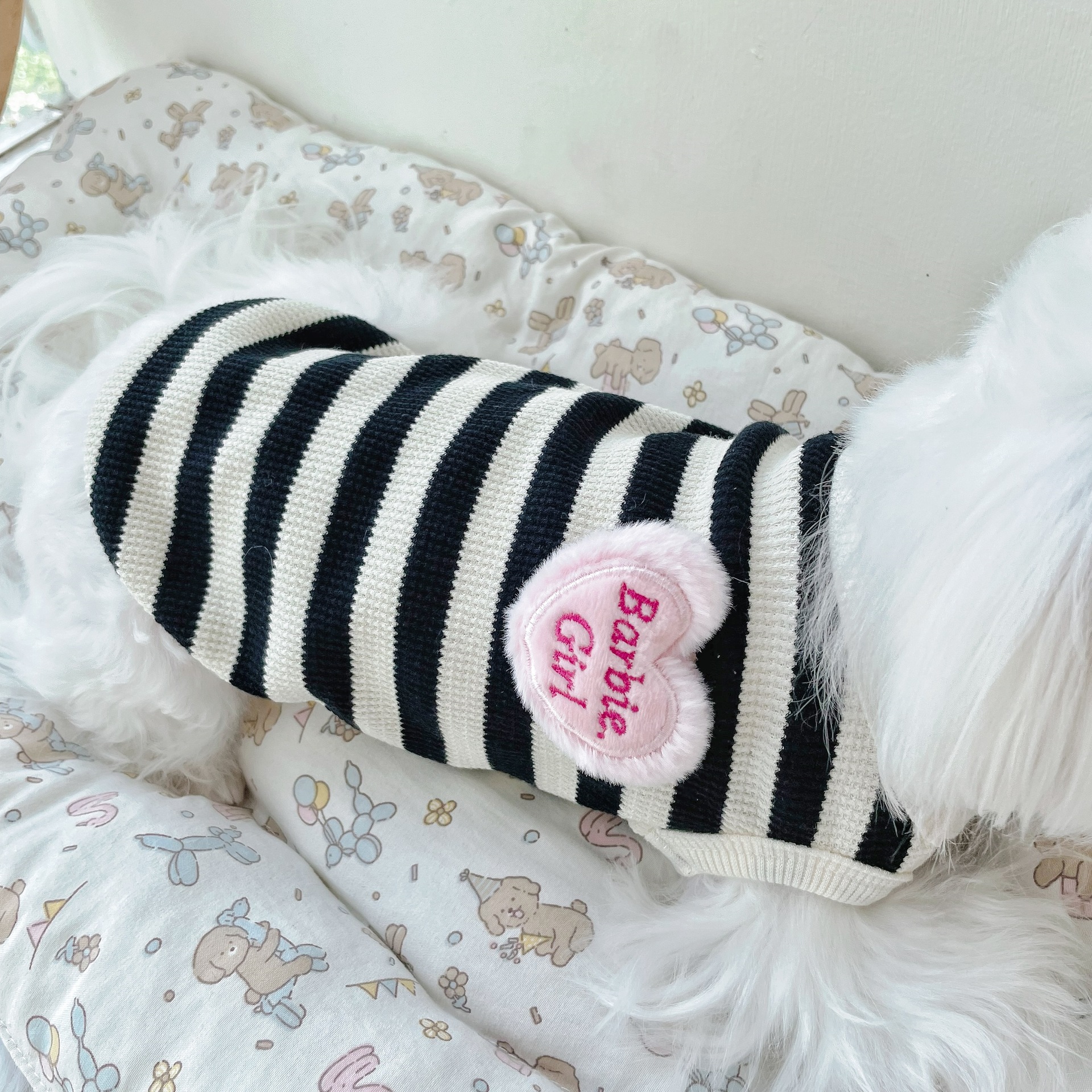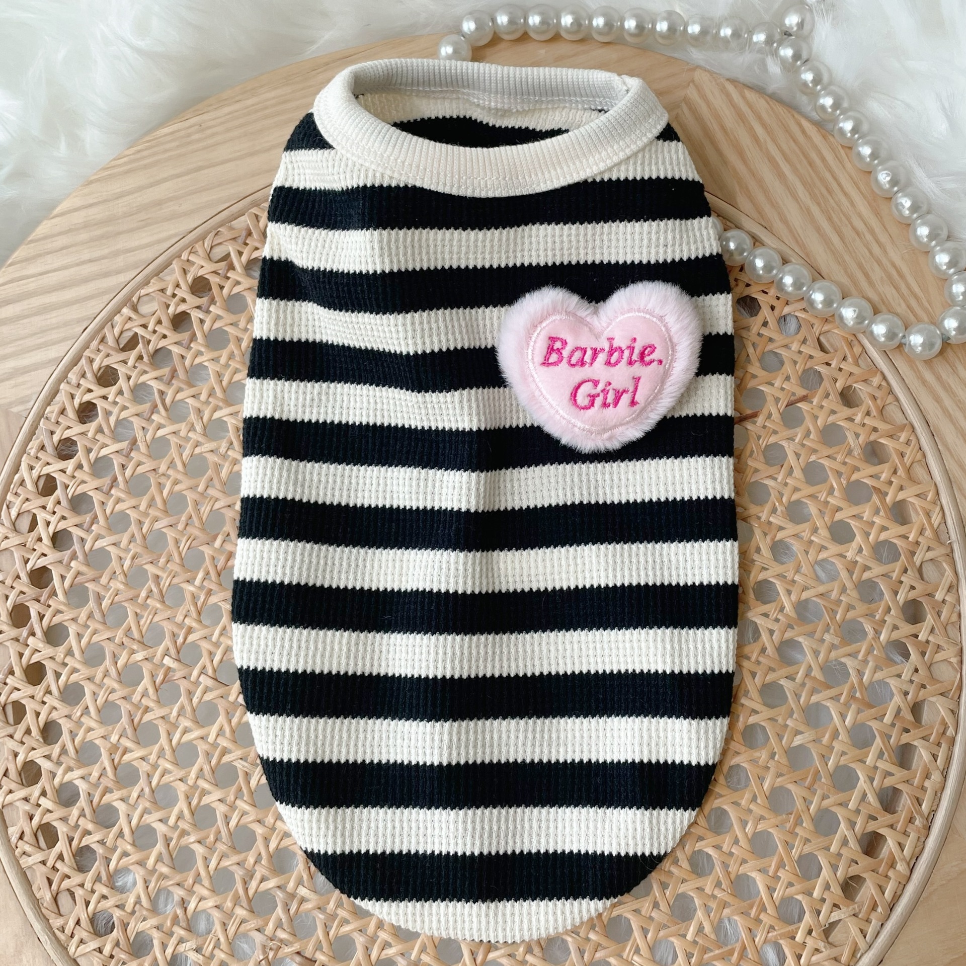 • 흑백 줄무늬 바닥 셔츠-[바비 파우더 사랑]]