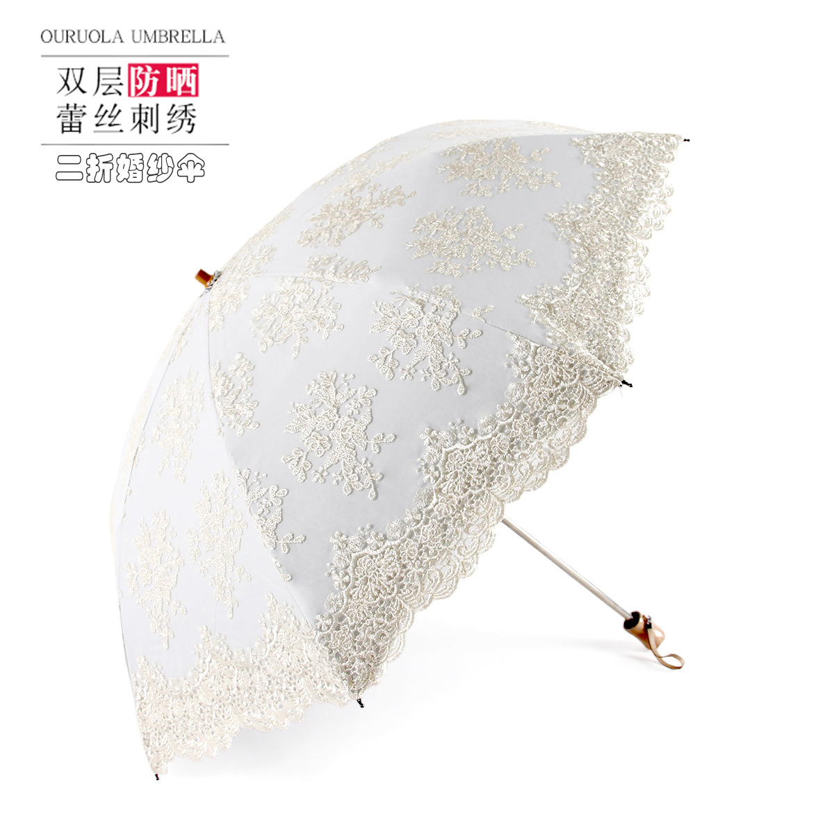 유럽의 새로운 더블 레이어 궁전 스타일 더블 레이어 수 놓은 레이스 우산 공주 우산 핸드백 파라솔 웨딩 드레스