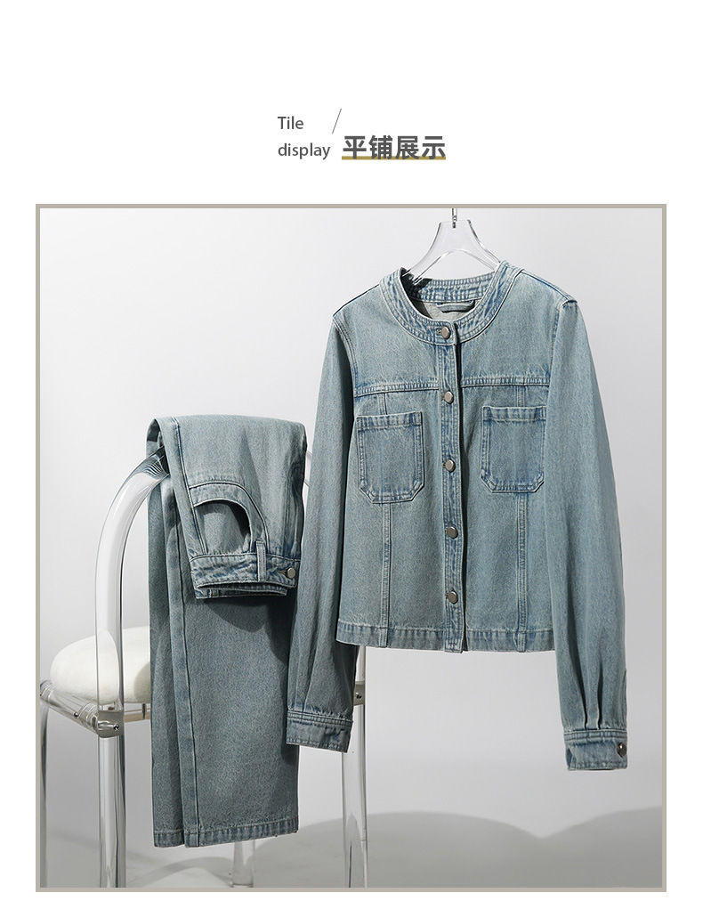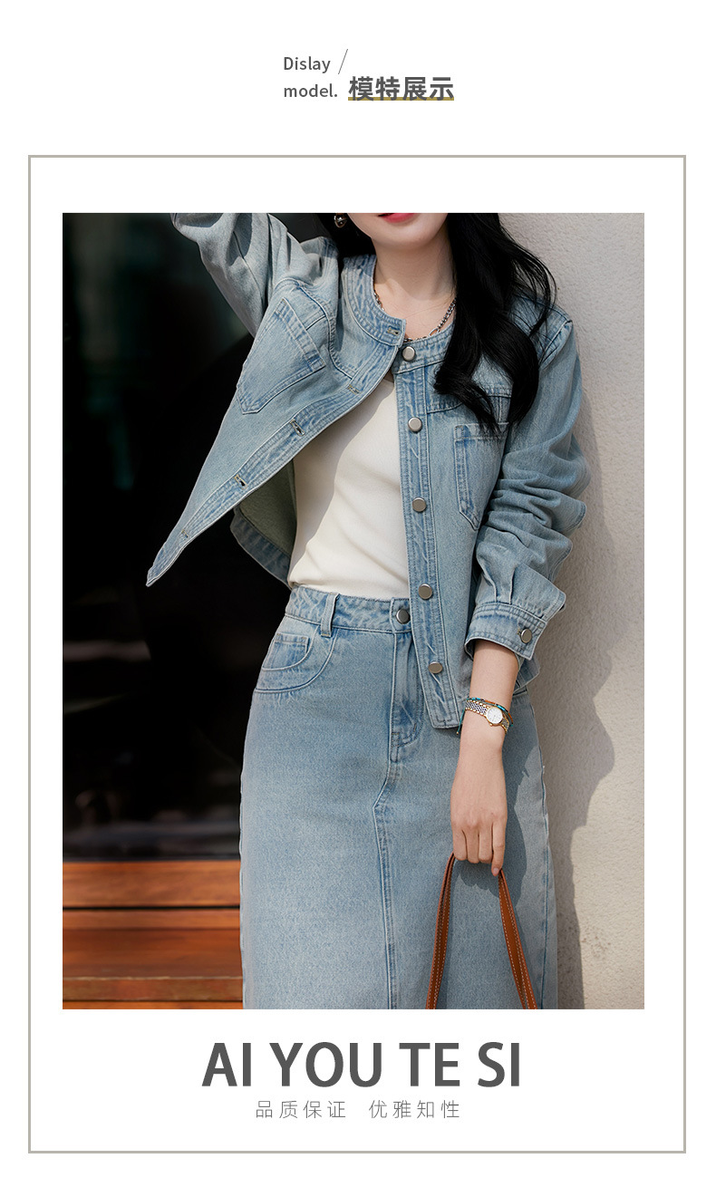 [즉시출퇴근용 데님 세트] 숏 데님 자켓/롱 스커트 세트, 패셔너블한 여성복 봄/가을스토어 가기