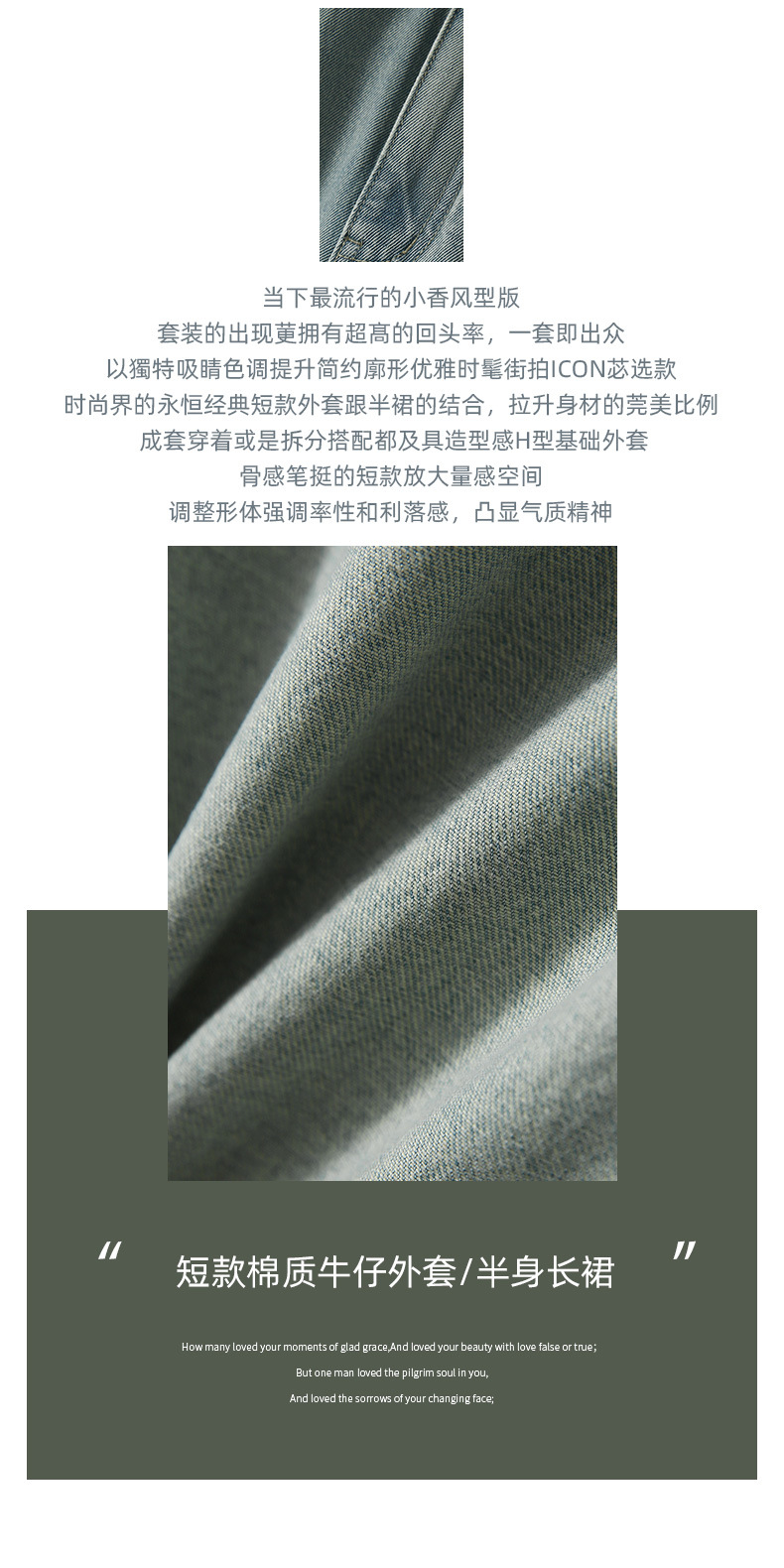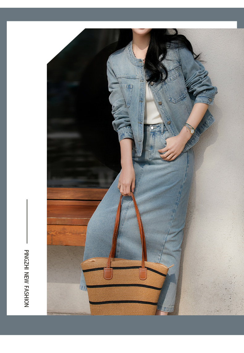[즉시출퇴근용 데님 세트] 숏 데님 자켓/롱 스커트 세트, 패셔너블한 여성복 봄/가을