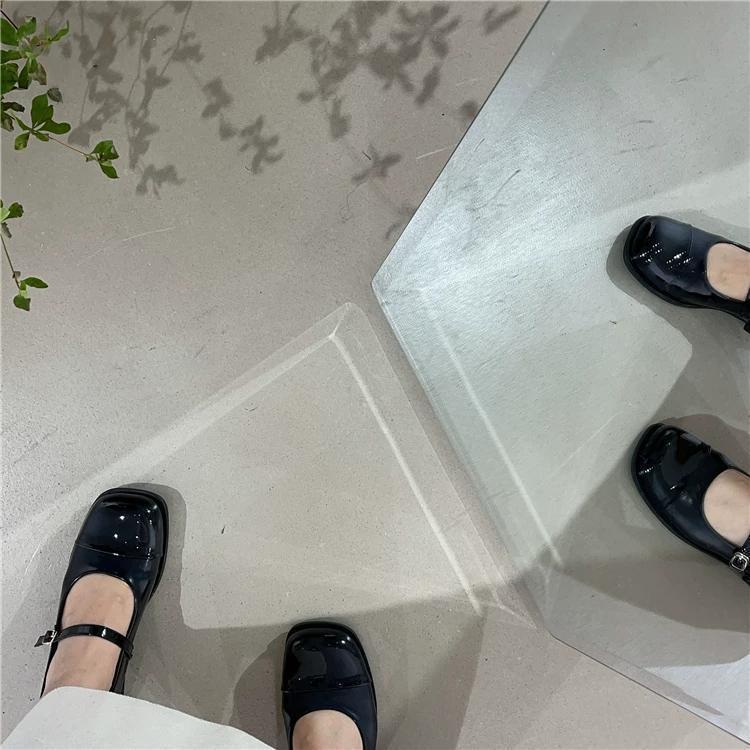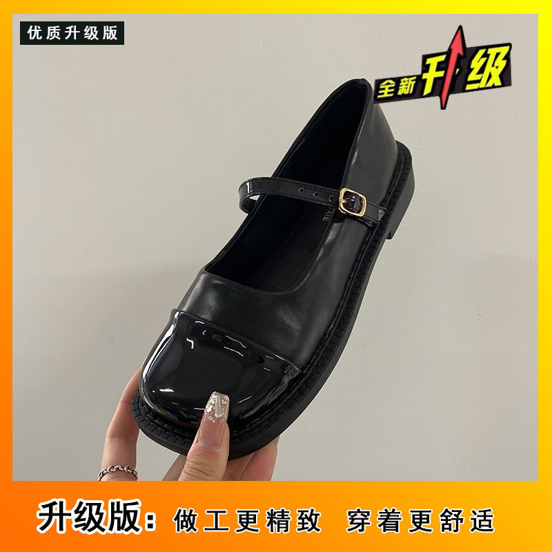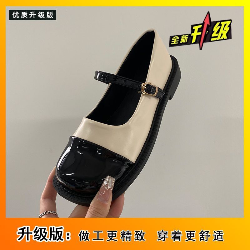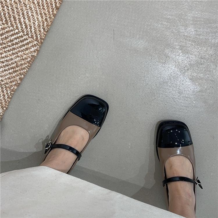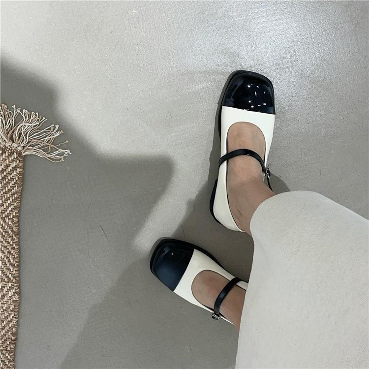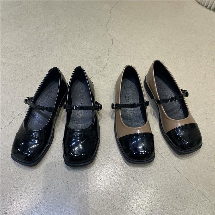 봄과 여름 2023 새로운 복고풍 색상 분할 한 단어 영국 가죽 신발 스퀘어 발가락 플랫 메리 제인 신발 여성 싱글 레이어 신발스토어 가기