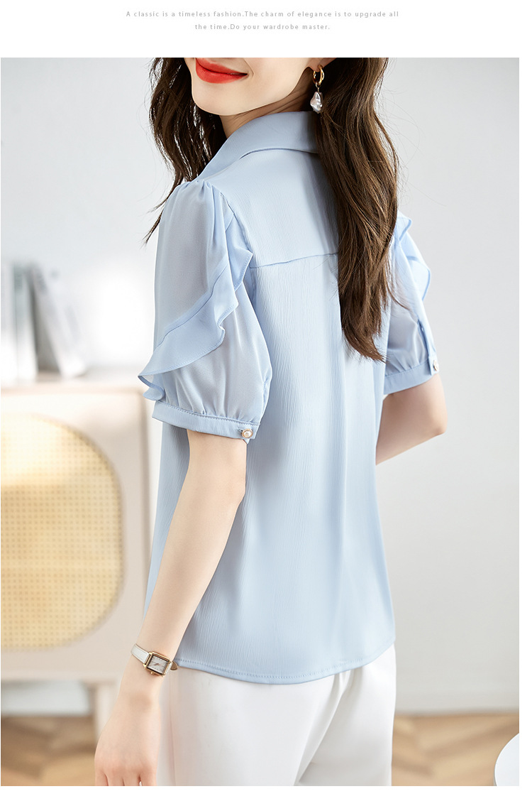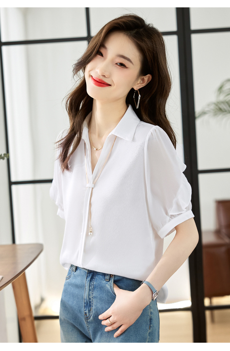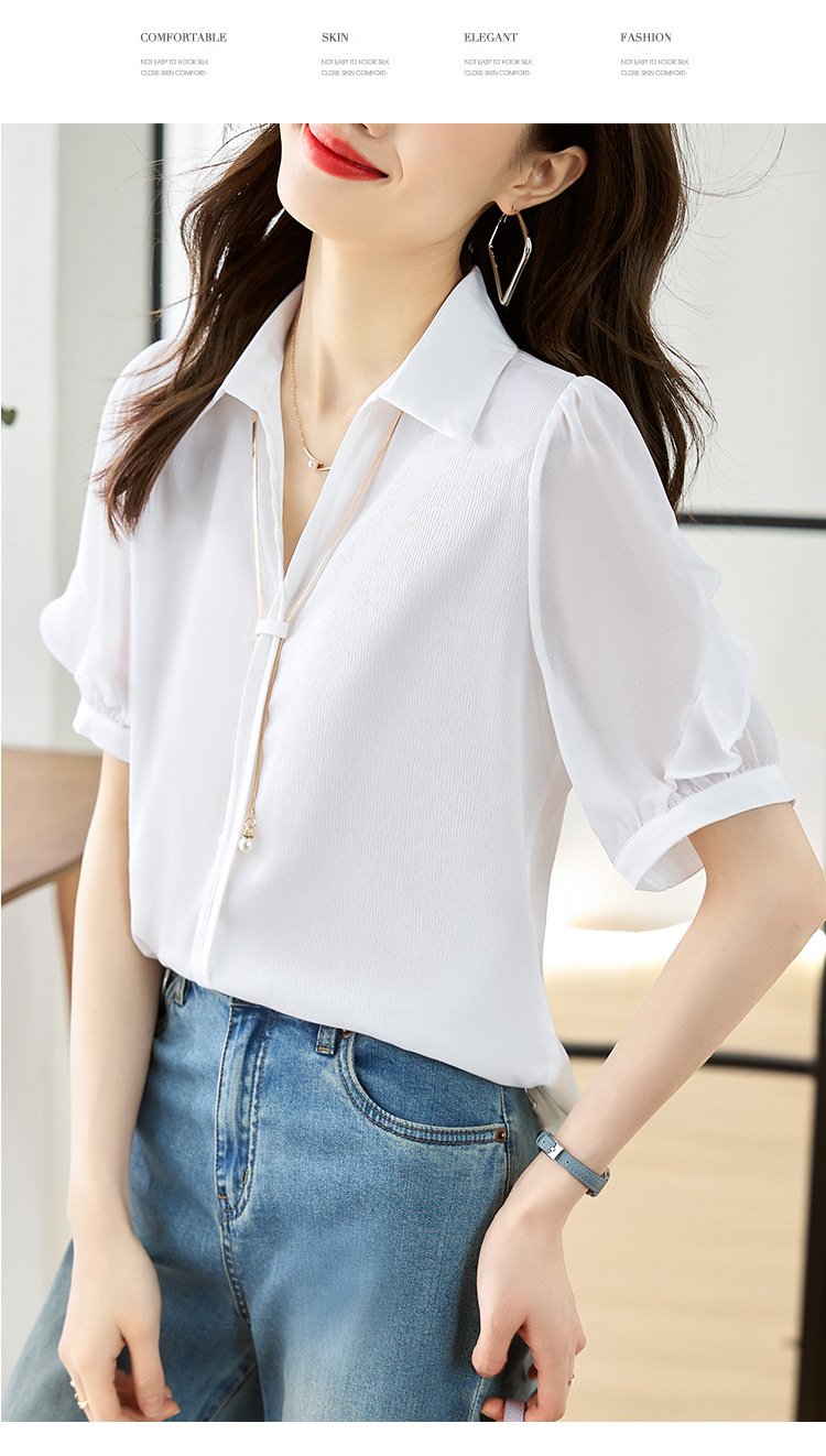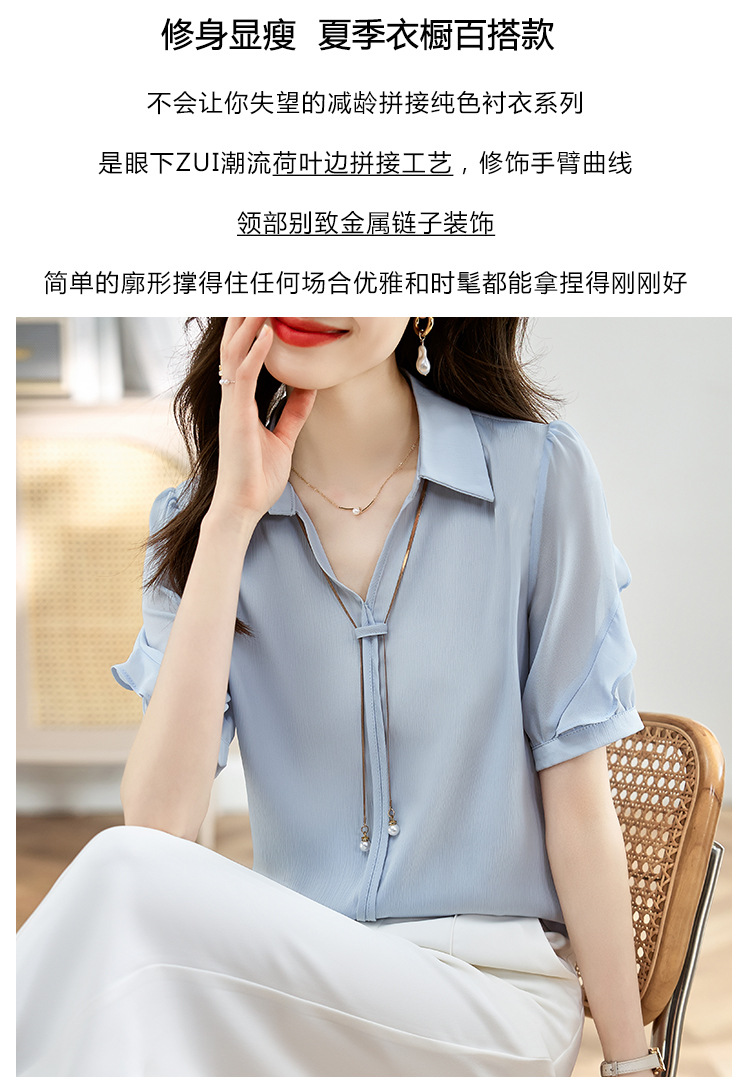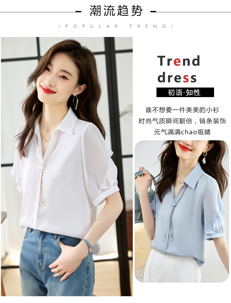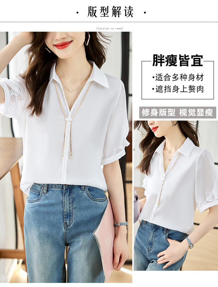 새틴 쉬폰 반팔 셔츠 여성 여름 디자인 감각 있는 새로운 패션 탑 프렌치 스타일 고급 셔츠스토어 가기