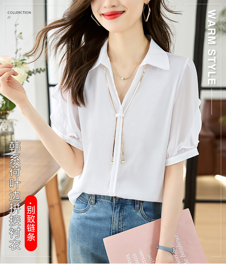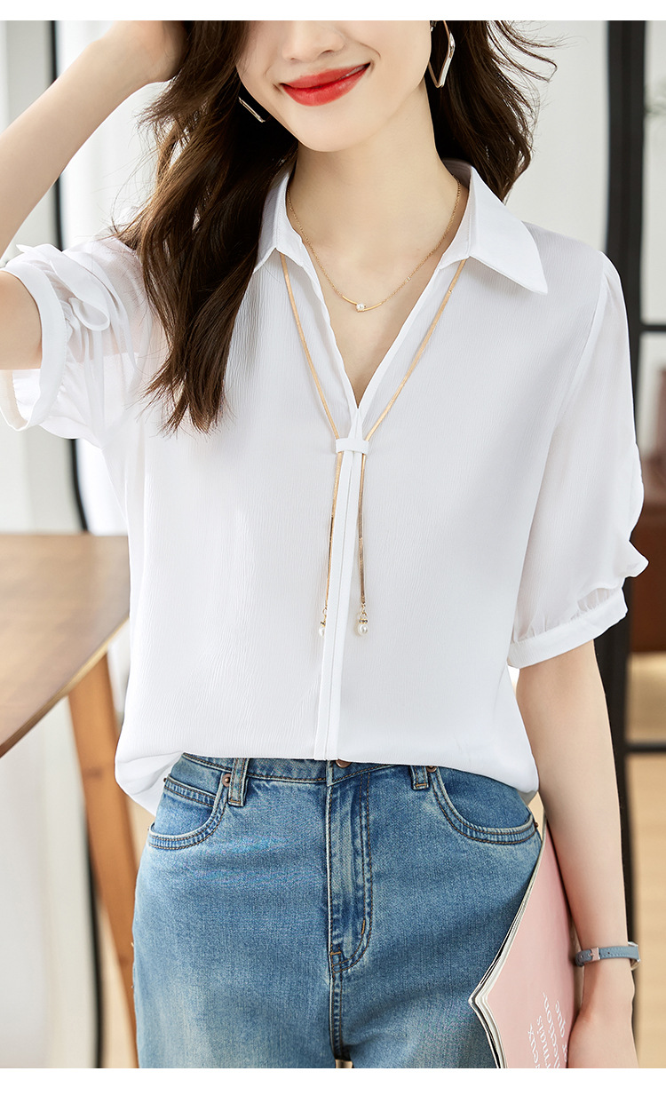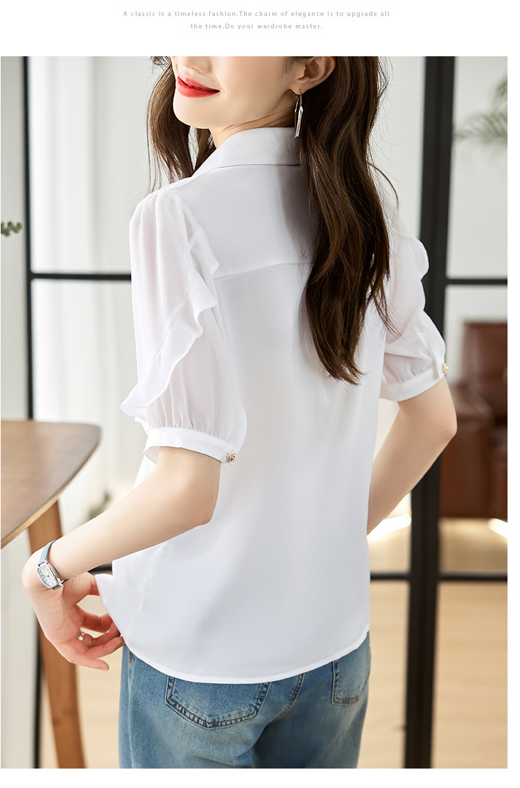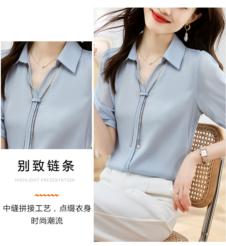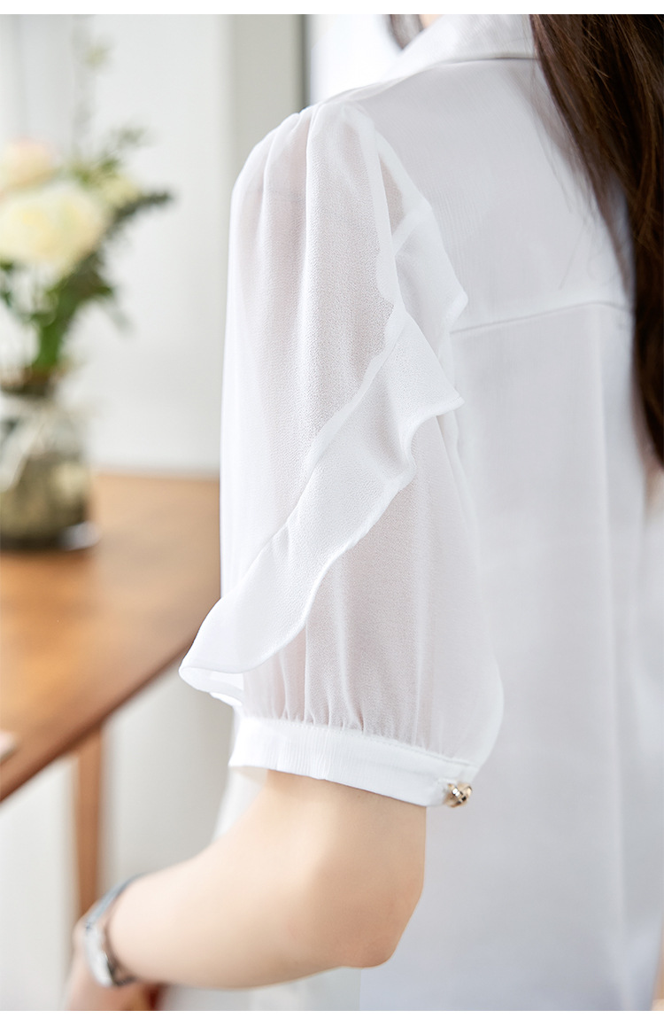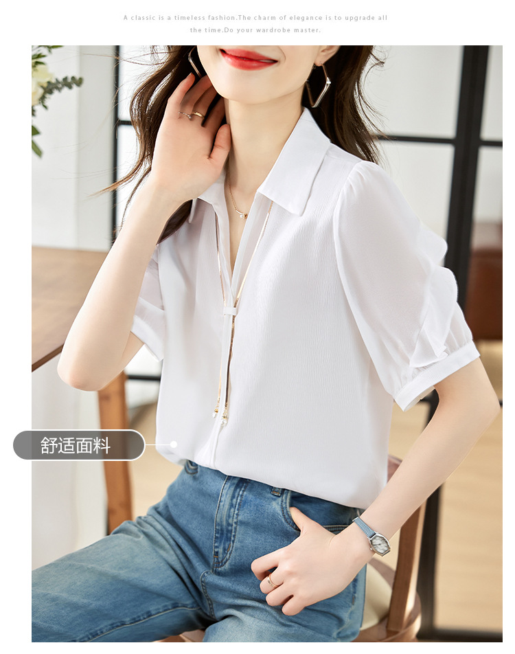 새틴 쉬폰 반팔 셔츠 여성 여름 디자인 감각 있는 새로운 패션 탑 프렌치 스타일 고급 셔츠스토어 가기