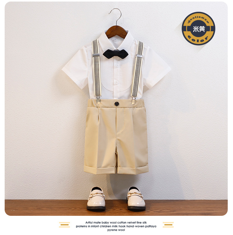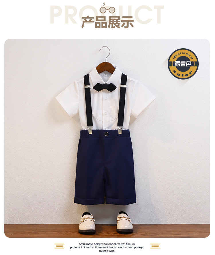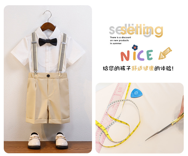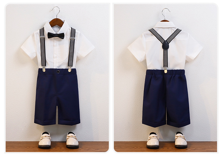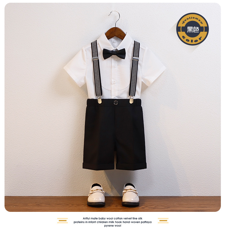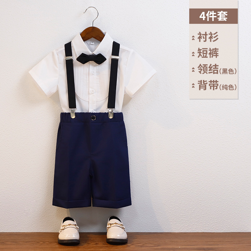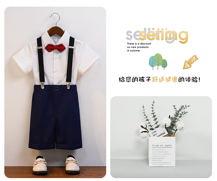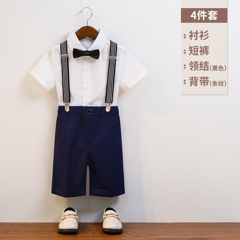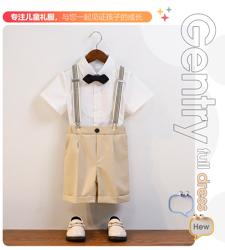 어린이 서스펜더 바지 세트 소년 어린이 공연 호스트 공연 의상 아기 피아노 년 된 꽃 소녀 원피스 짧은 소매스토어 가기