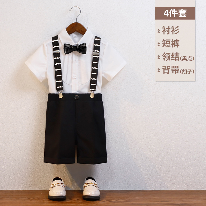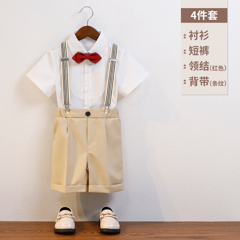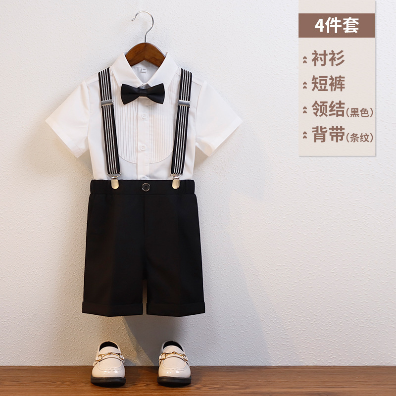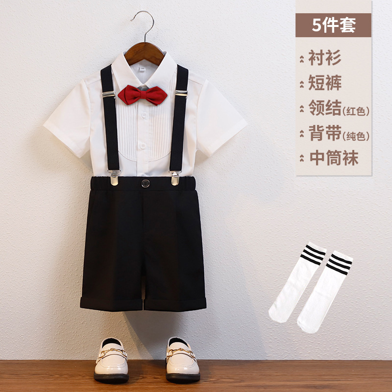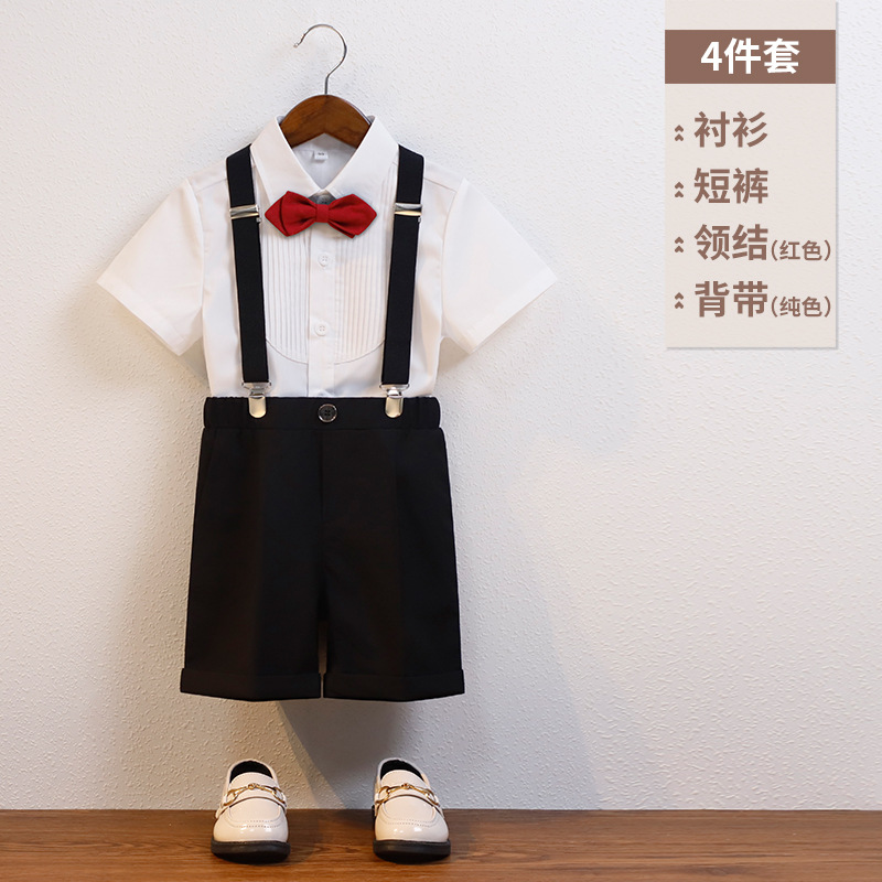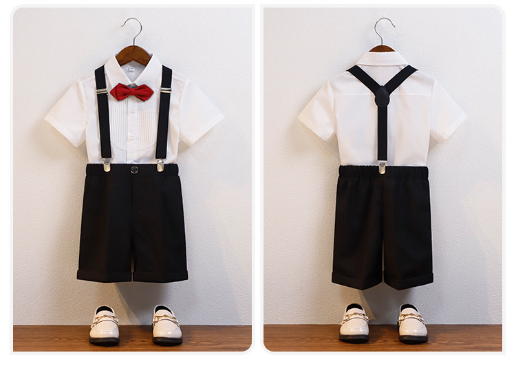 어린이 서스펜더 바지 세트 소년 어린이 공연 호스트 공연 의상 아기 피아노 년 된 꽃 소녀 원피스 짧은 소매