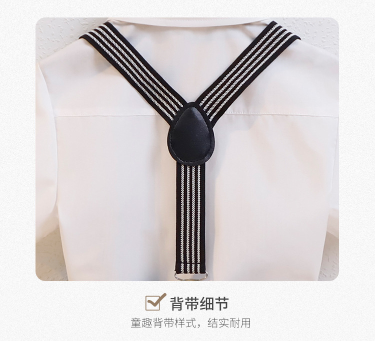 • [콧수염 멜빵] 블랙 4종세트 (8871 플리츠셔츠+반바지+멜빵+Y6Y1 도트보타이)