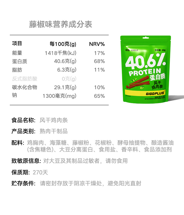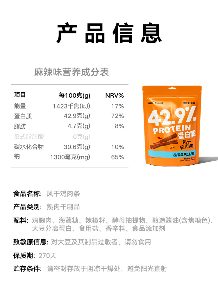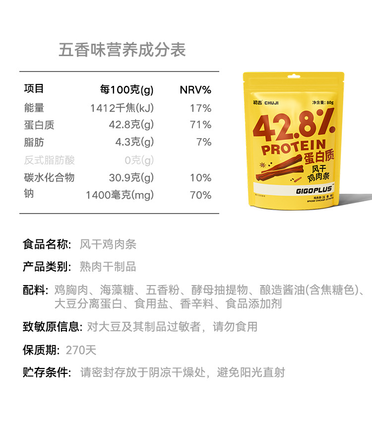 【특가】추지(初吉) 자연건조 닭가슴살 스트립, 식욕을 돋우고, 피트니스에 도움, 저지방, 저칼로리, 치아에 좋은 고단백 건강 간식