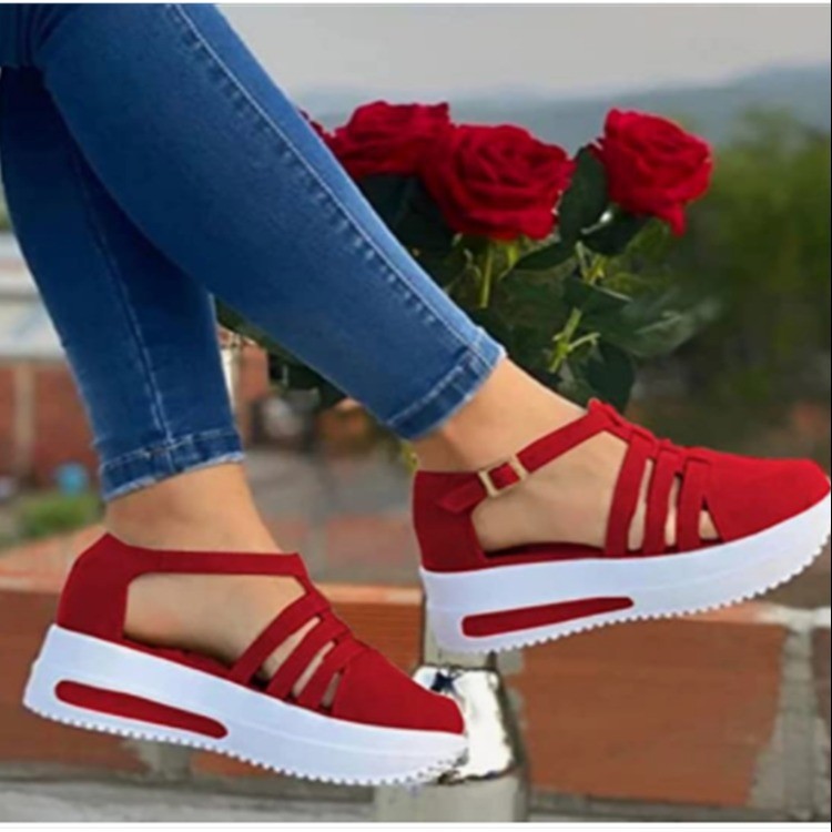 국경 간 대외 무역 플러스 사이즈 2024 새로운 여성 신발 유럽 및 미국 캐주얼 플랫폼은 폐쇄 발가락 중공 폴리 우레탄 바닥 샌들을 증가 시켰습니다.