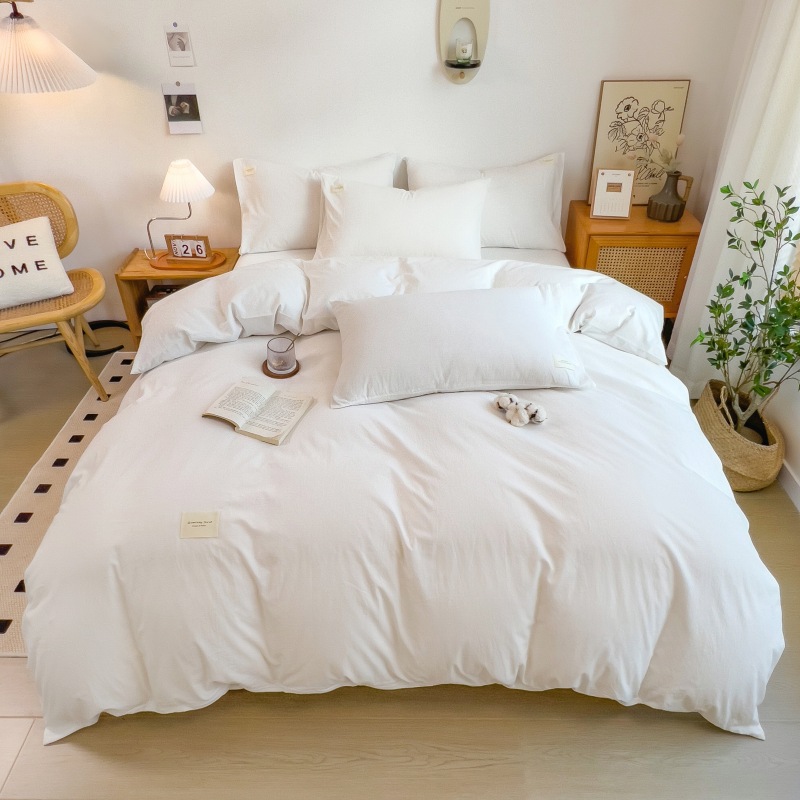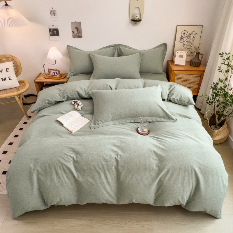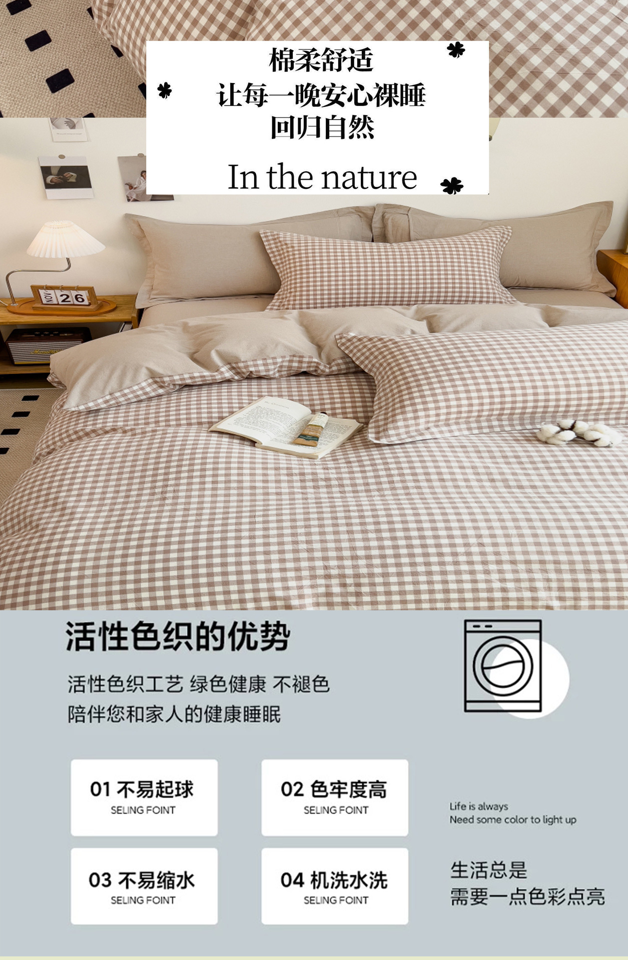 인쇄되지 않은 스타일 세트 간단한 격자 무늬 침대 시트 퀼트 커버 부드러운 침대 커버 봄 및 여름 세척면 이불 커버 4 피스 세트스토어 가기