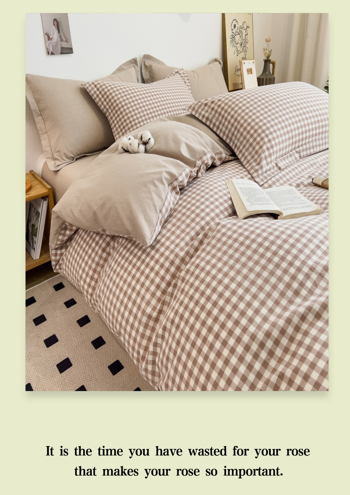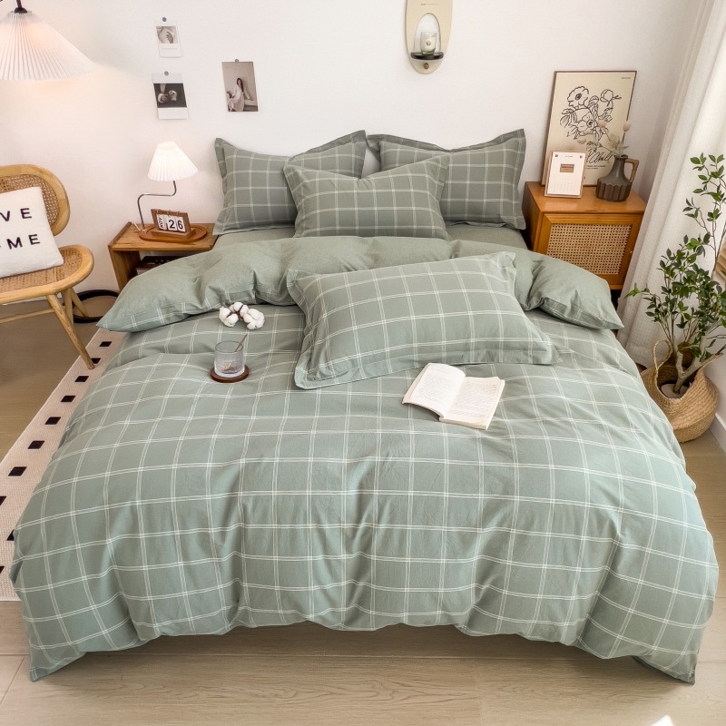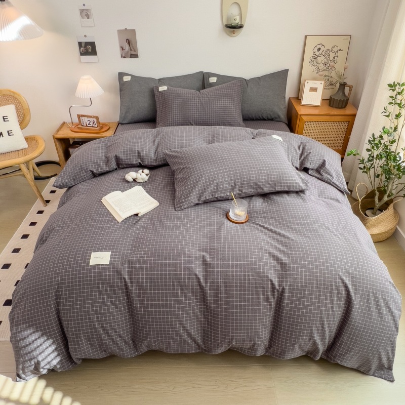 인쇄되지 않은 스타일 세트 간단한 격자 무늬 침대 시트 퀼트 커버 부드러운 침대 커버 봄 및 여름 세척면 이불 커버 4 피스 세트