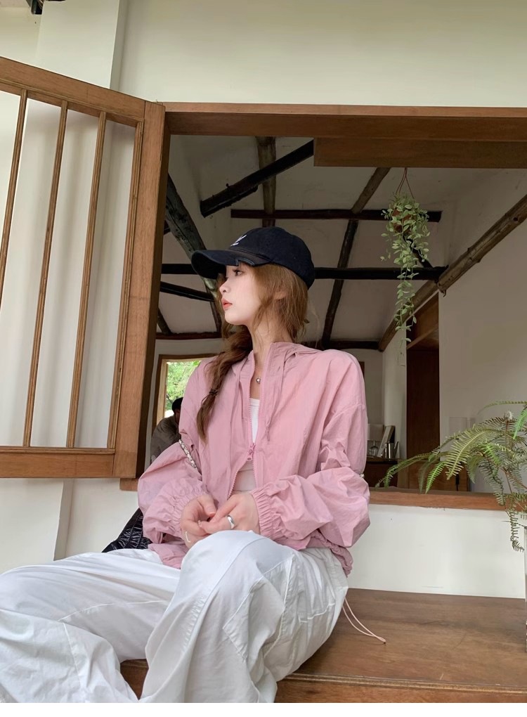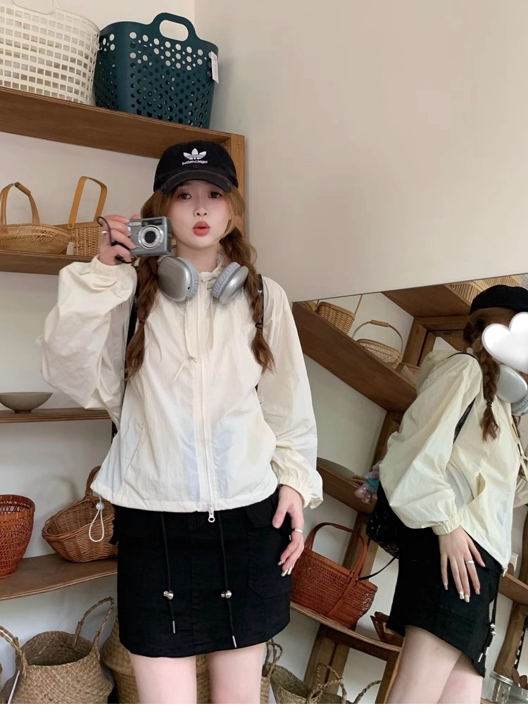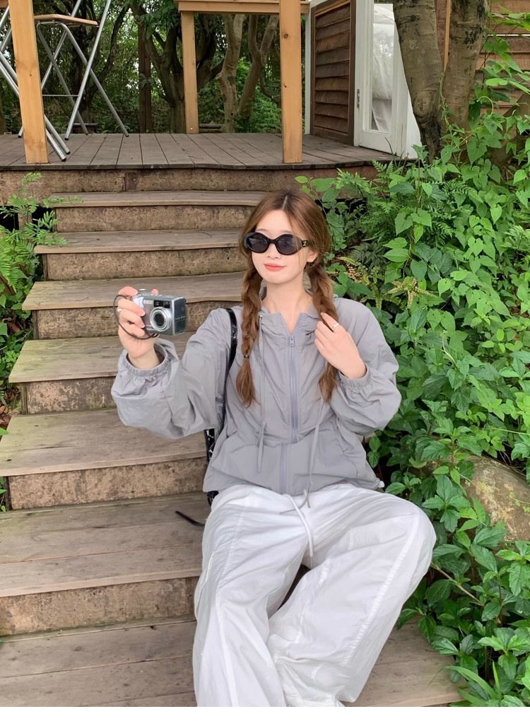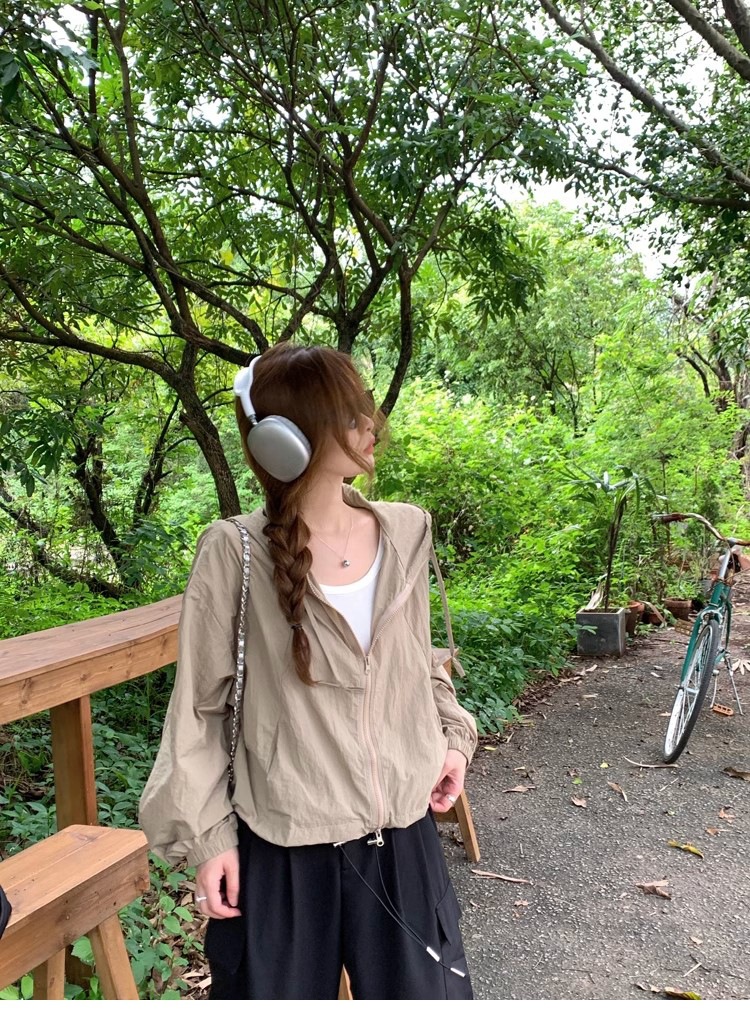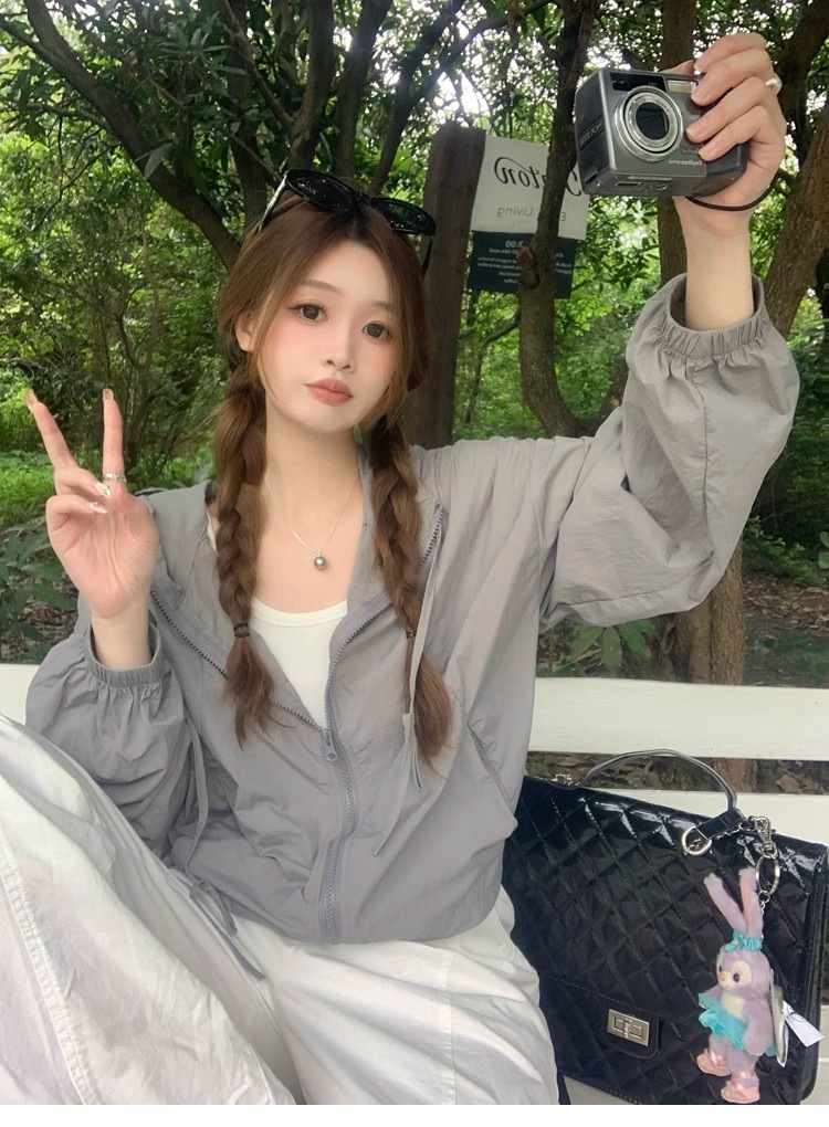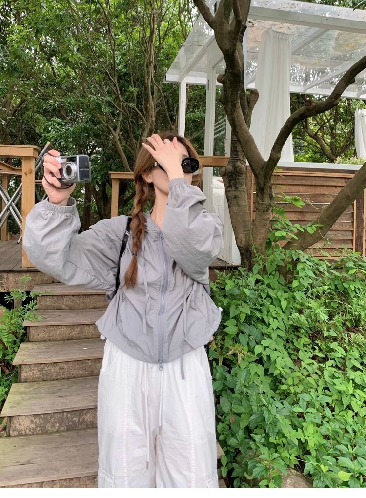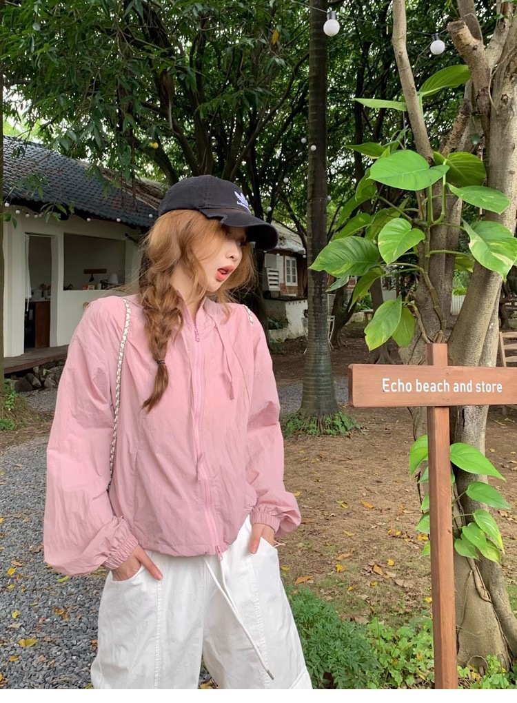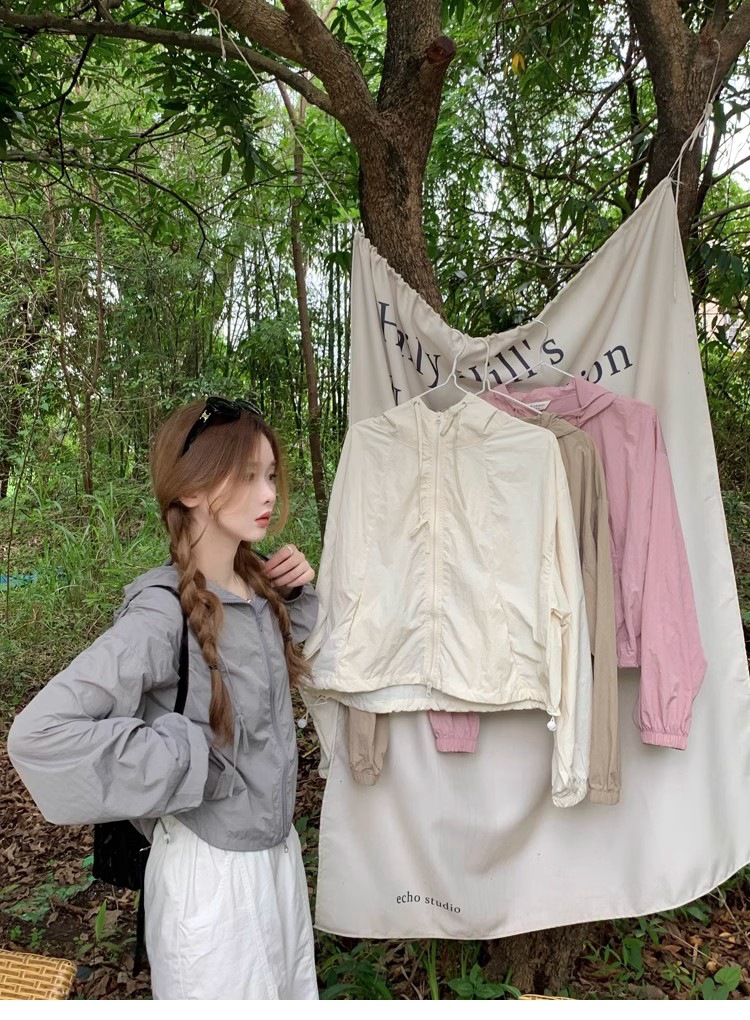 봄과 가을 여름 인터넷 연예인 경량 선 스크린 의류 여성 아우터웨어 후드 드로우 스트링 긴 소매 캐주얼 스포츠 선 스크린 코트 여성 트렌디스토어 가기