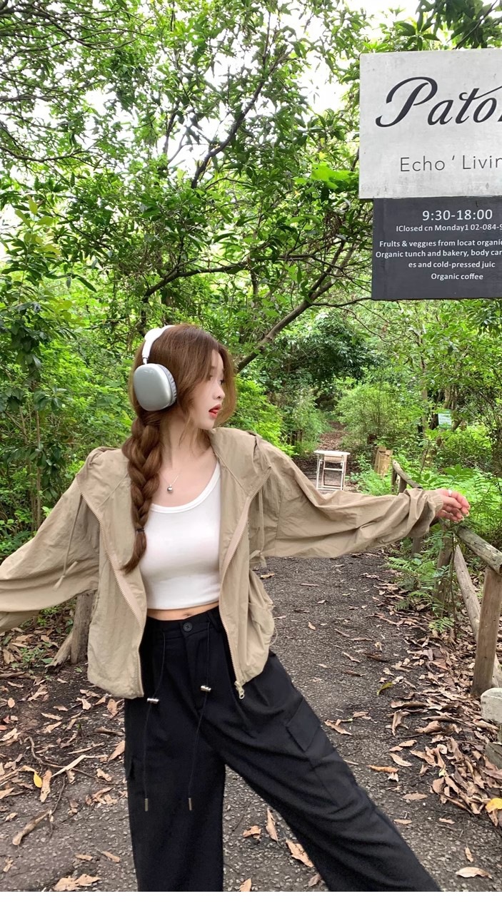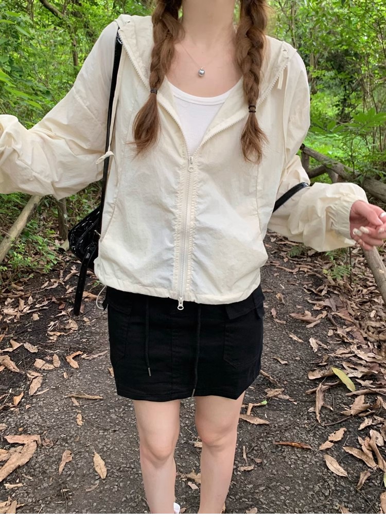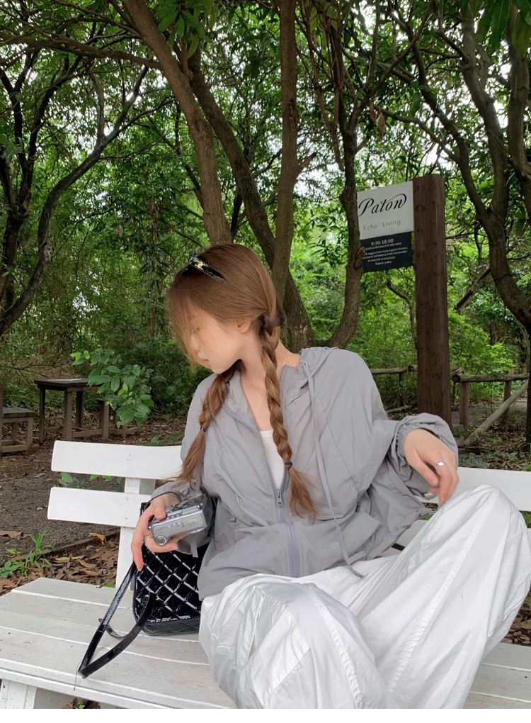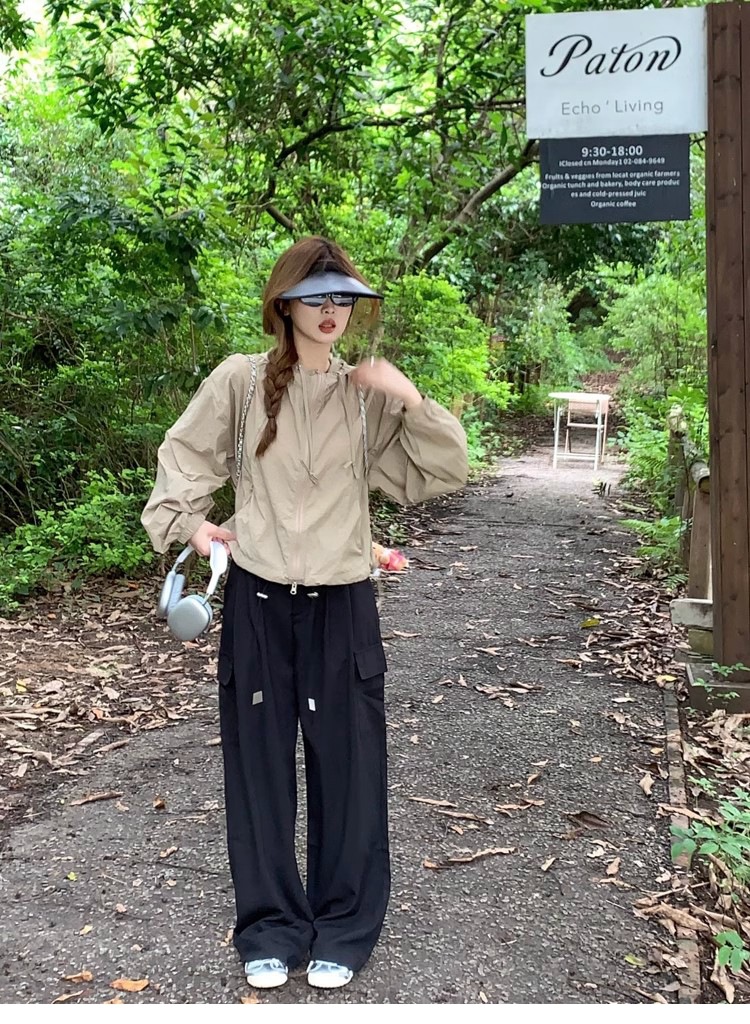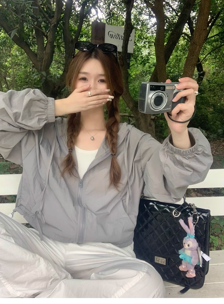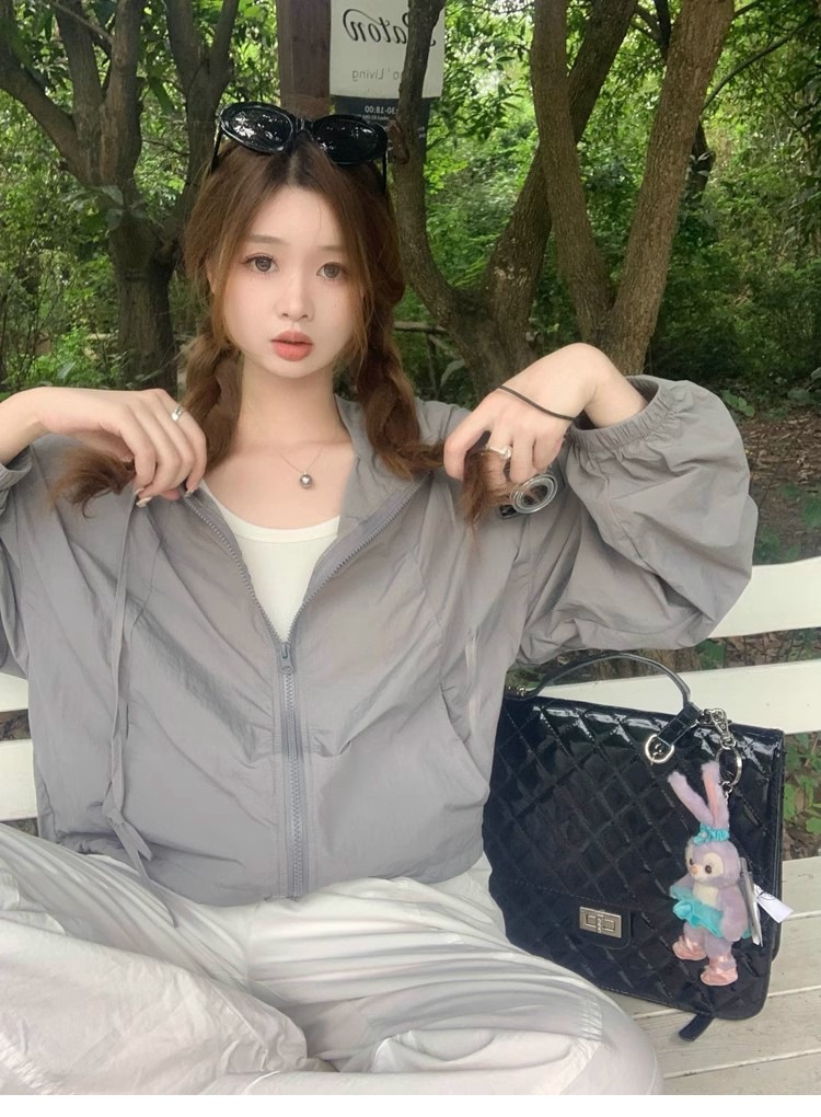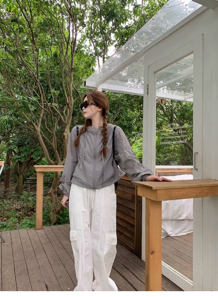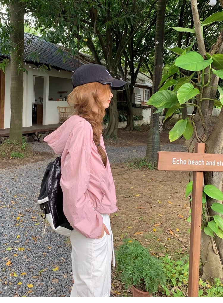 봄과 가을 여름 인터넷 연예인 경량 선 스크린 의류 여성 아우터웨어 후드 드로우 스트링 긴 소매 캐주얼 스포츠 선 스크린 코트 여성 트렌디스토어 가기