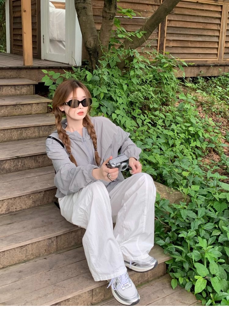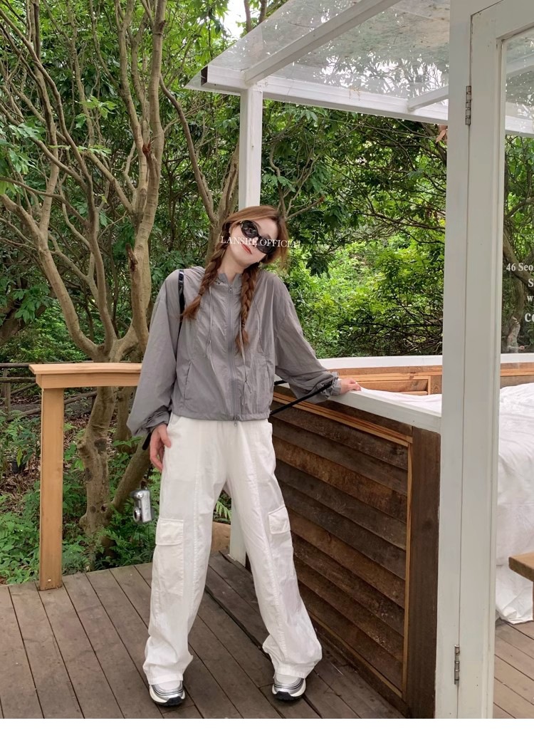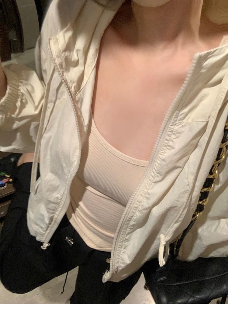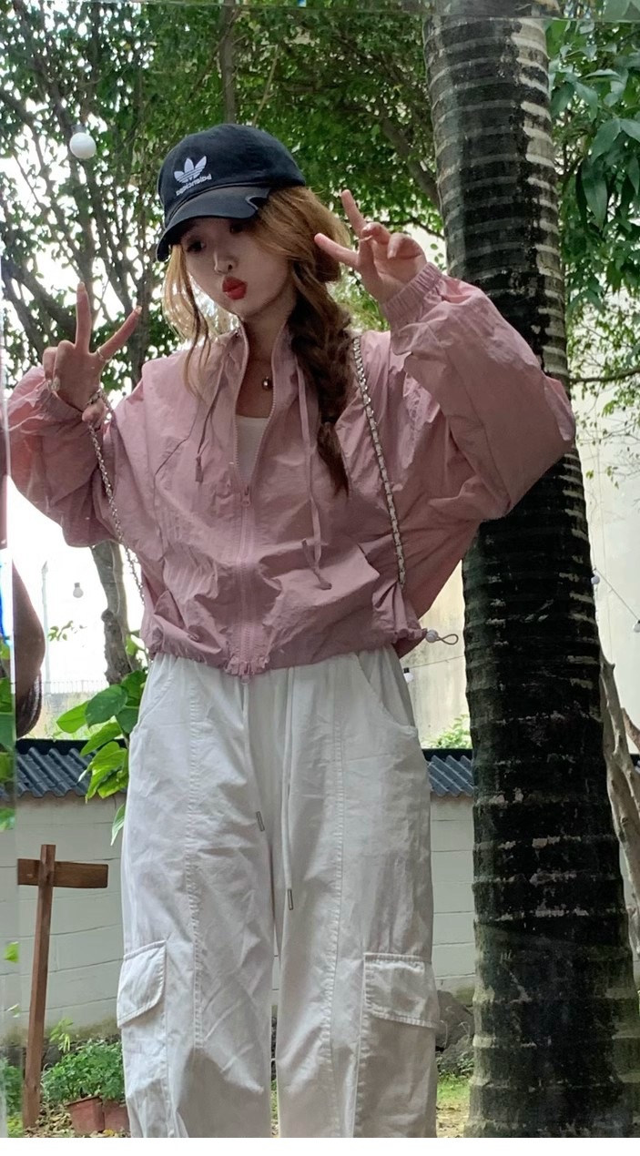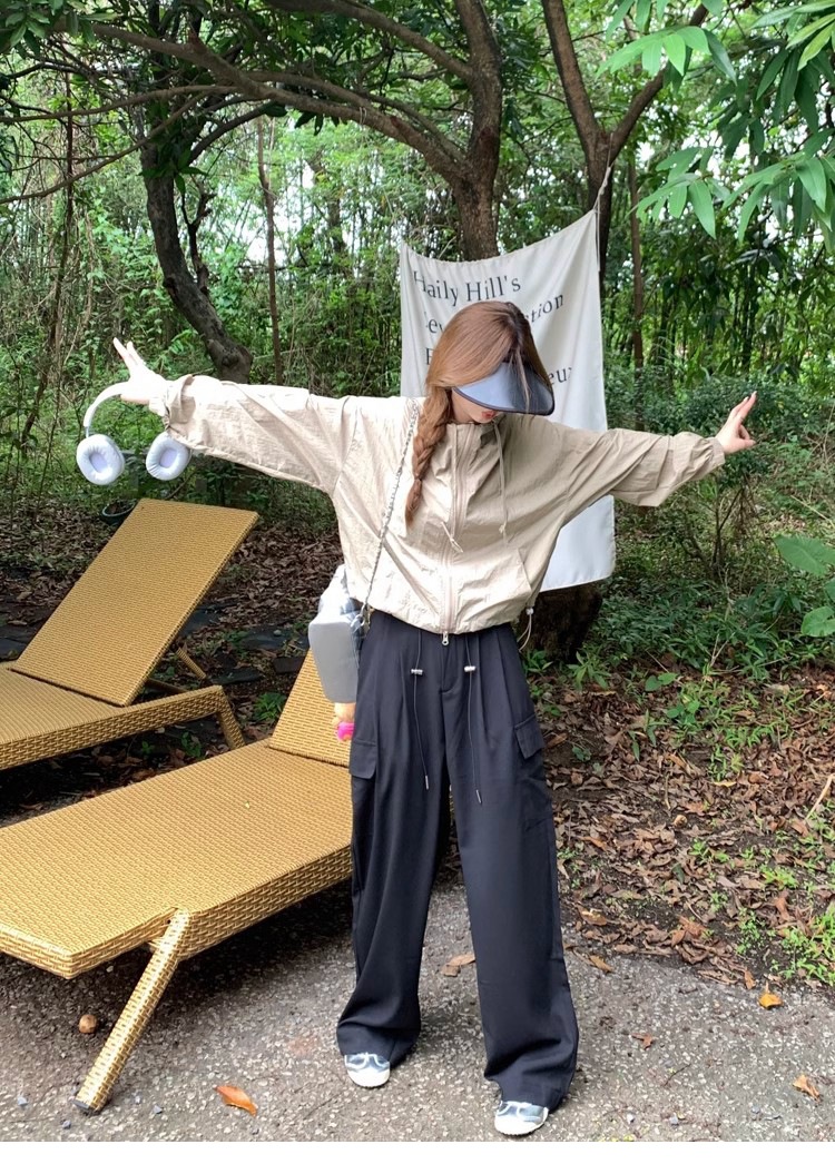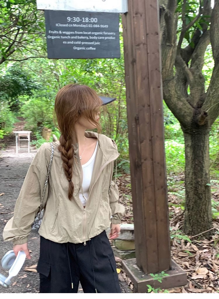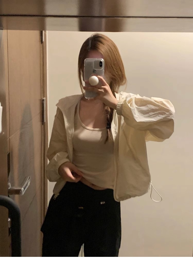 봄과 가을 여름 인터넷 연예인 경량 선 스크린 의류 여성 아우터웨어 후드 드로우 스트링 긴 소매 캐주얼 스포츠 선 스크린 코트 여성 트렌디스토어 가기