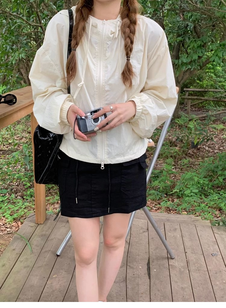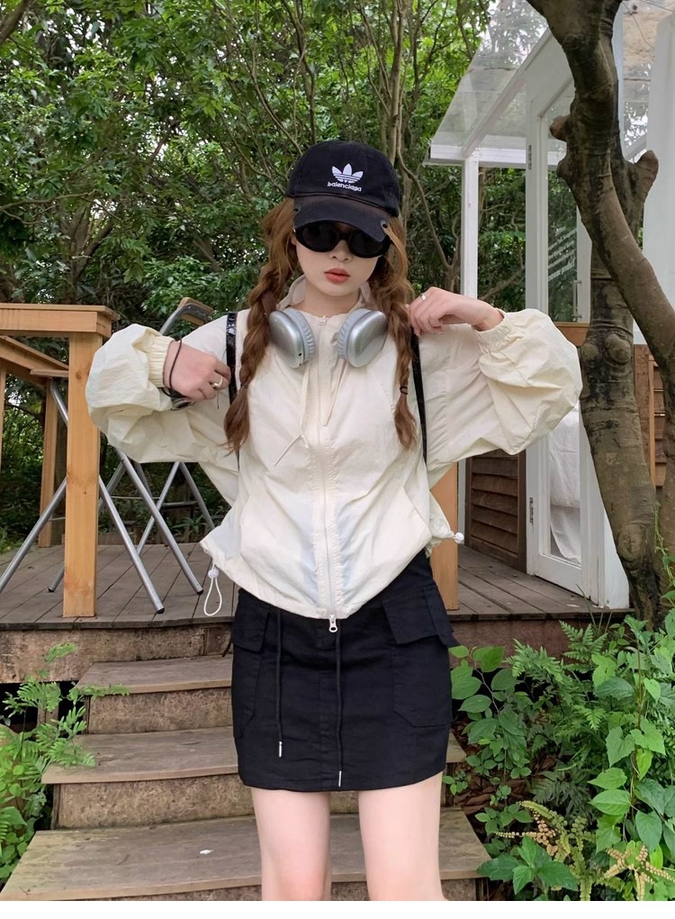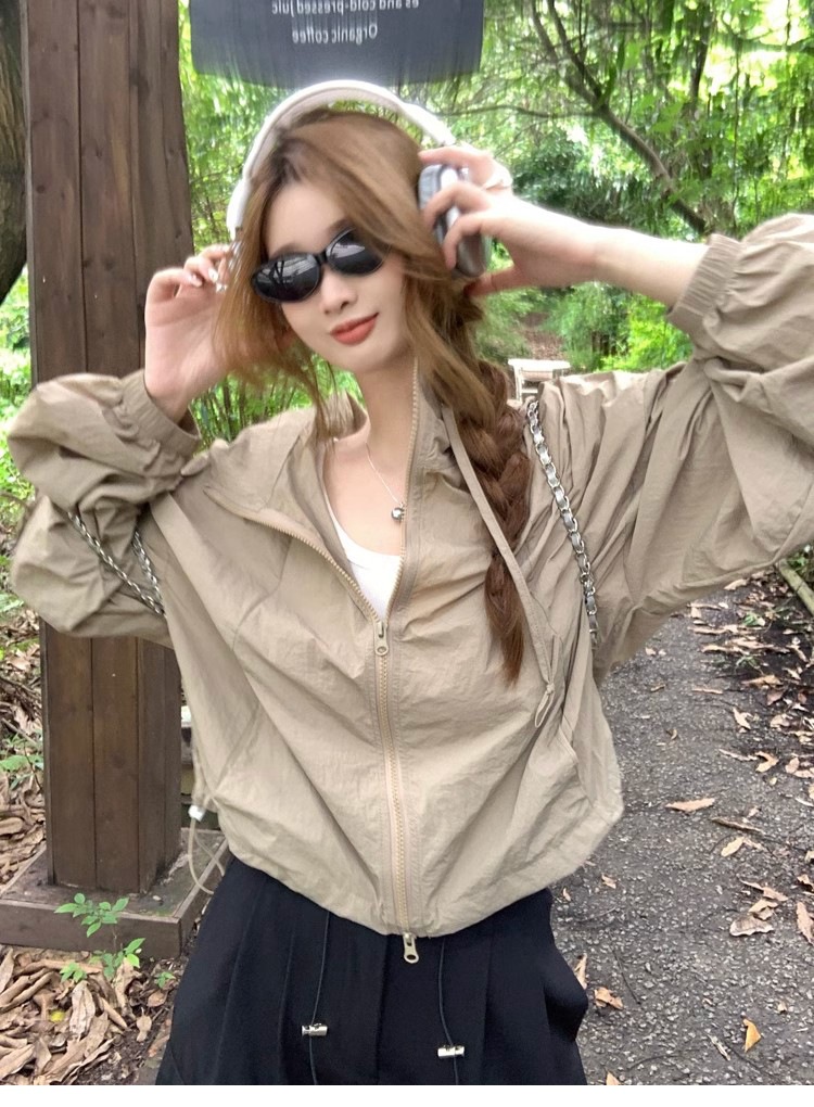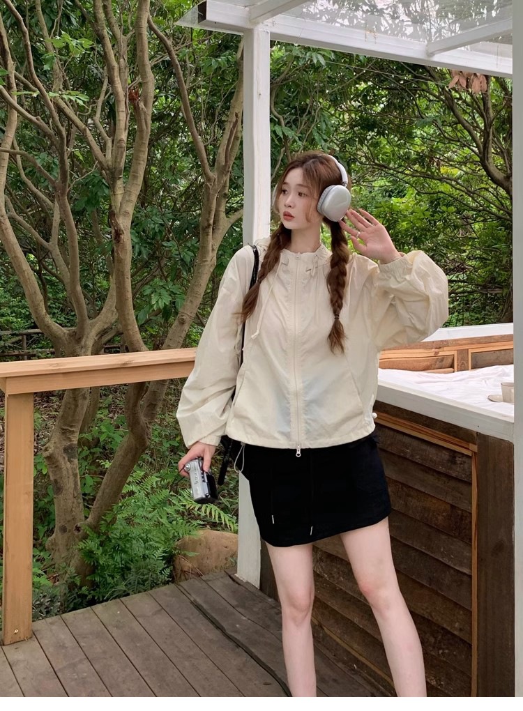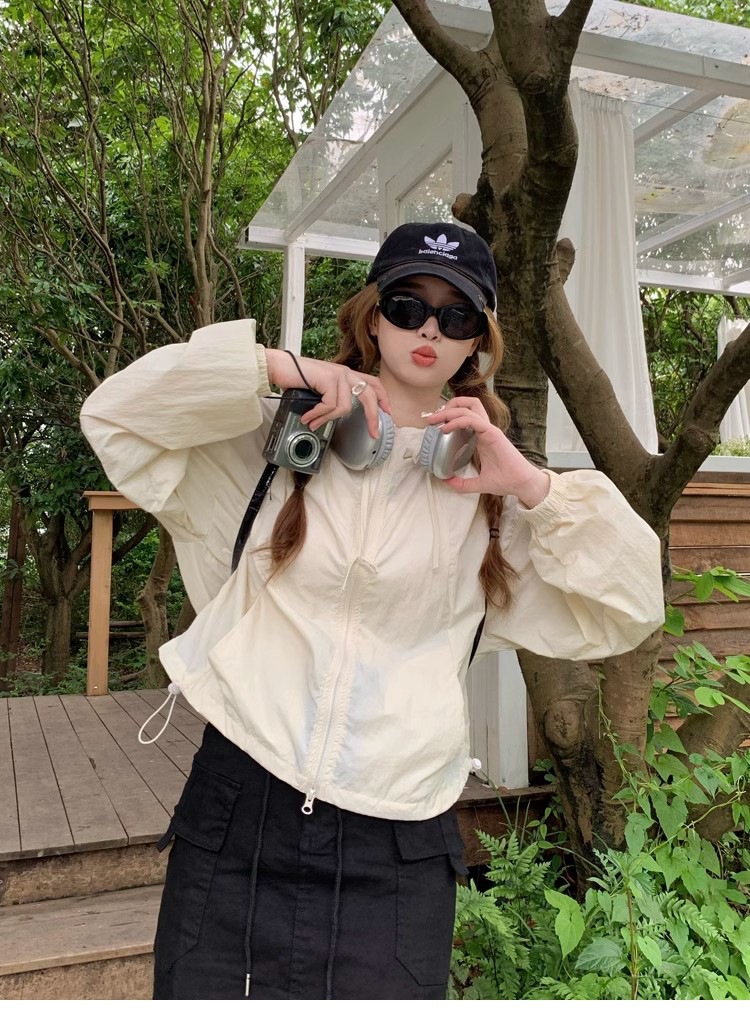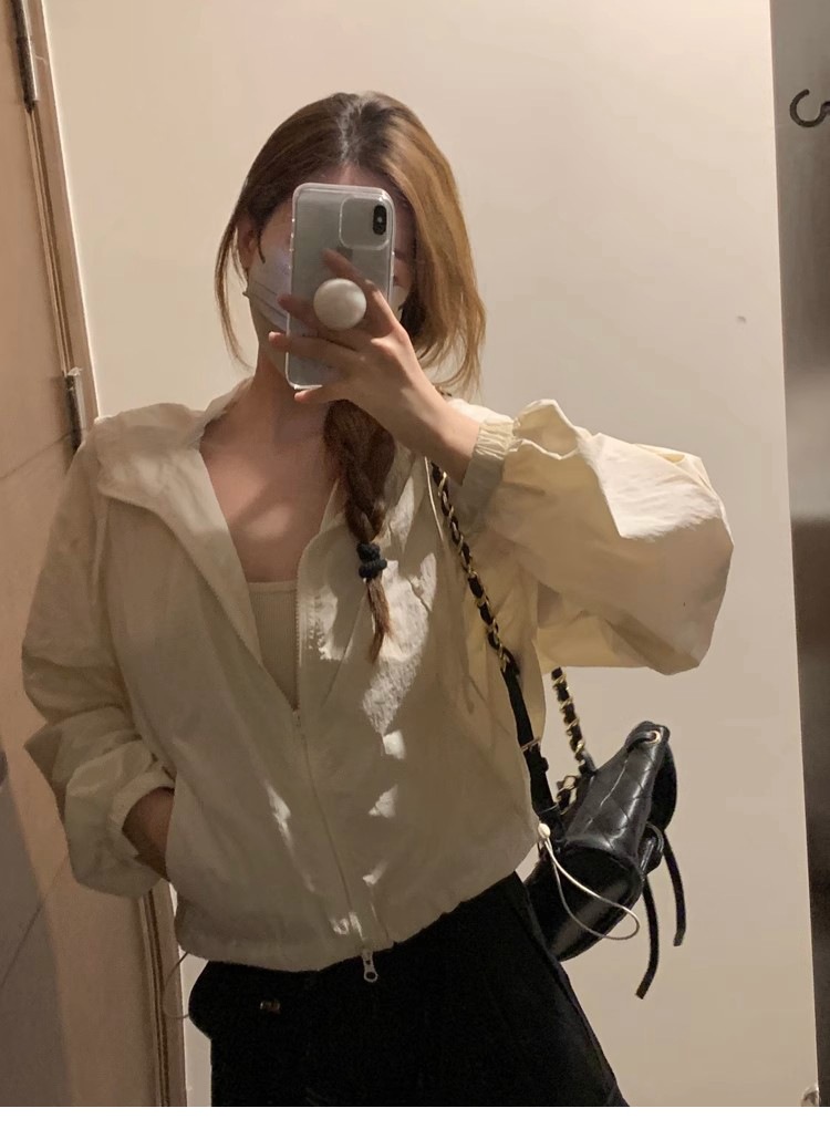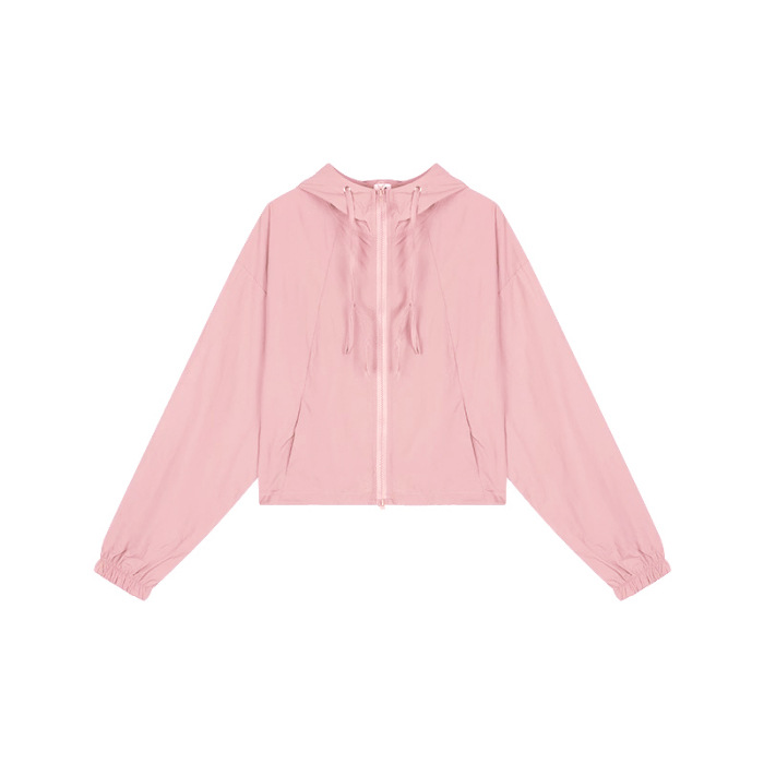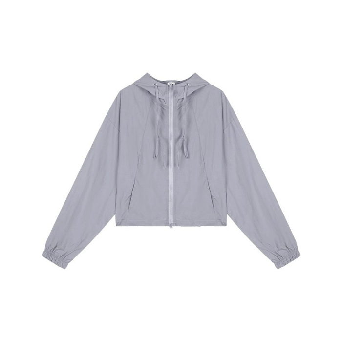 봄과 가을 여름 인터넷 연예인 경량 선 스크린 의류 여성 아우터웨어 후드 드로우 스트링 긴 소매 캐주얼 스포츠 선 스크린 코트 여성 트렌디