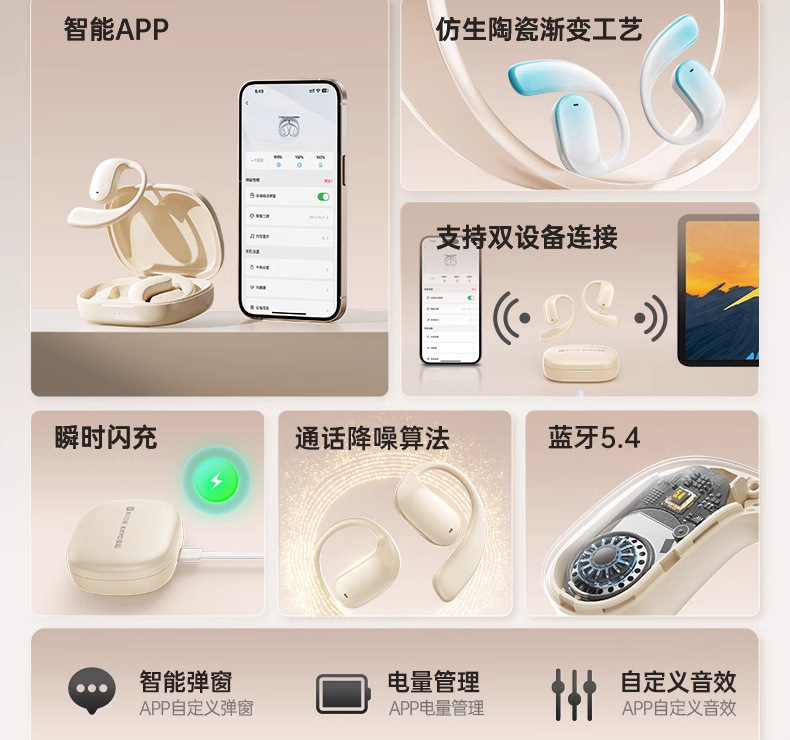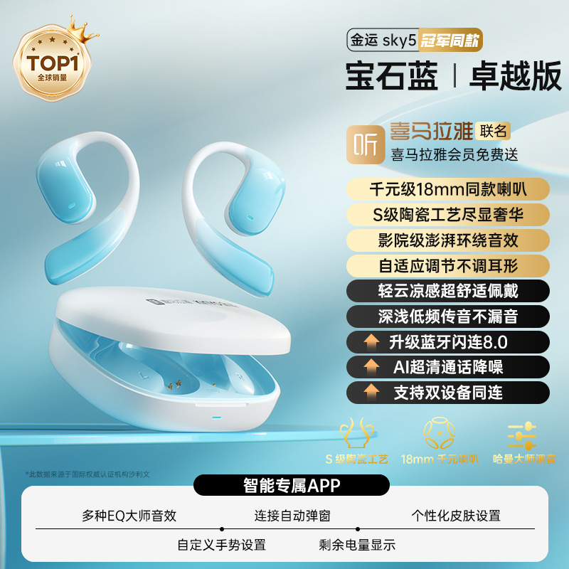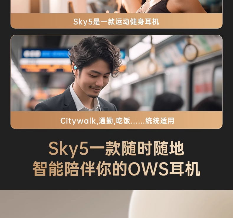 신형 sky5 무선 블루투스 이어폰, 오픈형 귀걸이형 스포츠 노이즈 캔슬링 블루투스 이어폰, 오래가는 배터리스토어 가기
