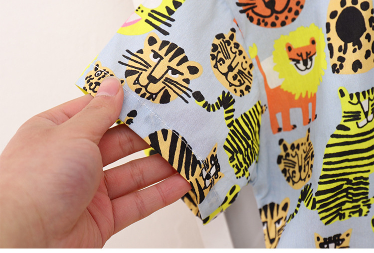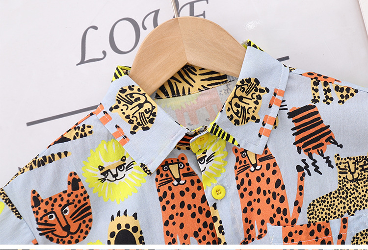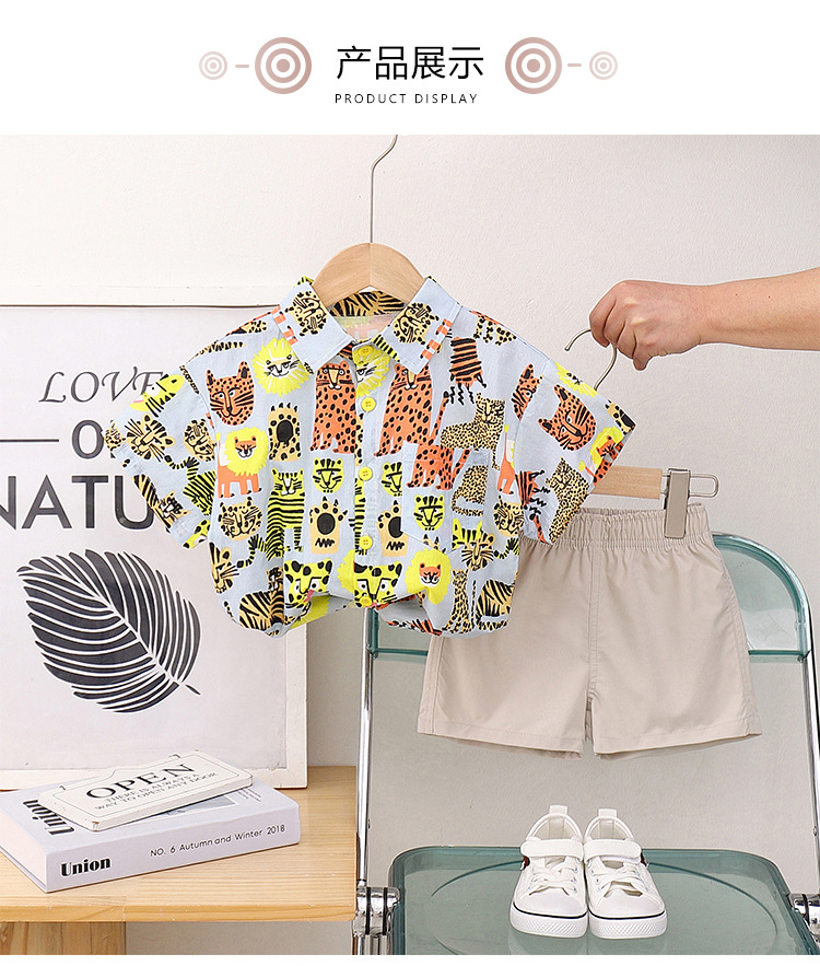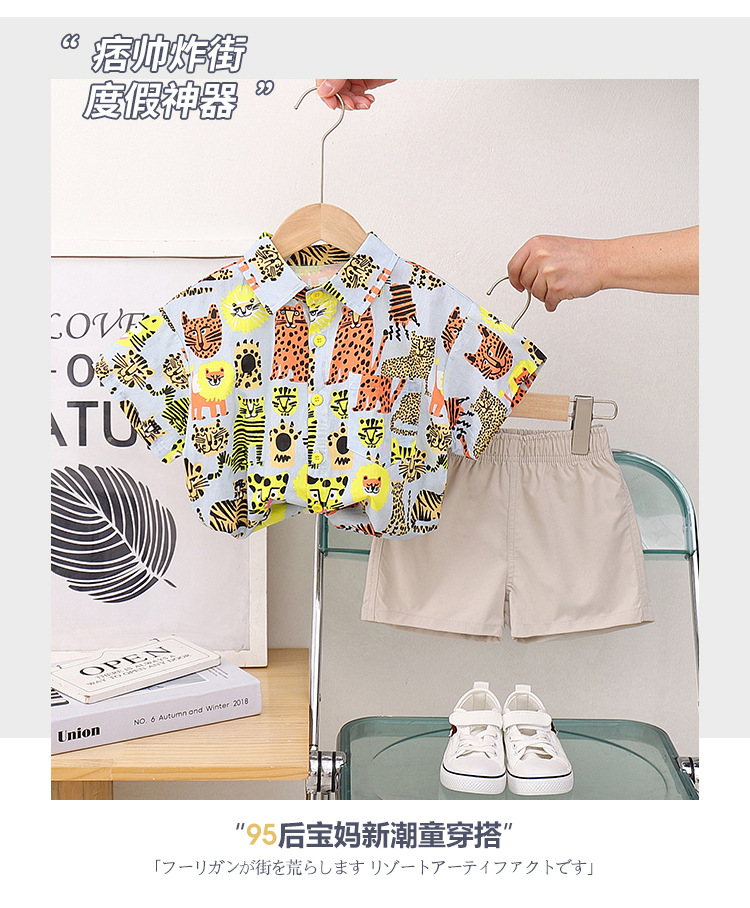 어린이 반팔 꽃 무늬 셔츠 여름 새 소년 동물 홍콩 스타일 꽃 무늬 셔츠 반바지 세트 아기 캐주얼 여름