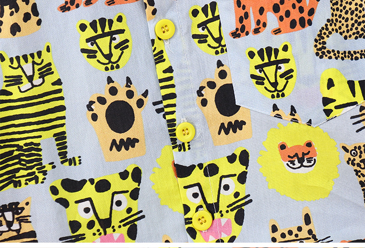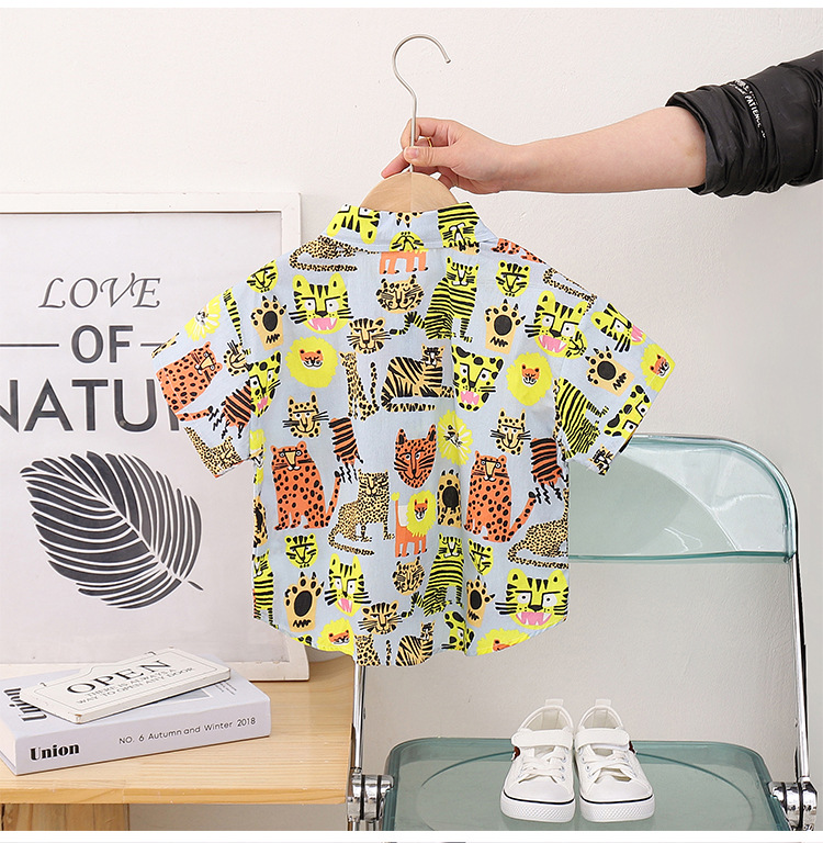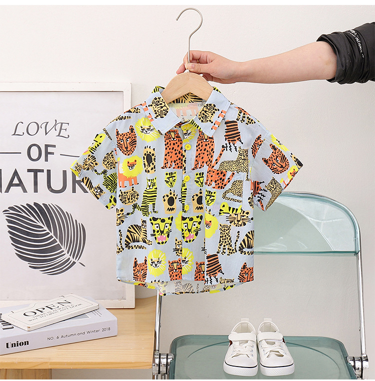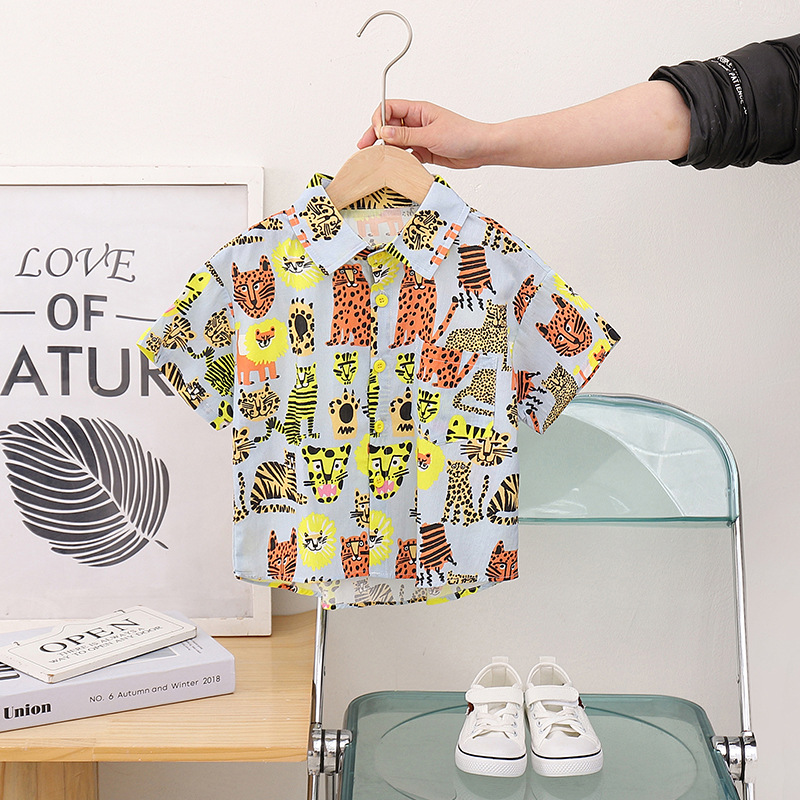 어린이 반팔 꽃 무늬 셔츠 여름 새 소년 동물 홍콩 스타일 꽃 무늬 셔츠 반바지 세트 아기 캐주얼 여름스토어 가기