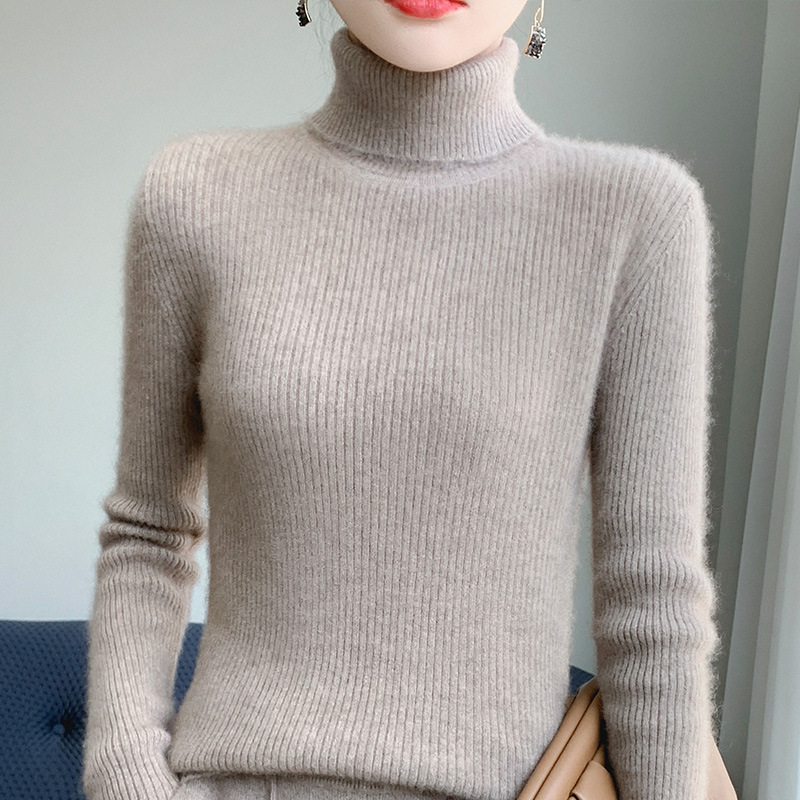 도매 여성 높은 옷깃 스트라이프 스웨터 가을과 겨울 슬림 핏 따뜻한 올 매치 패션 도시 화이트 칼라 내부 스웨터스토어 가기