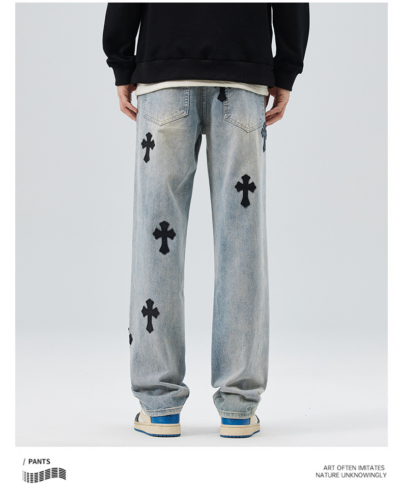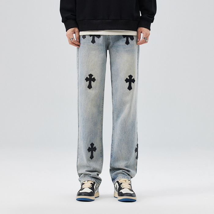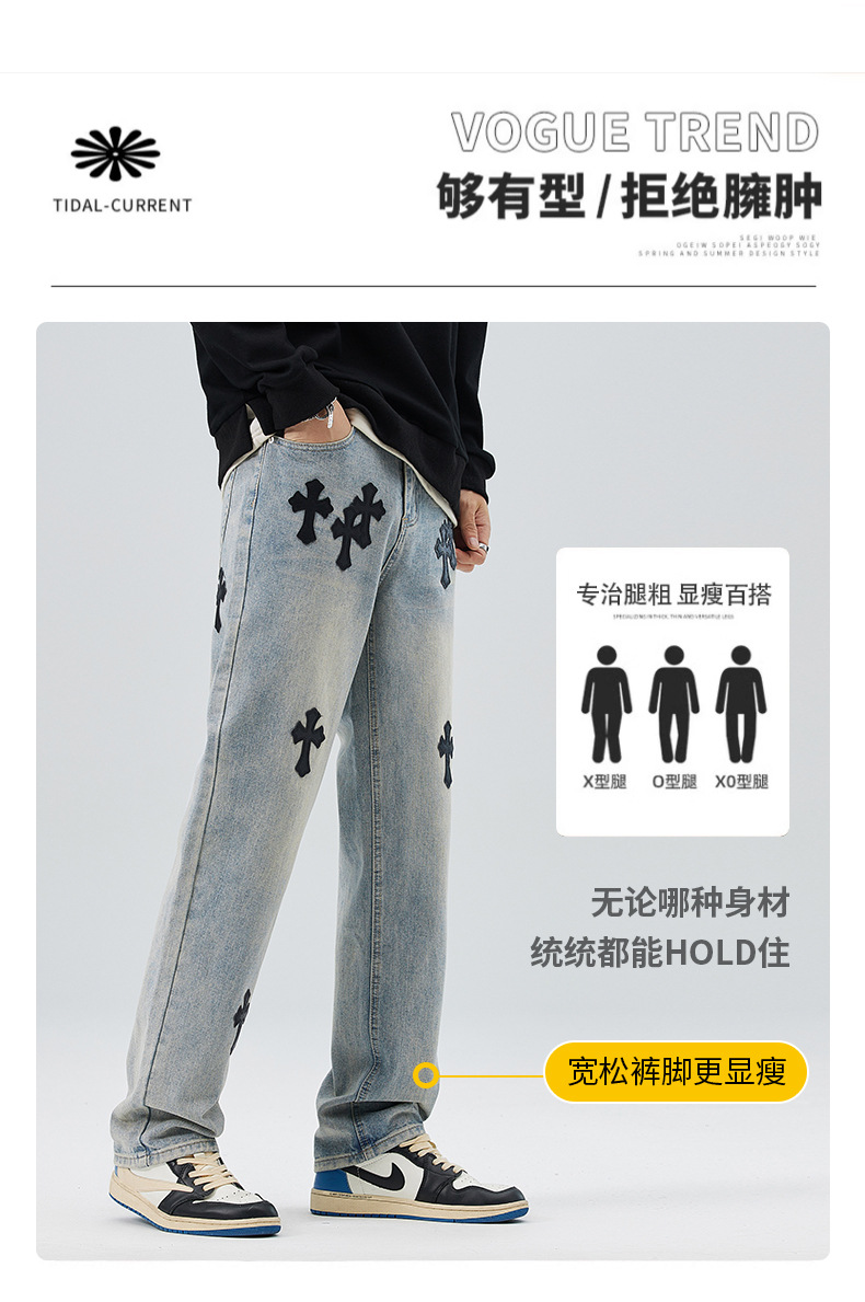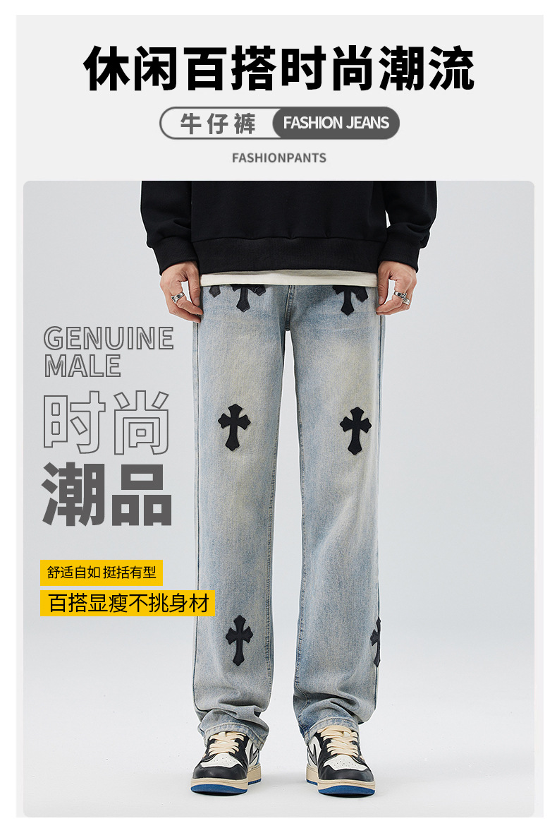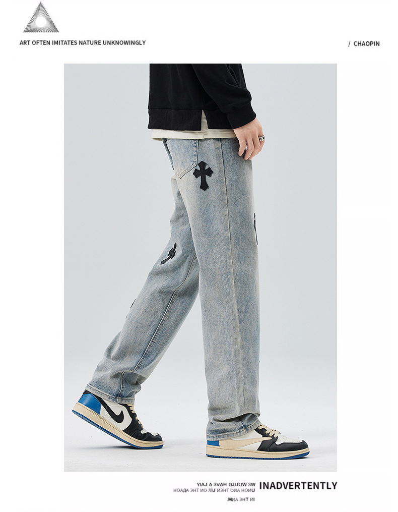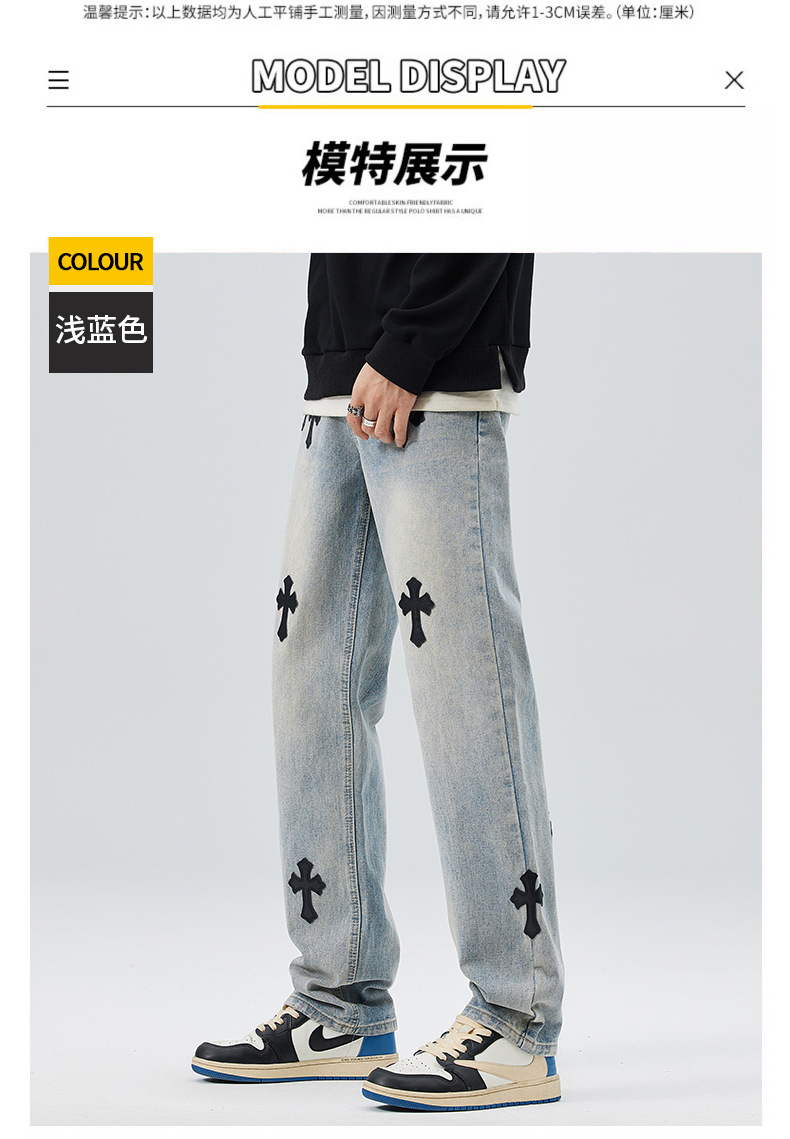2025 신상 남성용 모노크롬 스트레이트 청바지 일본식 솔리드 컬러 화이트 워싱 디스트레스드 트렌디 캐주얼 청바지스토어 가기