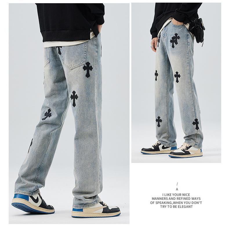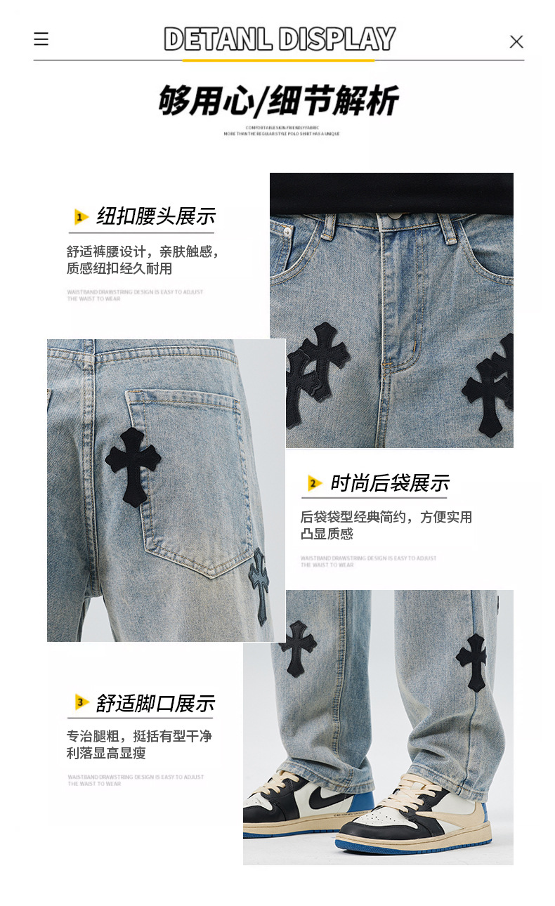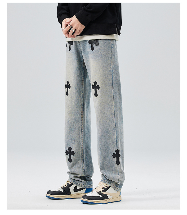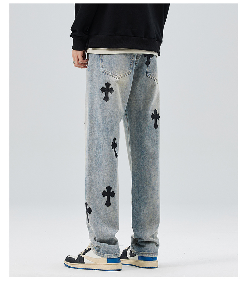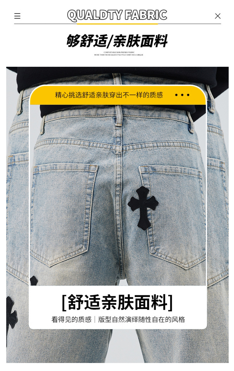 2025 신상 남성용 모노크롬 스트레이트 청바지 일본식 솔리드 컬러 화이트 워싱 디스트레스드 트렌디 캐주얼 청바지스토어 가기