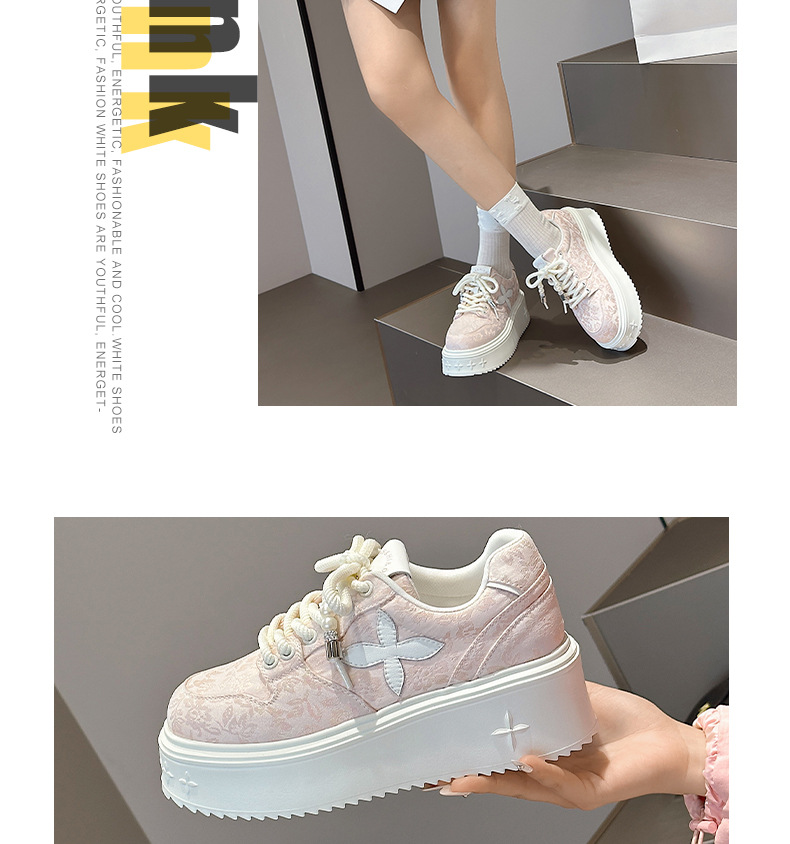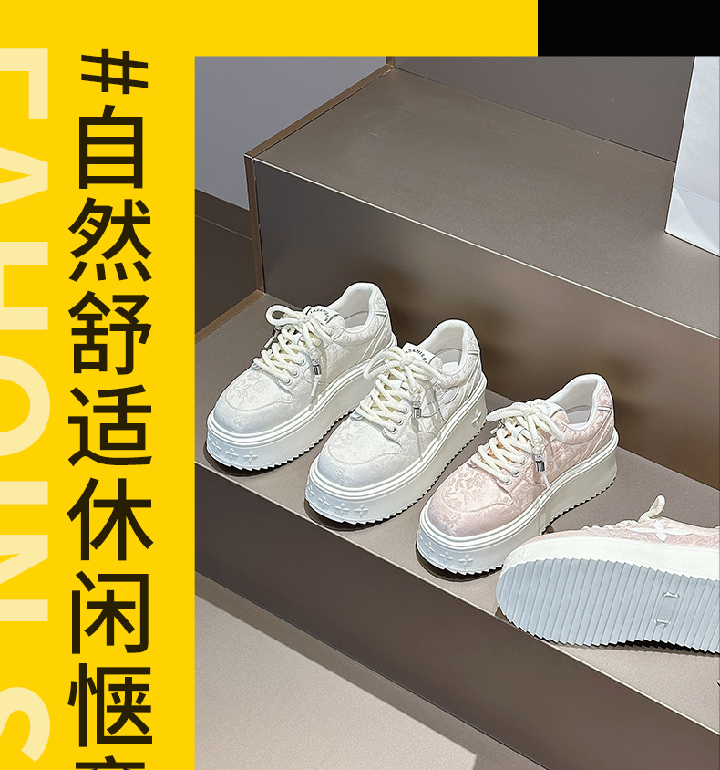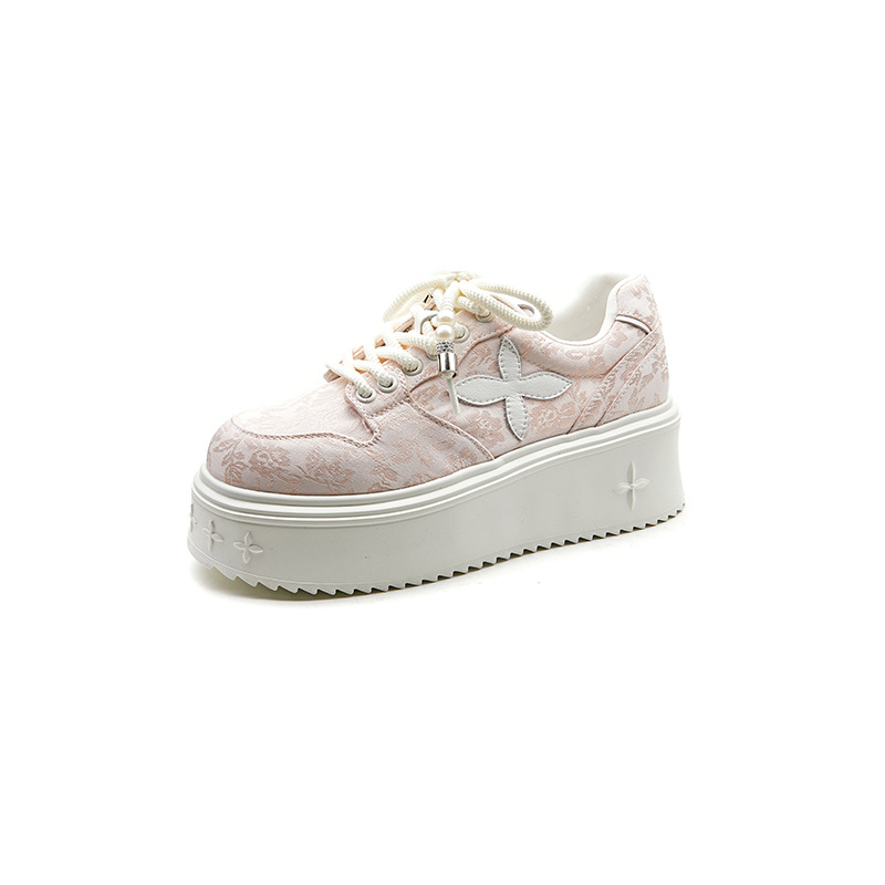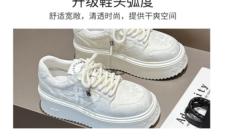 여름 중국풍 네잎클로버 화이트 여성 운동화 2024 자수 니치 디자인 아빠 신발 캐주얼 두꺼운 밑창 운동화 도매 편안함스토어 가기