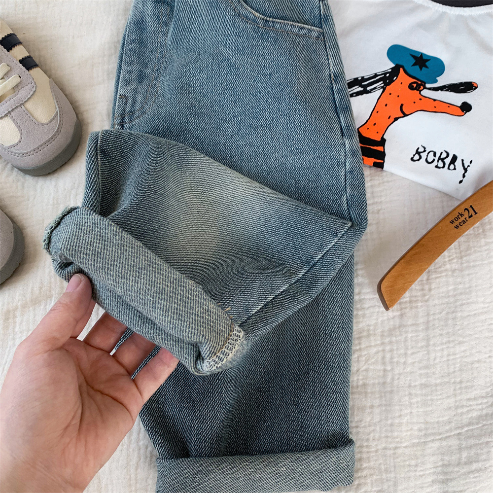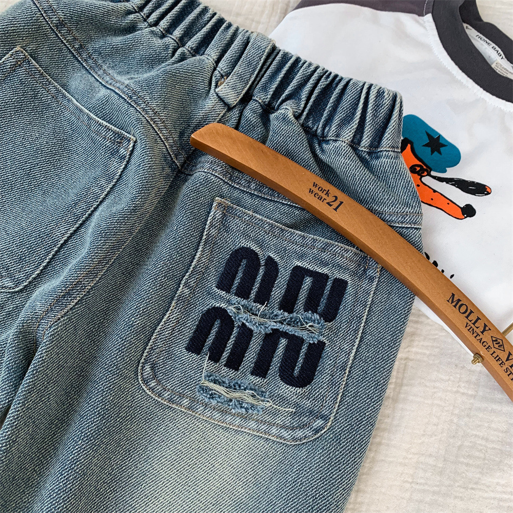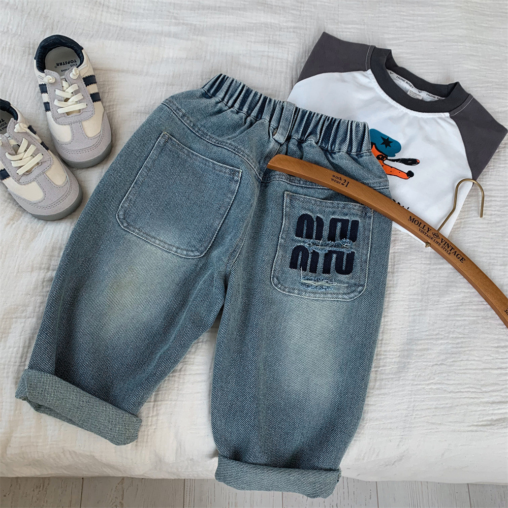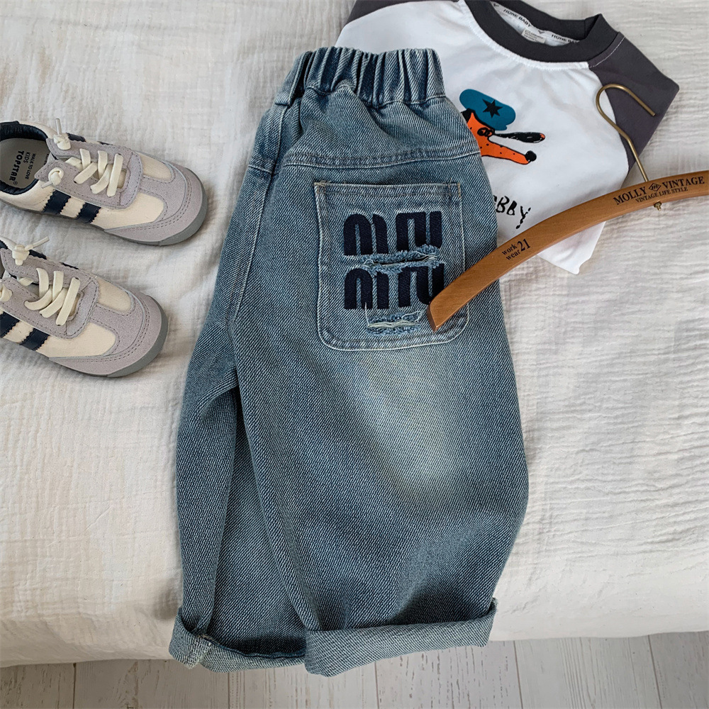 어린이 청바지 작은 C 급우 2024 새 소년 청바지 자수 컷 데님 바지 어린이 바지 도매스토어 가기