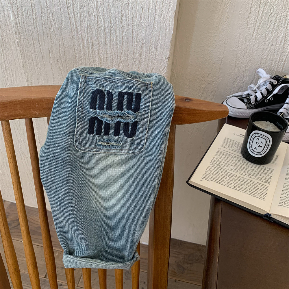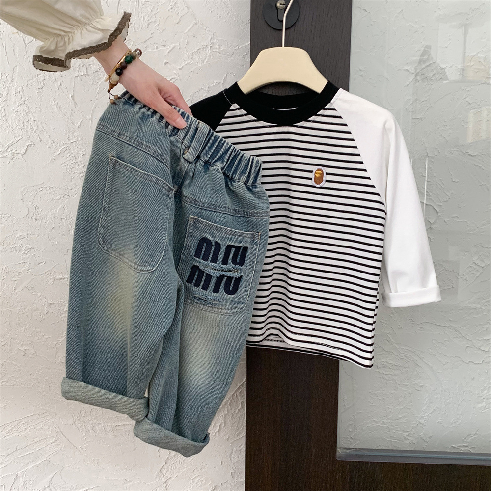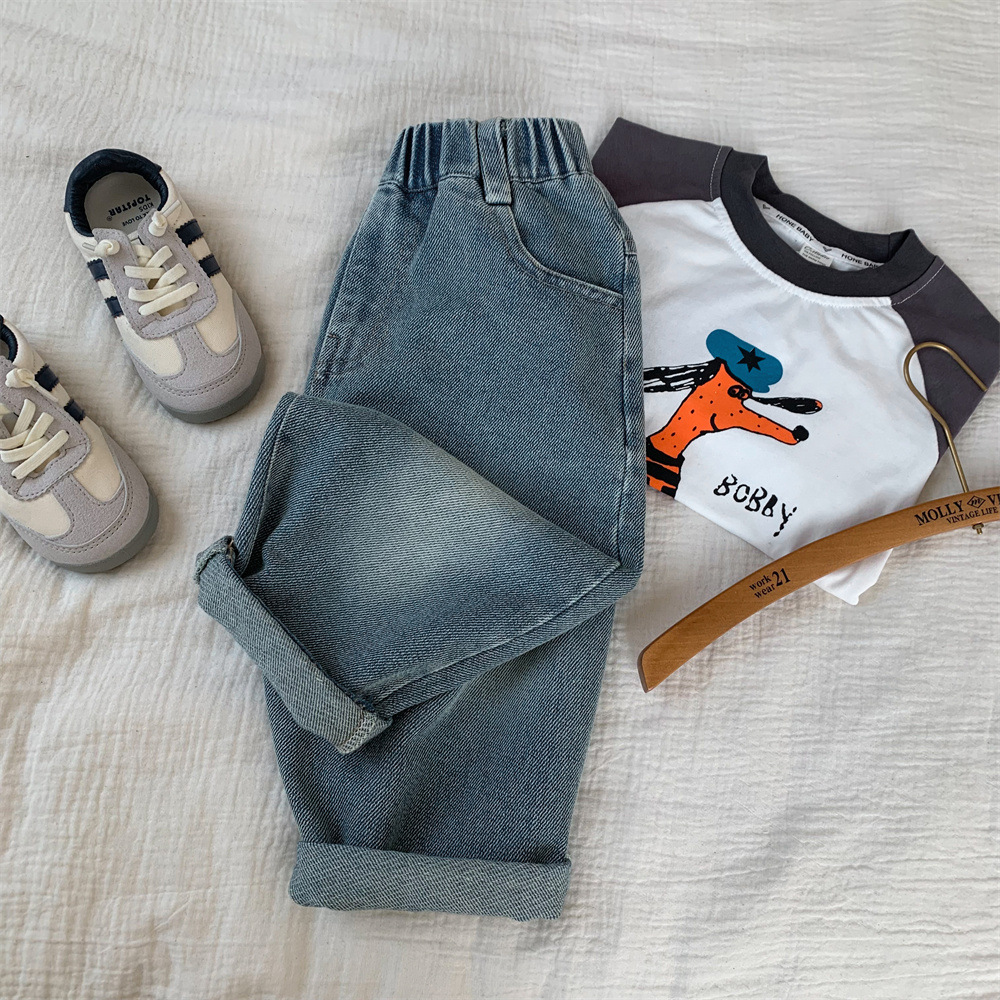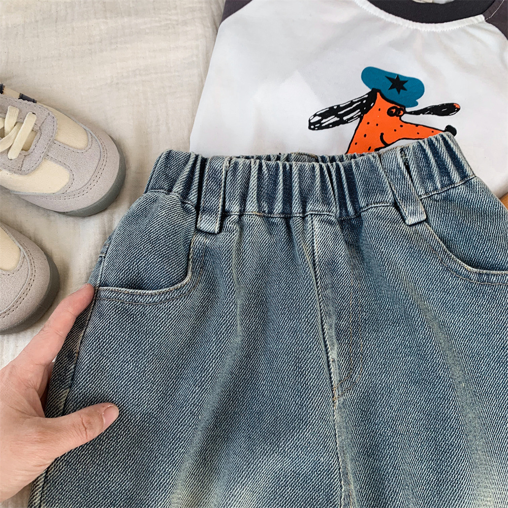 어린이 청바지 작은 C 급우 2024 새 소년 청바지 자수 컷 데님 바지 어린이 바지 도매스토어 가기