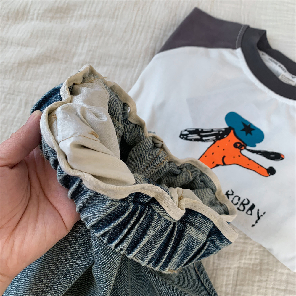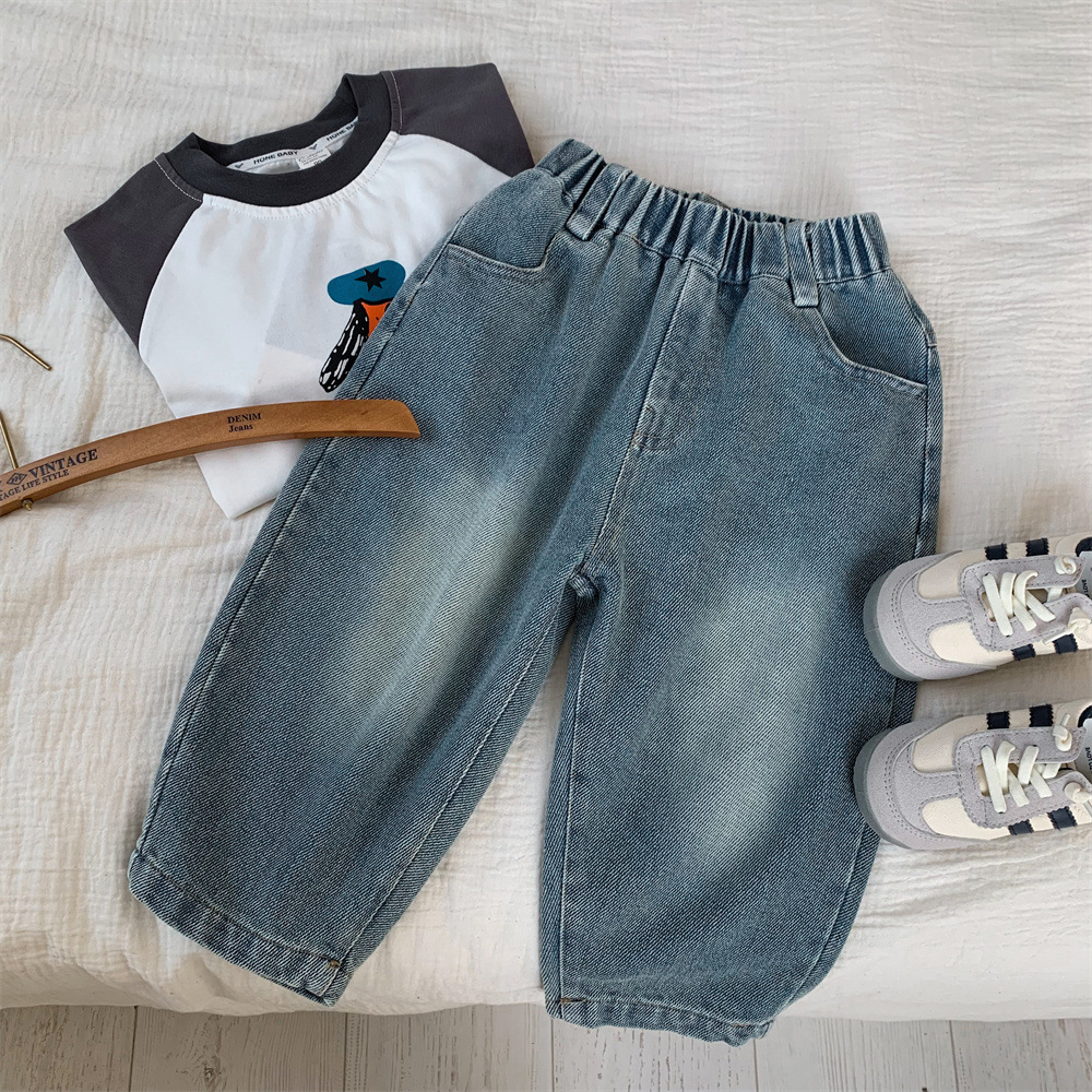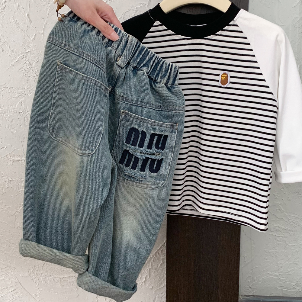 어린이 청바지 작은 C 급우 2024 새 소년 청바지 자수 컷 데님 바지 어린이 바지 도매